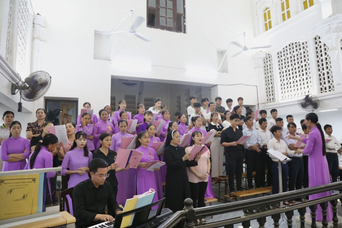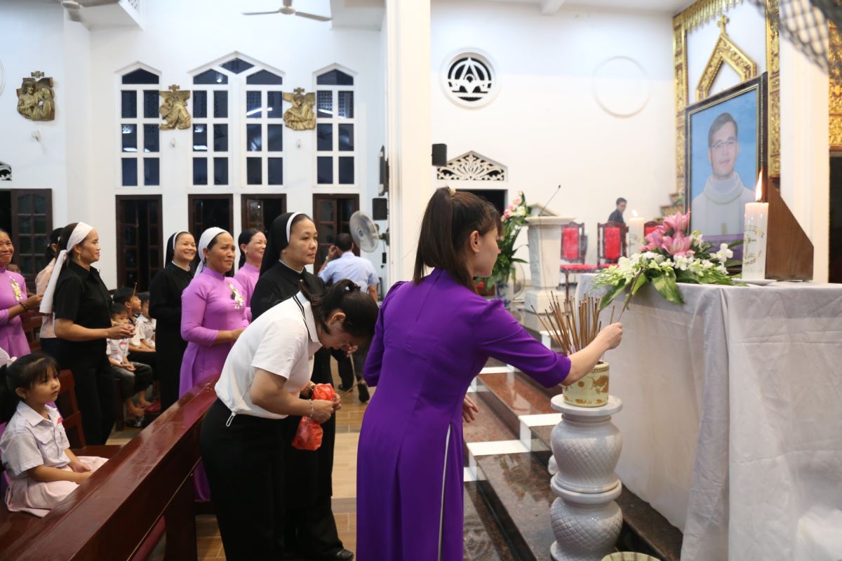 Trước Thánh lễ, quý Cha, quý thầy, quý dì, các ban ngành đoàn thể cùng cộng đoàn đã trang nghiêm xếp thành hai hàng thắp hương tưởng nhớ, bày tỏ tấm lòng tri ân và thương mến đối với Cha Giuse.