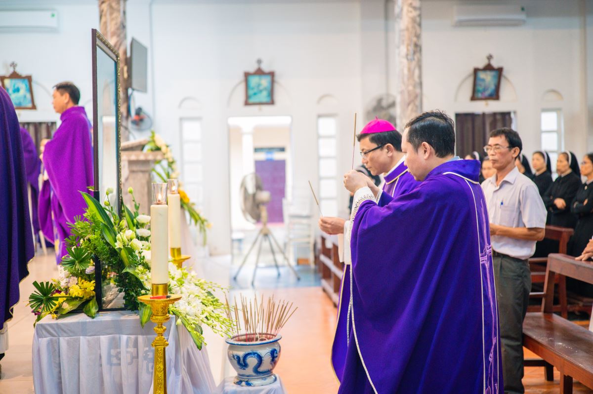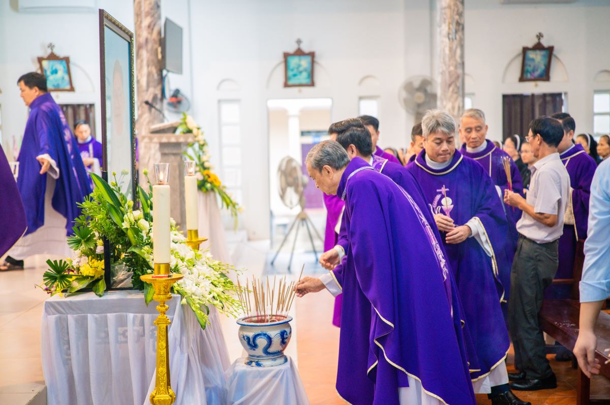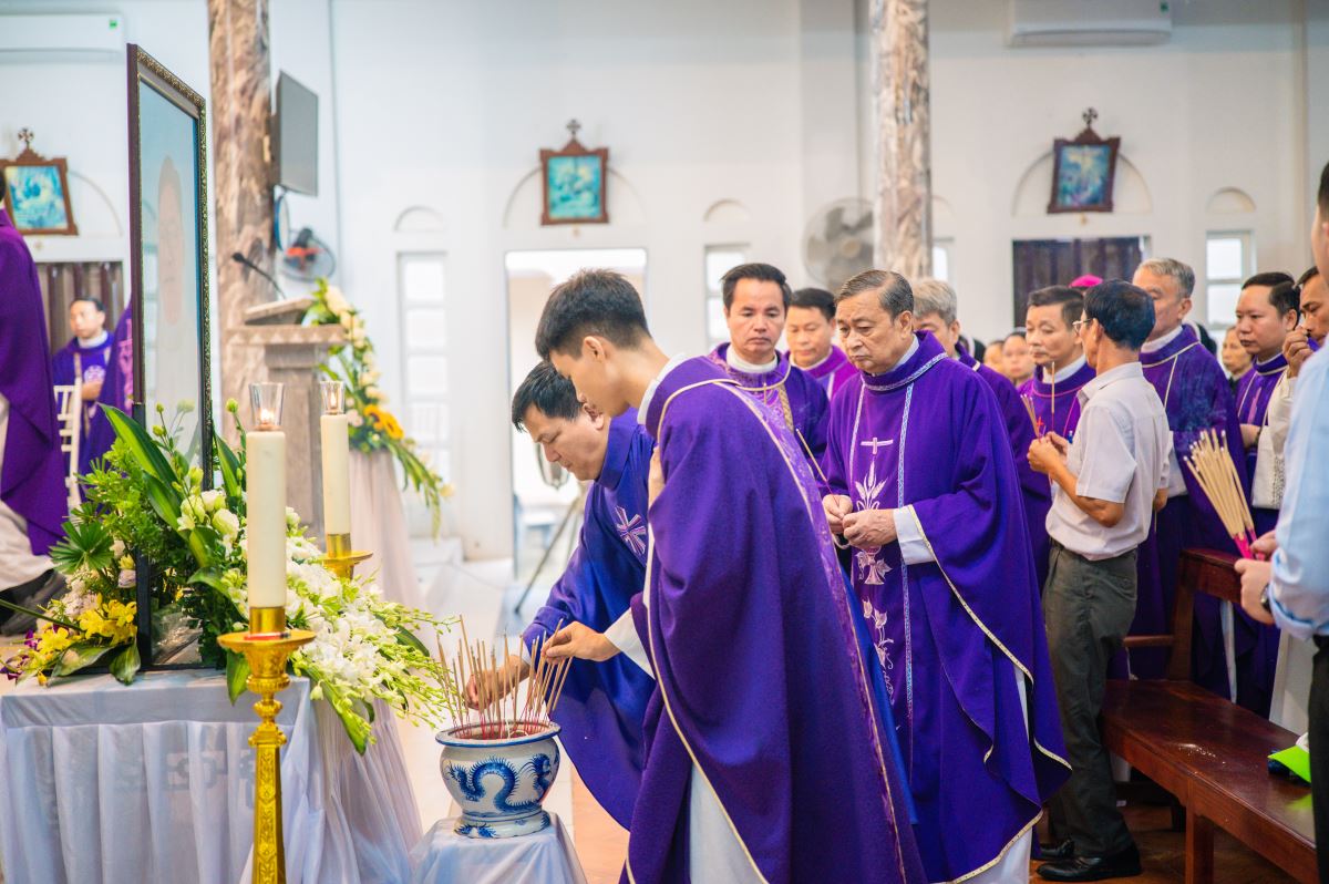 Trước khi bắt đầu Thánh lễ, quý cha, quý tu sĩ, quý Hội đồng mục vụ các giáo xứ đã cùng nhau thắp những nén hương bày tỏ niềm tri ân và thương nhớ đến cha Gioan.