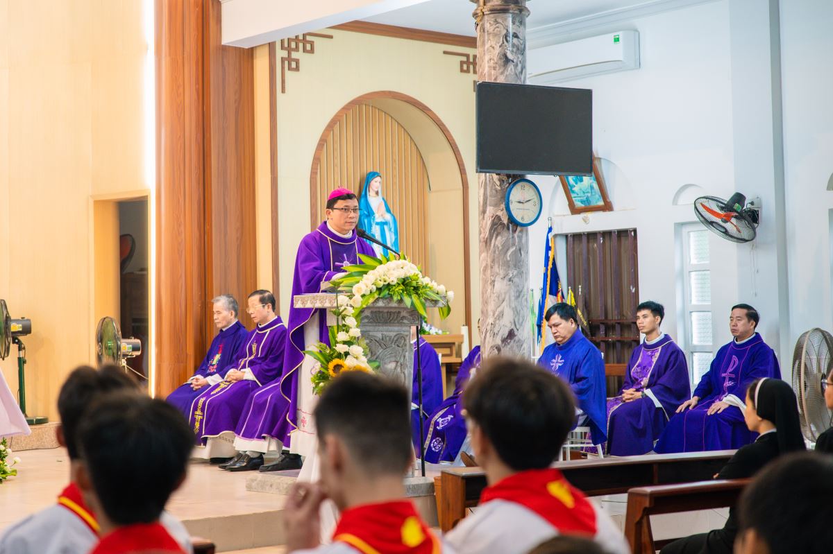 Trong bài giảng, Đức Cha Phaolo đã nói về cuộc đời linh mục của cha Gioan: “Trong suốt cuộc đời linh mục, cha cố luôn là mục tử nhân lành, mục tử mẫu mực trong đời dâng hiến, phục vụ. Mẫu mực về lòng khiêm tốn và vị tha như lời Chúa Giêsu đã dạy: “Hãy học cùng Ta, vì Ta hiền lành và khiêm nhường trong lòng”. Cha cố Gioan – vị mục tử hiền lành, đã tận hiến cả cuộc đời cho sứ vụ linh mục. Ngài âm thầm gieo hạt giống Tin Mừng, hết lòng yêu thương đoàn chiên, và luôn sống một đời trung tín với Chúa. Dấu ấn nơi ngài không chỉ nằm ở những công việc mục vụ, nhưng còn ở trái tim của một người cha, luôn kiên nhẫn, bao dung và hy sinh cho đoàn con thiêng liêng.