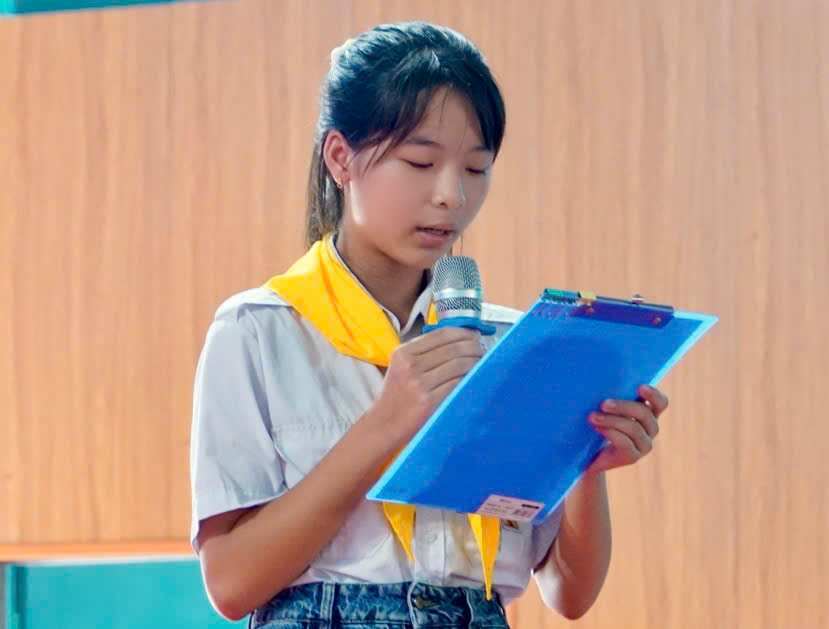 Ngay sau đó, băng reo và bài cử điệu chủ đề năm học được các em thể hiện một cách nhiệt tình, đầy xác tín.