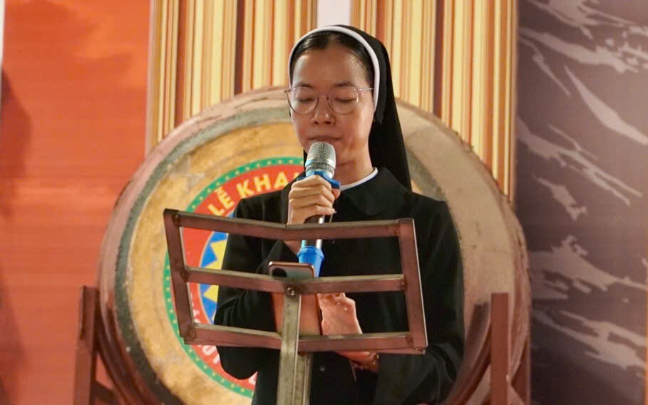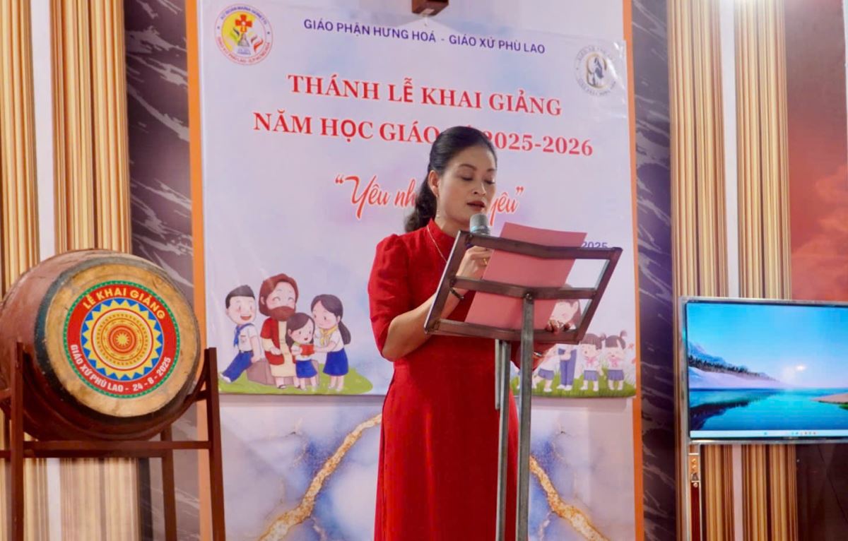 Tiếp sau đó chị Maria Nguyễn Thị Thu Hiền, đại diện Ban Giáo vụ, đã có lời phát biểu, nêu rõ tình hình học giáo lý của các em giáo lý sinh và định hướng cho năm học mới của các em thiếu nhi.