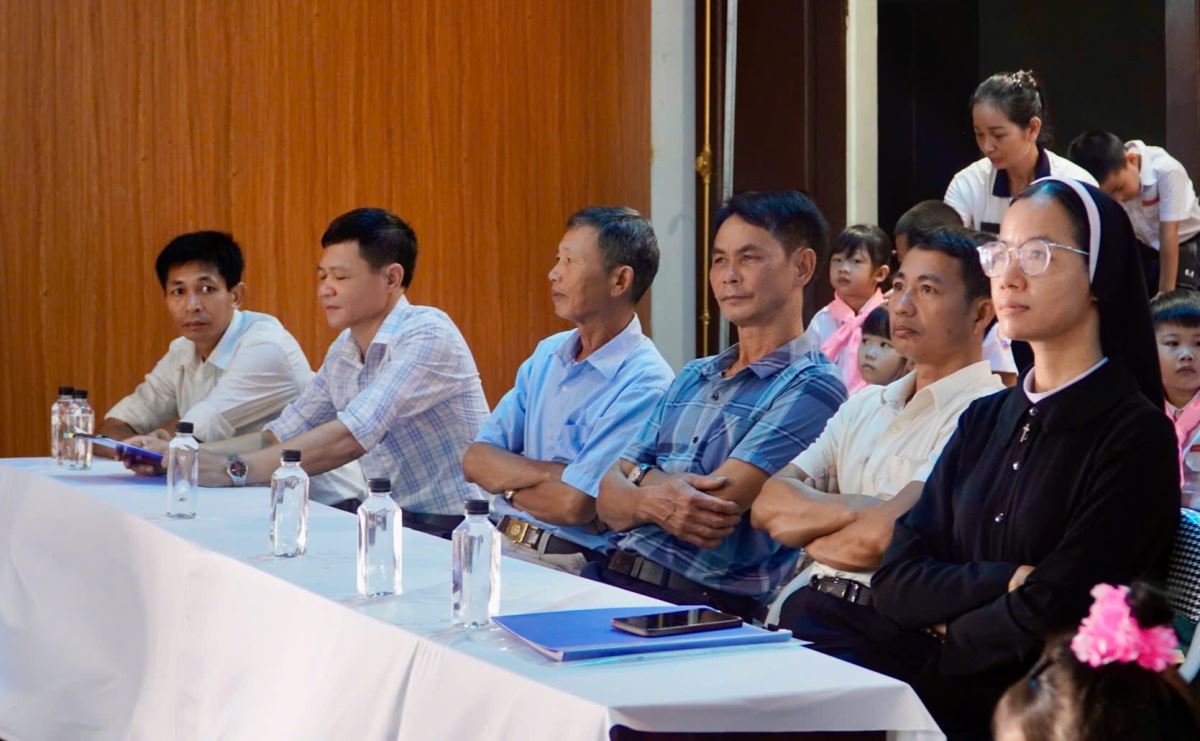 Tiếp theo, chị Anna Phạm Thị Ngọc đại diện Hội Phụ huynh đã bày tỏ lòng tri ân đến cha Giuse, quý dì, quý Hội đồng Mục vụ, quý thầy cô Giáo lý viên, đồng thời cam kết sẽ luôn đồng hành, cộng tác chặt chẽ cùng quý Cha, Thầy xứ, quý Dì và thầy cô Giáo lý viên trong việc nhắc nhở, động viên và nâng đỡ các Con siêng năng học tập, sống đạo tốt, để các Con trở thành những Kitô hữu trưởng thành trong đức tin và nhân bản.