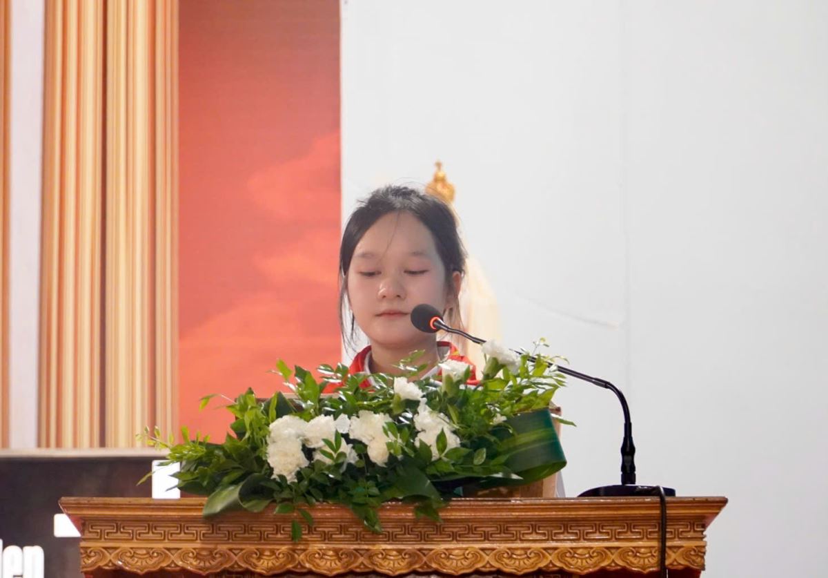 Đáp lại tình cảm yêu thương của cha và mọi người, một em đại diện đã bày tỏ lòng biết ơn và quyết tâm của các em trước cha và cộng đoàn, rằng các em sẽ siêng năng tham dự Thánh lễ, học hỏi giáo lý, sống bác ái yêu thương, để không phụ lòng cha, quý dì, quý thầy cô giáo lý viên, bố mẹ và toàn thể cộng đoàn.