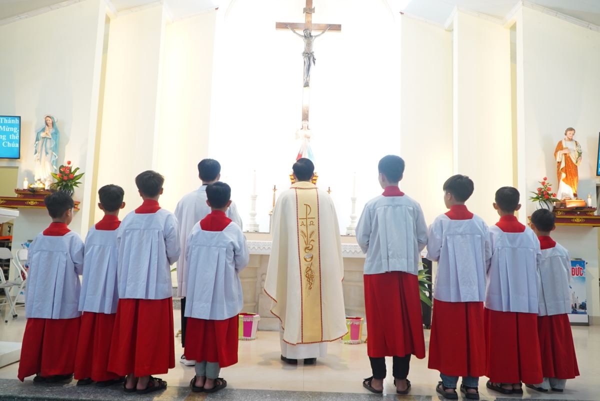 Mở đầu Thánh lễ, cha Phêrô mời gọi cộng đoàn cùng hiệp thông cầu nguyện cho anh chị em lương dân và những người chưa nhận biết Chúa, để họ được chạm đến tình yêu và ơn cứu độ của Người. Cách riêng, ngài mời gọi cộng đoàn cầu nguyện cho anh em Hội Trống luôn biết noi gương nhân đức của Thánh Luca trong đời sống đức tin và nhiệt thành truyền giáo.