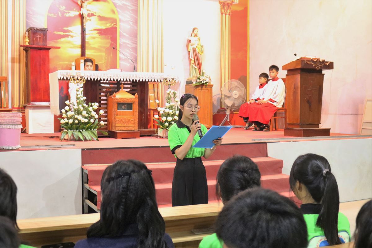 Vào lúc 19g30, cộng đoàn long trọng cử hành Thánh lễ kính Thánh Phaolô Nguyễn Văn Mỹ do cha Giuse Trần Văn Điển chủ sự. Trong bầu khí linh thiêng và sốt sắng, cộng đoàn cùng nhau dâng lời tạ ơn Thiên Chúa, đồng thời cầu xin Thánh Phaolô Nguyễn Văn Mỹ chuyển cầu cho giới trẻ luôn trung thành với đức tin và can đảm làm chứng cho Chúa giữa đời.