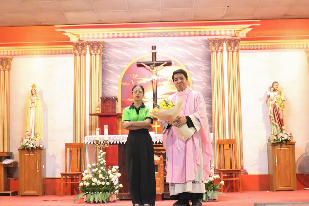 Trước khi kết thúc Thánh lễ, đại diện Giới trẻ đã có lời tri ân chân thành gửi tới cha chủ tế, quý ban ngành và toàn thể cộng đoàn đã yêu thương, nâng đỡ và đồng hành với Giới trẻ. Lẵng hoa tươi thắm được dâng lên như lời cảm ơn và tâm tình hiếu kính.
