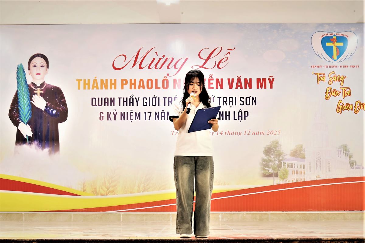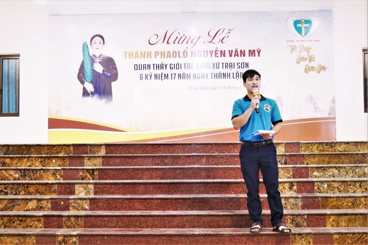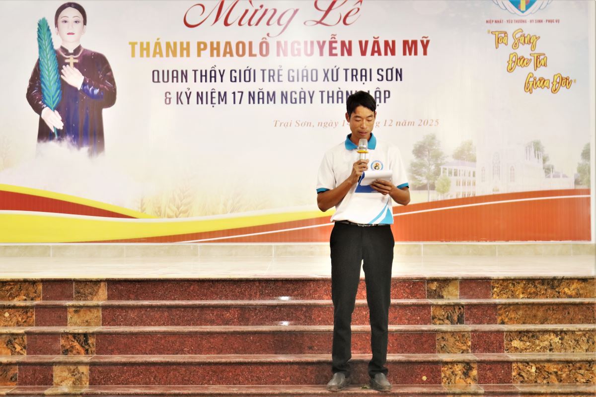 WGPHH - Chiều và tối Chúa Nhật, ngày 14/12/2025, Giáo xứ Trại Sơn hân hoan tổ chức Thánh lễ kính Thánh Phaolô Nguyễn Văn Mỹ – quan thầy Giới trẻ giáo xứ. Ngày mừng lễ là dịp quy tụ đông đảo các bạn trẻ trong Giáo hạt Tây Nam Phú Thọ, cùng sự hiện diện của quý đại diện các ban đoàn trong giáo xứ, thể hiện tinh thần hiệp thông, yêu thương và dấn thân của người trẻ hôm nay.