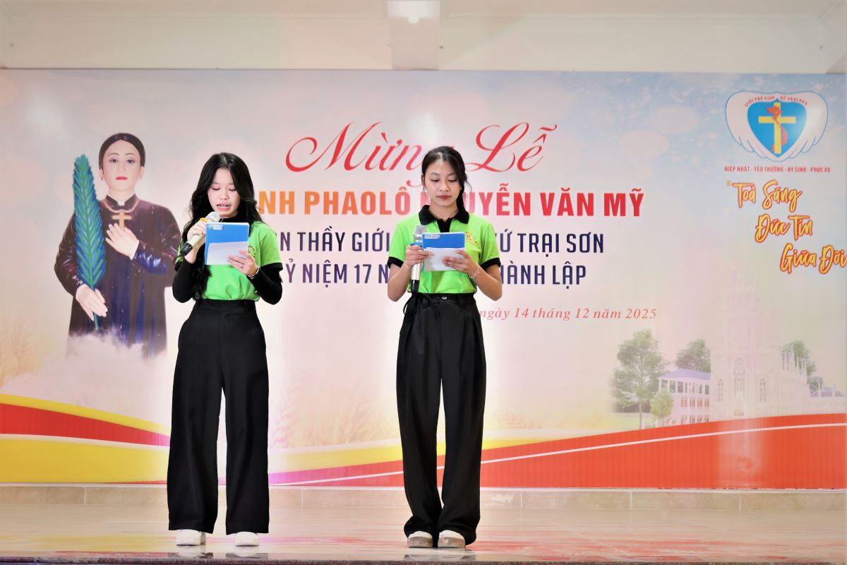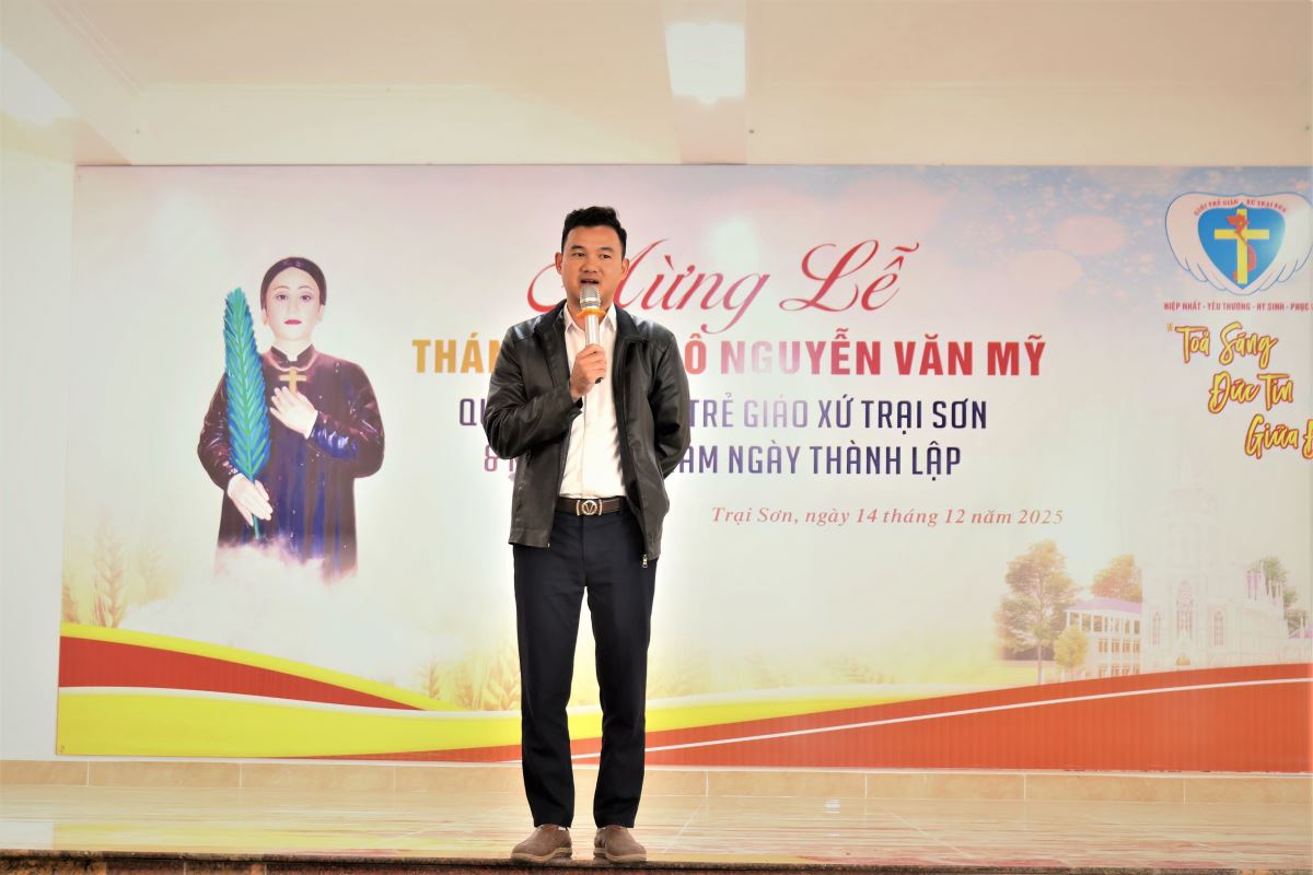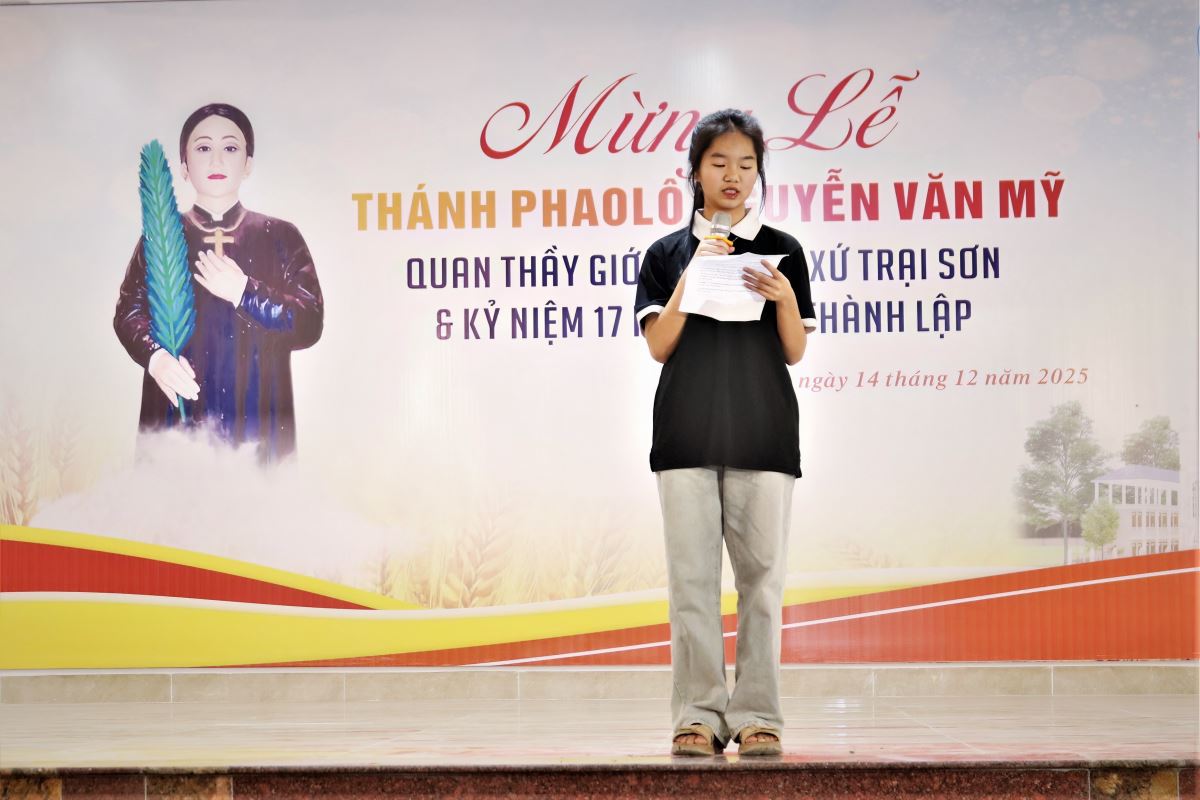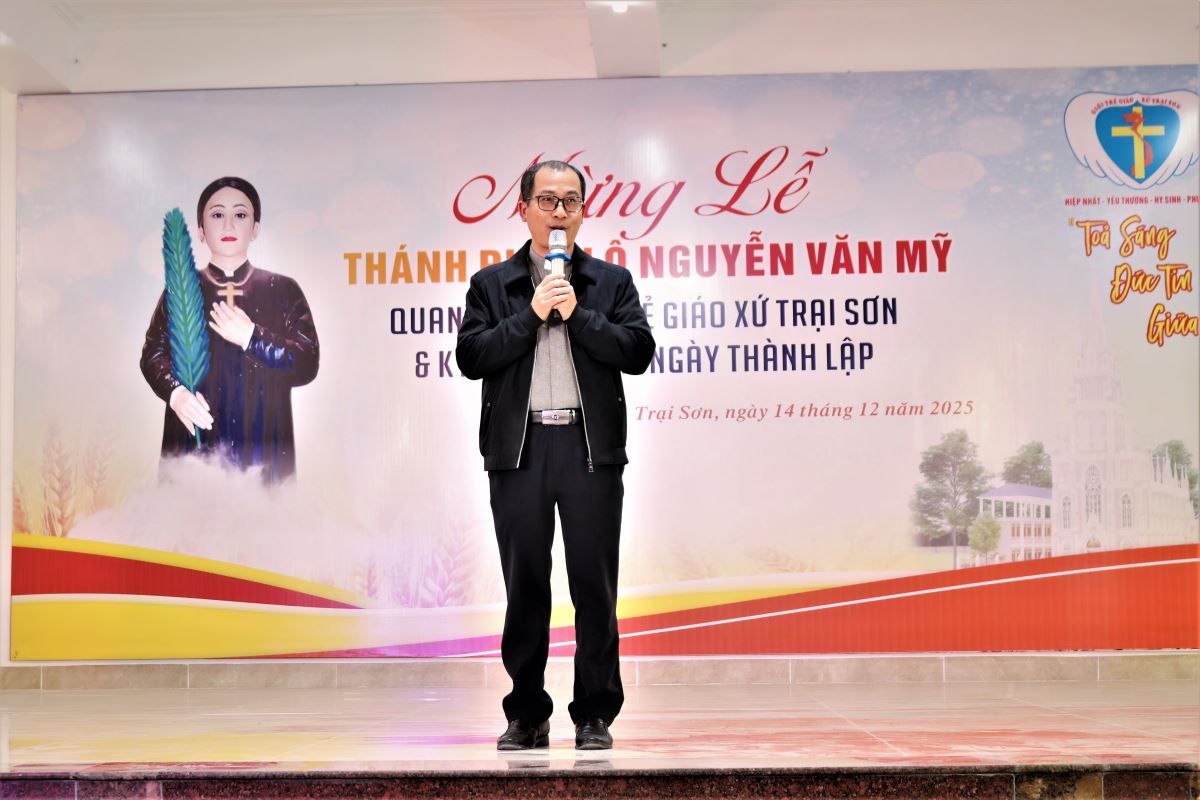 WGPHH - Chiều và tối Chúa Nhật, ngày 14/12/2025, Giáo xứ Trại Sơn hân hoan tổ chức Thánh lễ kính Thánh Phaolô Nguyễn Văn Mỹ – quan thầy Giới trẻ giáo xứ. Ngày mừng lễ là dịp quy tụ đông đảo các bạn trẻ trong Giáo hạt Tây Nam Phú Thọ, cùng sự hiện diện của quý đại diện các ban đoàn trong giáo xứ, thể hiện tinh thần hiệp thông, yêu thương và dấn thân của người trẻ hôm nay.