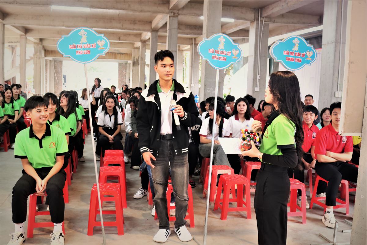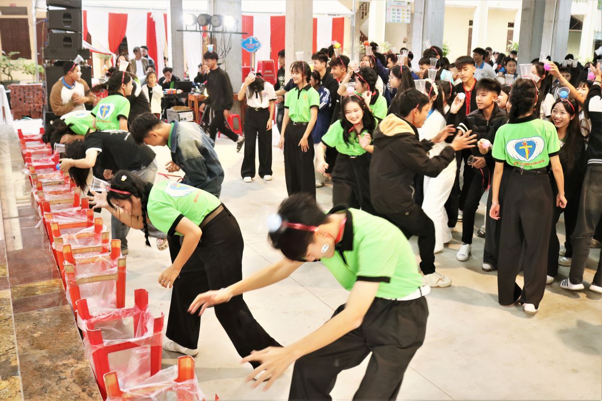 Khép lại chương trình buổi chiều là các trò chơi sinh hoạt tập thể mang tính gắn kết, vui nhộn và sôi động, giúp các bạn trẻ thêm hiểu biết, yêu thương nhau và cùng nhau xây dựng tinh thần hiệp nhất.