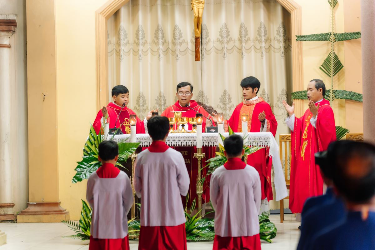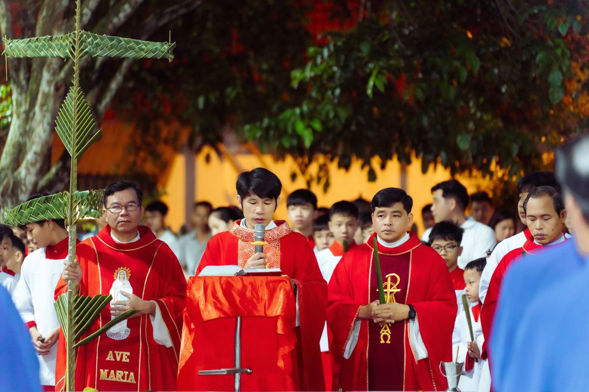 WGPHH - Vào lúc 19g00 ngày 28.3.2026, tại nhà thờ Giáo xứ Trù Mật, cha xứ Giuse Nguyễn Văn Yêm đã chủ tế Thánh lễ Lá, khai mạc Tuần Thánh – tưởng niệm mầu nhiệm Vượt Qua của Chúa Kitô. Đồng tế có cha Antôn Phan Thanh Đồng, cha Giuse Bùi Công Dũng và cha Giuse Đỗ Văn Thành.