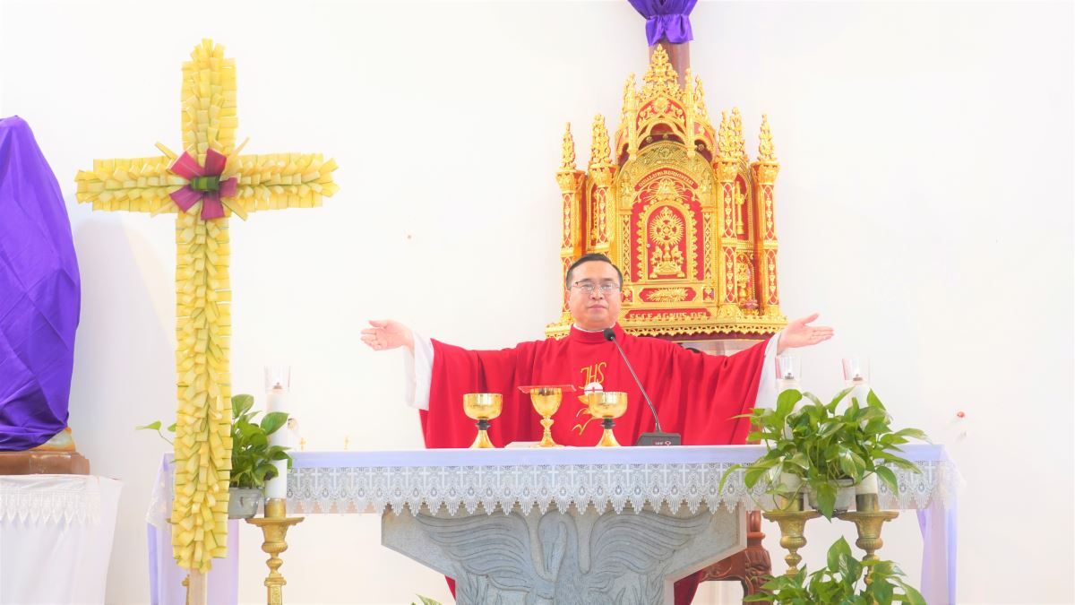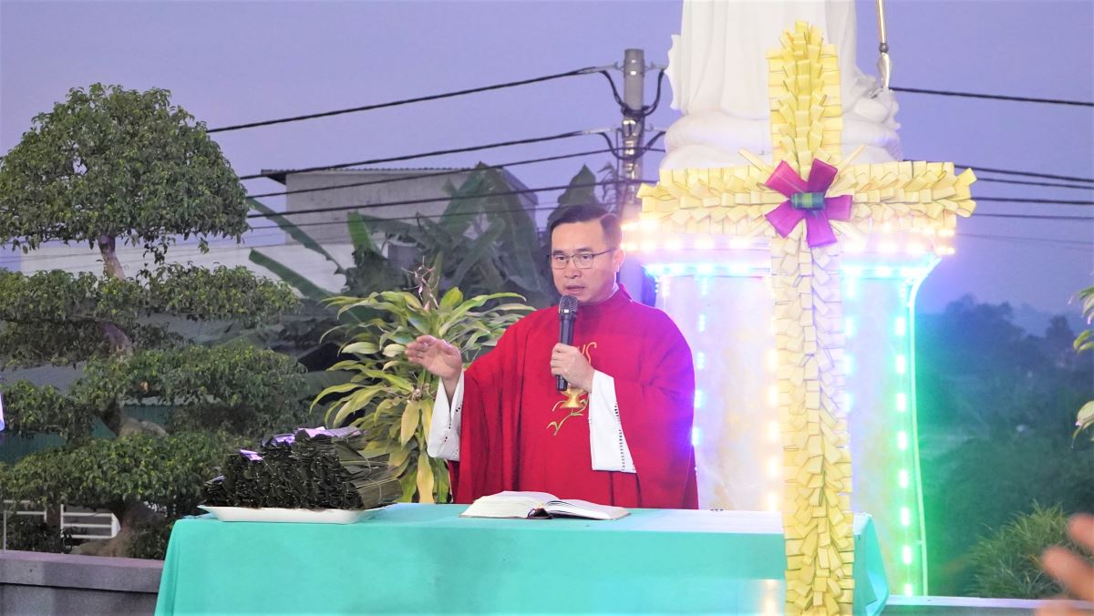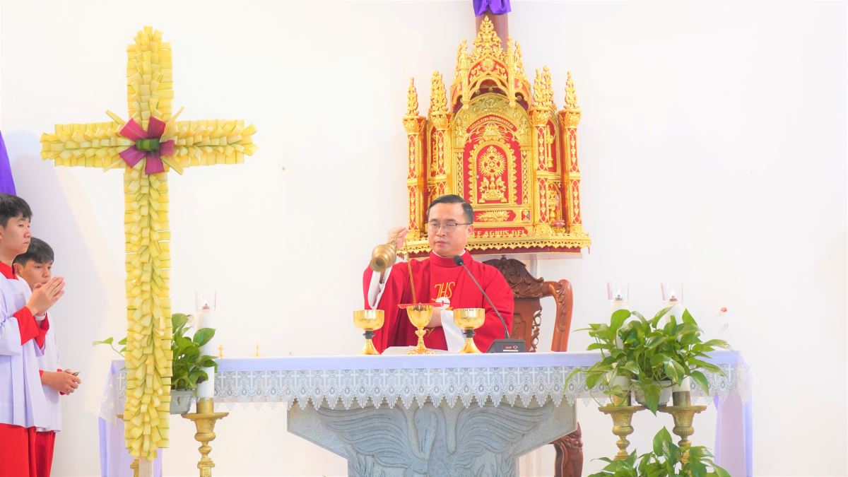 Trong bài giảng, Cha Giuse đã mời gọi cộng đoàn khi bước vào Tuần Thánh hãy dành thời gian suy niệm về cuộc Tử Nạn và Phục Sinh của Chúa Kitô. Ngài nhấn mạnh rằng mỗi người được mời gọi “sống lại” và cùng bước đi trên chính những chặng đường mà Chúa đã đi trong cuộc Thương Khó. Từ Nhà Tiệc Ly đến vườn Cây Dầu, rồi trên con đường Thập giá tiến lên đồi Golgotha, mỗi chặng đường đều là lời mời gọi người tín hữu cảm nghiệm tình yêu vô biên của Thiên Chúa. Qua đó, mỗi người được mời gọi cùng “chết với Chúa” để rồi cũng được “sống lại với Ngài”, cảm nhận trọn vẹn ý nghĩa của tình yêu cứu độ. Cha cũng mời gọi cộng đoàn trong giờ Thánh lễ này hãy dâng lời tạ ơn Thiên Chúa vì tình yêu thương không bờ bến của Ngài, đồng thời biết tận dụng thời gian quý báu của Tuần Thánh để tham dự các nghi thức phụng vụ, suy niệm về cuộc đời, cuộc Tử Nạn và sự Phục Sinh của Chúa Giêsu.