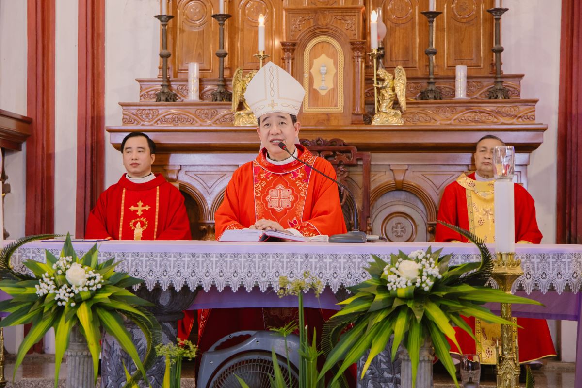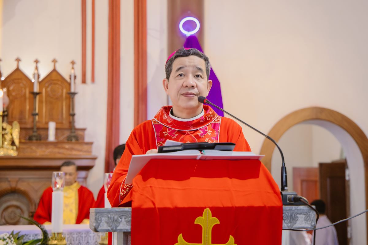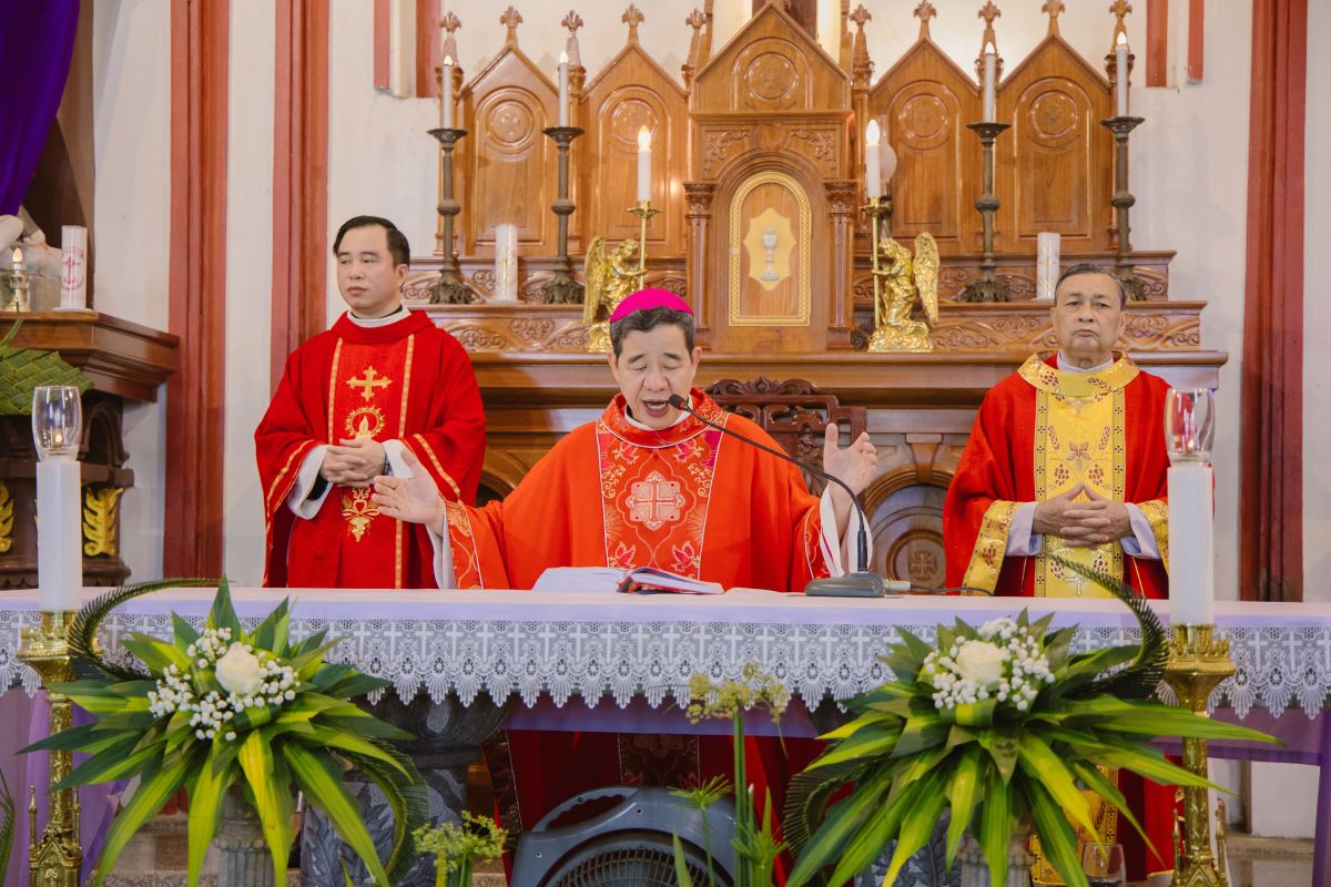 Trong bài giảng, Đức Cha Đaminh đã mời gọi cộng đoàn chiêm ngắm mầu nhiệm Thập Giá qua hành trình thương khó của Chúa Giêsu. Ngài nhấn mạnh rằng: bước vào Tuần Thánh không chỉ là tham dự các nghi thức phụng vụ, nhưng còn là hành trình nội tâm, mời gọi mỗi người hoán cải, từ bỏ tội lỗi và sống yêu thương cách cụ thể hơn. Đặc biệt, trong bối cảnh giáo xứ đang sống Thời Gian Thánh, Đức Cha khích lệ mọi thành phần dân Chúa biết tận dụng thời gian hồng ân này để canh tân đời sống đức tin, siêng năng lãnh nhận các bí tích và thực thi bác ái.