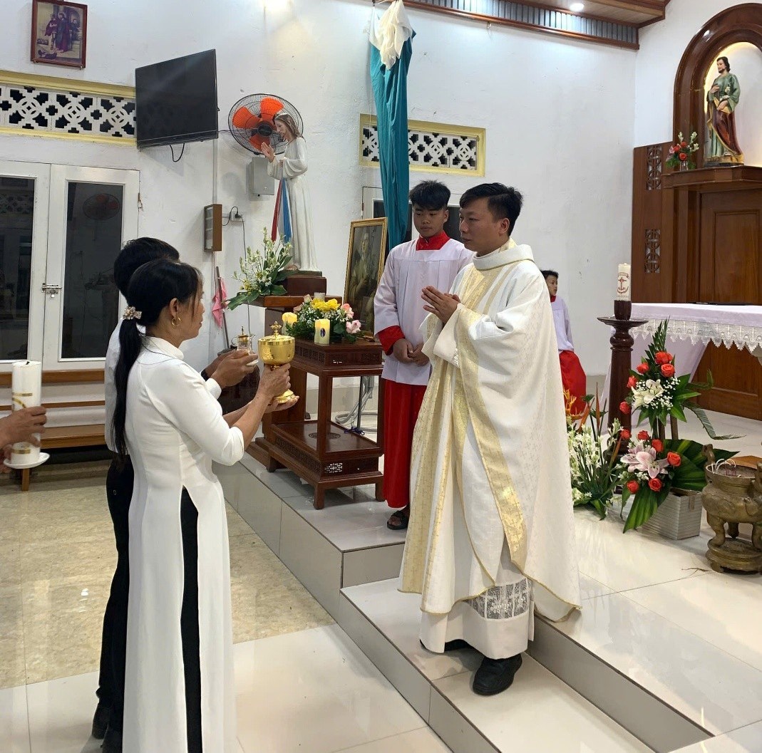 Thánh lễ do cha phó đặc trách Giuse Trần Tiến Độ chủ tế, cùng đồng tế với cha xứ Đaminh Nguyễn Văn Lưu. Hiện diện trong Thánh lễ có quý dì, quý Hội đồng Giáo xứ, Ban hành giáo, đại diện các hội đoàn, quý anh chị em ca viên các giáo họ, cùng toàn thể cộng đoàn dân Chúa. Đặc biệt là sự hiện diện đông đủ của 25 ca viên Ca đoàn Chuẩn xứ Cửu Tích.