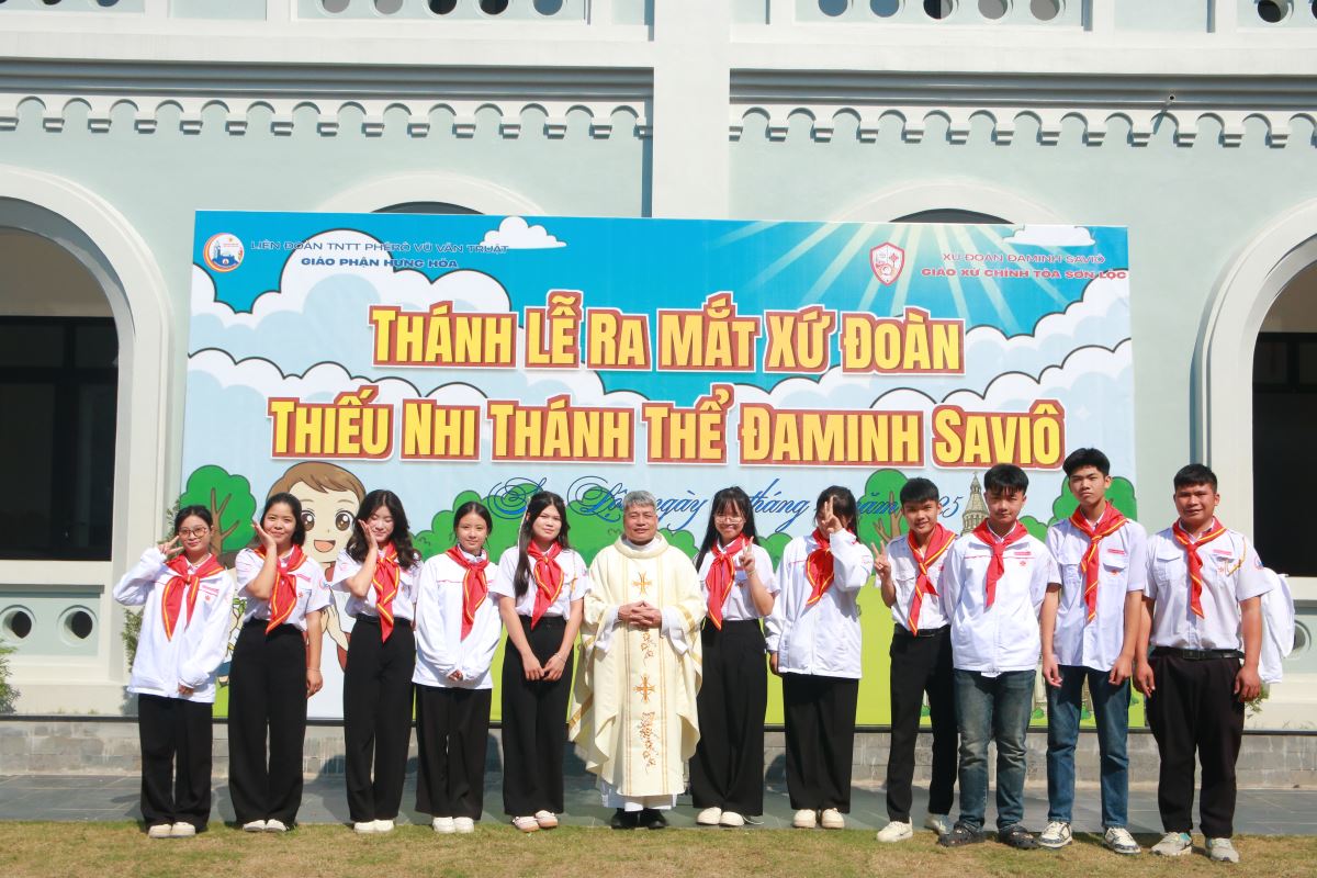 Sáng Chúa nhật, ngày 23/11/2025, trong Thánh lễ trọng thể mừng Chúa Giêsu Kitô Vua Vũ trụ tại Nhà thờ Chính tòa Sơn Lộc, cha Giuse Hà Văn Trọng – Tuyên úy Liên đoàn TNTT Giáo phận – đã chủ sự Thánh lễ ra mắt Xứ đoàn Thiếu Nhi Thánh Thể Đa Minh Savio của giáo xứ. Đồng tế với ngài có cha xứ Giuse Nguyễn Đình Tuyến. Tham dự và hiệp thông trong Thánh lễ còn có thầy xứ Giuse Chu Văn Thái, quý dì trợ úy, quý huynh trưởng – dự trưởng, quý phụ huynh cùng đông đảo cộng đoàn dân Chúa.