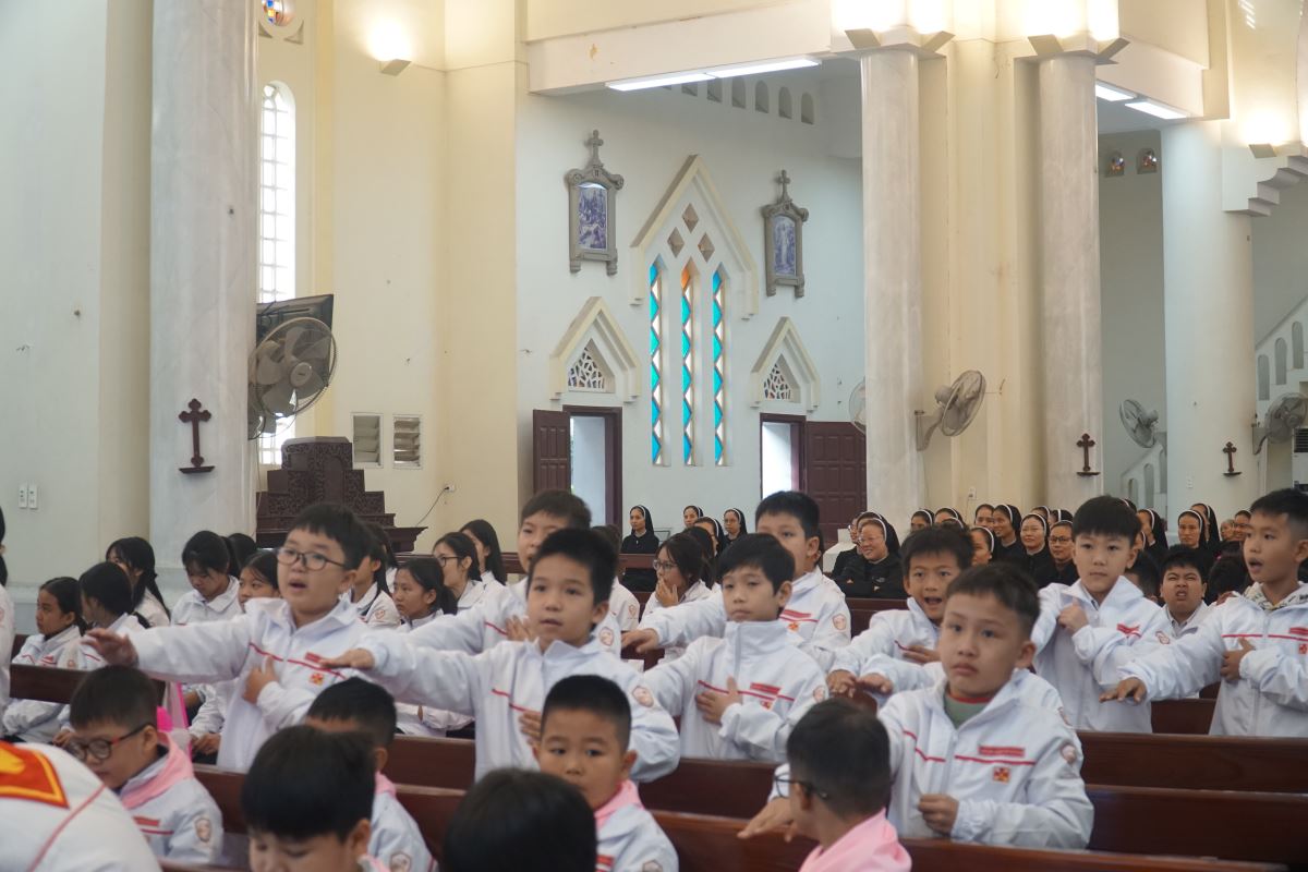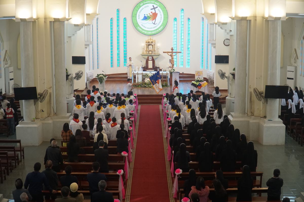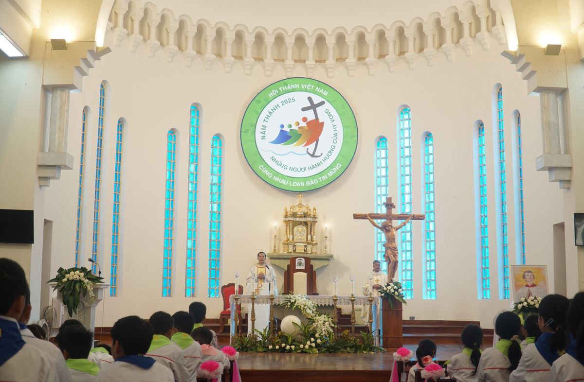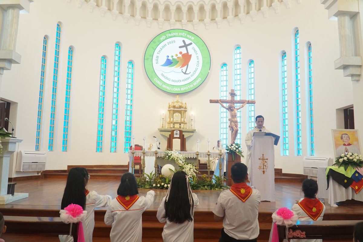 Ngay từ sớm, khuôn viên Nhà thờ Chính tòa đã trở nên sinh động và đầy sức sống trong giờ tập trung, ôn hát và chuẩn bị nghi thức của các em thiếu nhi. Những ánh mắt hồn nhiên và vui tươi đã thắp lên niềm hy vọng và nhiệt huyết mới cho Xứ đoàn.