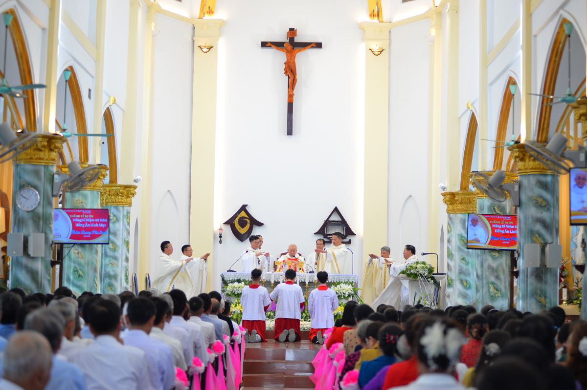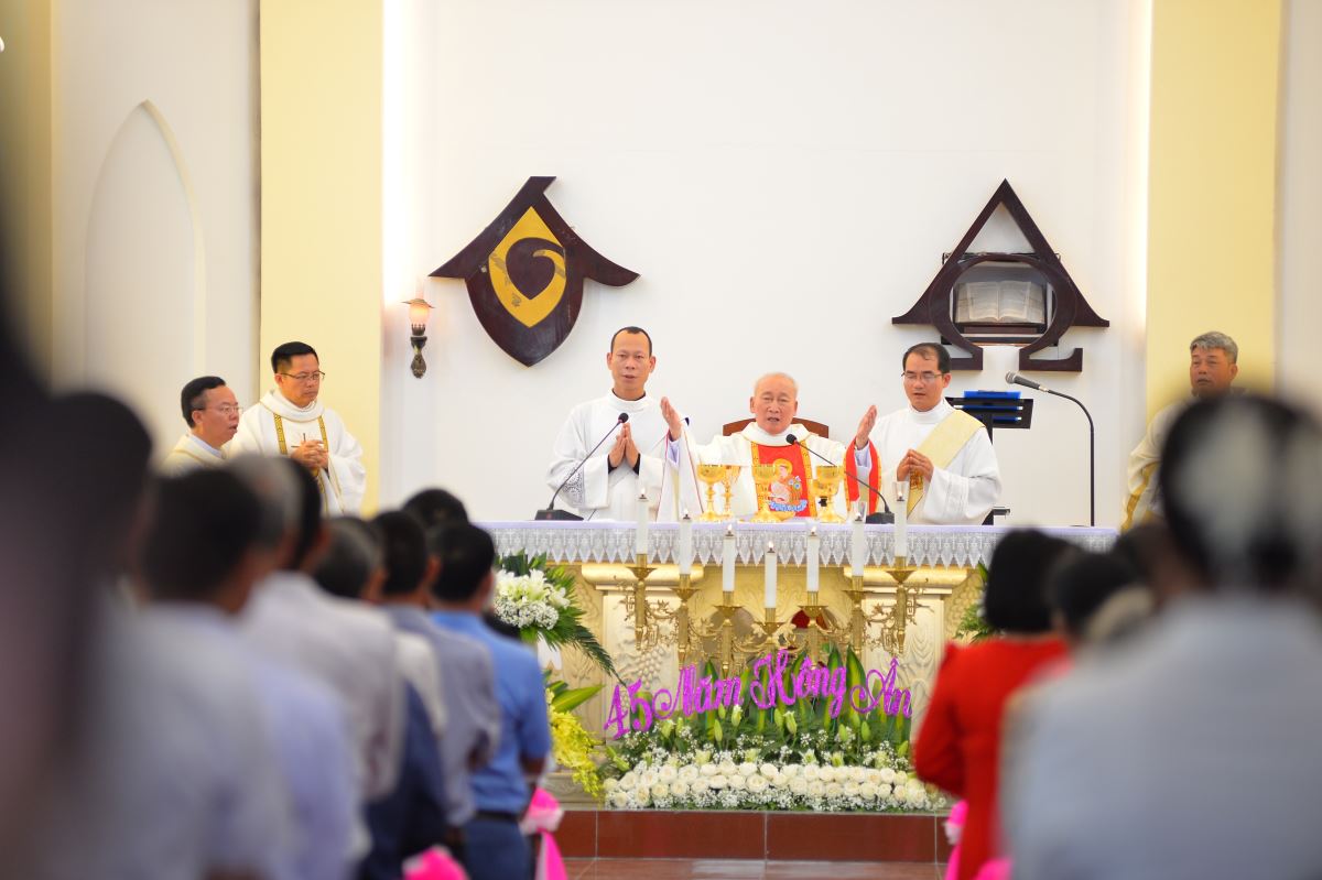 WGPHH - Vào lúc 09g00 sáng ngày 13.6.2025, tại nhà thờ giáo xứ Tình Lam, cha cố Antôn Dương Phú Oanh đã long trọng cử hành Thánh lễ tạ ơn kỉ niệm 45 năm Hồng ân Linh mục của ngài. Cùng hiệp dâng Thánh lễ với cha cố có quý cha trong và ngoài giáo phận, quý cha linh tông, quý dì, quý thầy, gia đình huyết tộc của cha cố, quý ân nhân, khác mời, quý Hội đồng mục vụ giáo xứ, giáo họ cùng đông đảo cộng đoàn dân Chúa trong và ngoài giáo xứ.