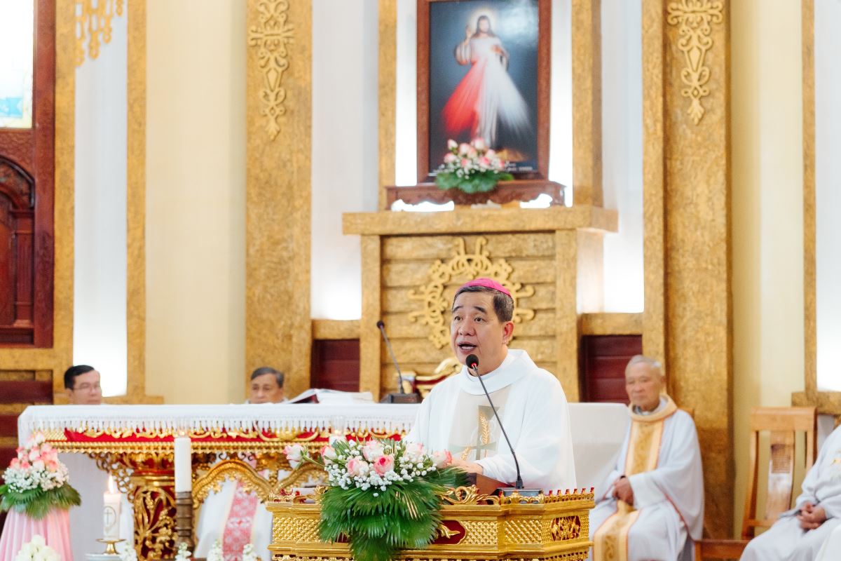 Giảng trong Thánh lễ, khởi đi từ bài Tin Mừng, Đức cha cho thấy Chúa Giêsu dạy cách cầu nguyện. Chúa không đưa ra một công thức cầu nguyện, Chúa cũng không trình bày theo hệ thống triết học hay thần học cao siêu, nhưng Chúa trao cho chúng ta kinh Lạy Cha. Đây là lời kinh độc nhất, trọn vẹn nhất và bảo đảm nhất, mà Chúa Giêsu dạy chúng ta. Kinh Lạy Cha là cầu nối giữa trời với đất và cũng là tóm kết của toàn bộ Tin Mừng và Chúa dạy chúng ta cách thức làm con cái của Thiên Chúa, là mối tương quan giữa chúng ta và Thiên Chúa. Khi chúng ta cất lên lời Lạy Cha, thì mọi rào cản giữa thụ tạo và Thiên Chúa là Đấng Tạo hóa dường như tan biến mất. Chúng ta không gọi Chúa là vị thần xa lạ mà chúng ta gọi Chúa là Cha, nguyện cho danh Cha được cả sáng, nước Cha trị đến và ý Cha thể hiện dưới đất cũng như trên trời.