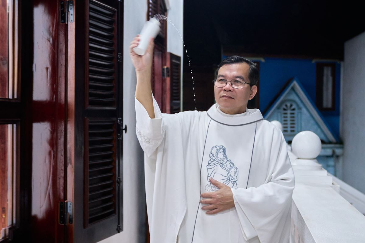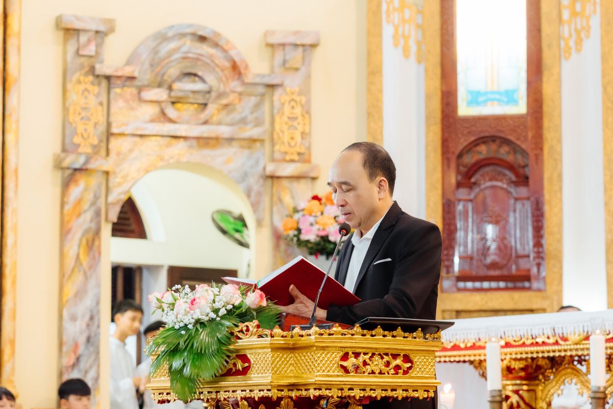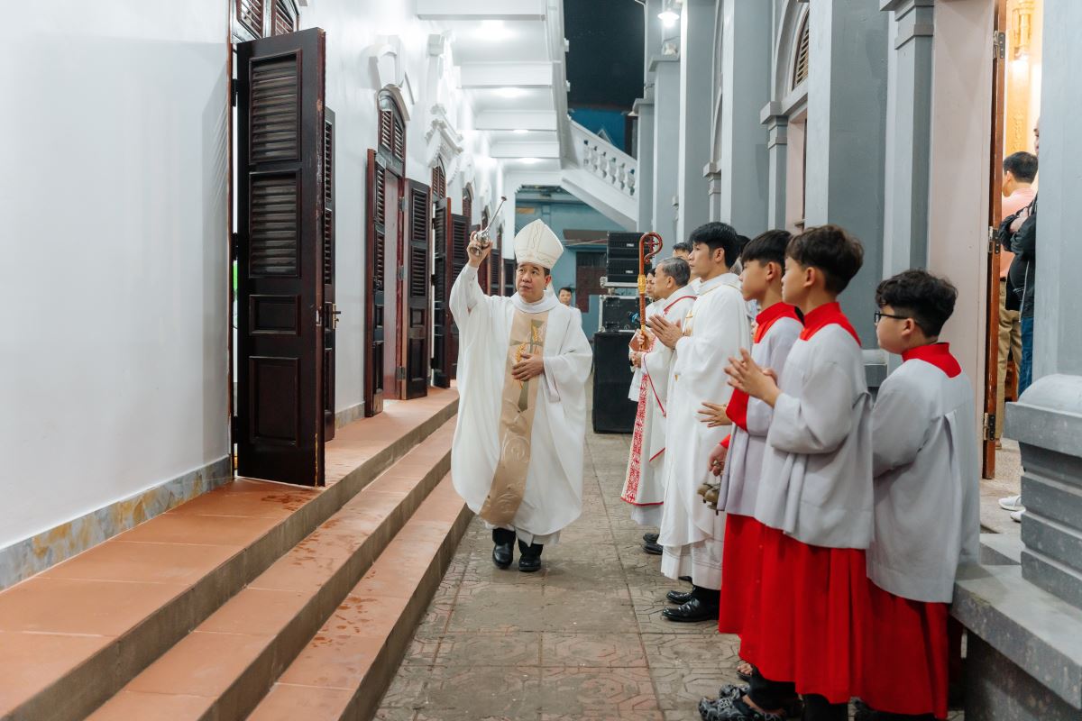 Trước Thánh lễ, Đức cha Đaminh Hoàng Minh Tiến đã cử hành nghi thức làm phép ngôi nhà mục vụ, trong lời Thánh ca trào dâng niềm cảm tạ tri ân của ca đoàn: “Ví như Chúa chẳng xây nhà, thợ nề vất vả cũng là uổng công…”, cùng niềm vui và nguyện ước mọi người trong giáo họ sẽ hiệp nhất trong tình yêu thương của Thiên Chúa.