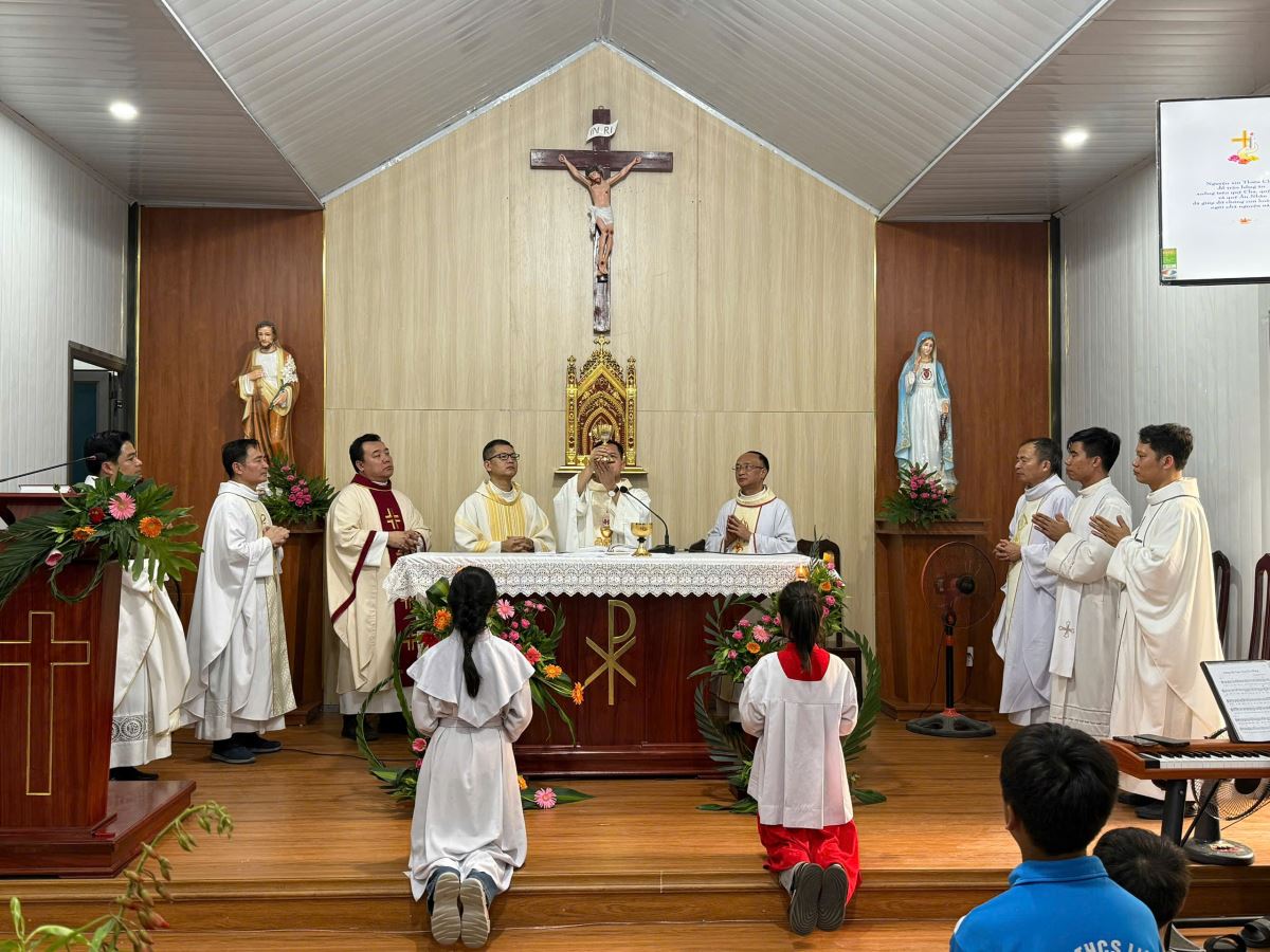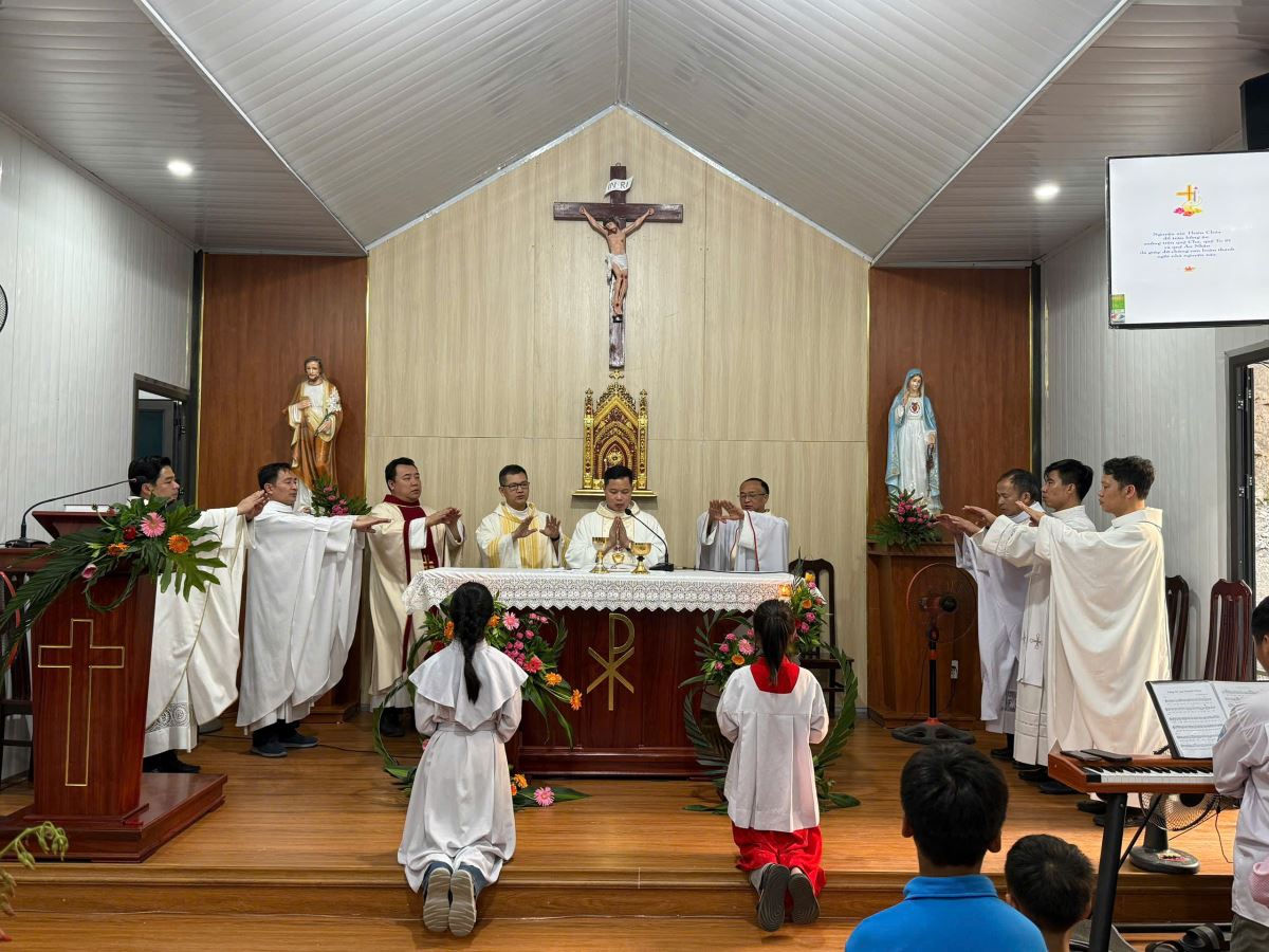Thánh lễ khép lại lúc 18g10 trong niềm hân hoan. Sau đó, quý cha, quý tu sĩ và cộng đoàn cùng chung chia bữa tiệc huynh đệ tại khuôn viên nhà nguyện, trong bầu khí hiệp hành, đậm tình Chúa và tình người.