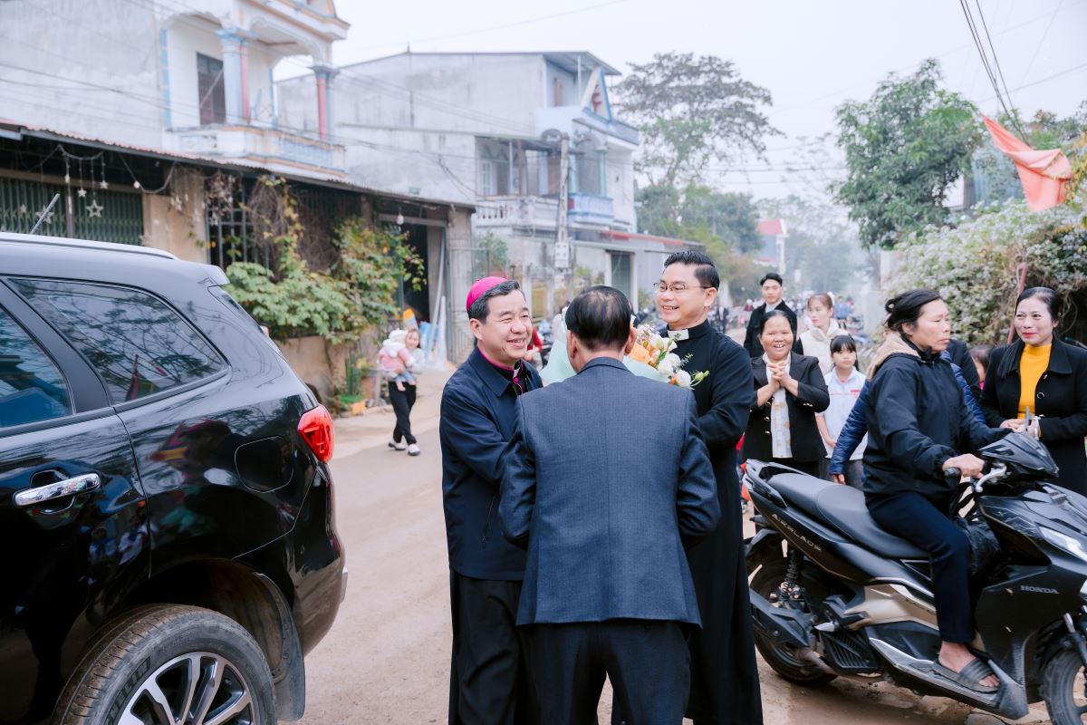 Đúng 7g30, quý Cha, quý Thầy, quý Dì, Ban đại diện các hội đoàn trong và ngoài giáo xứ, cùng quý đại biểu chính quyền các cấp đã hiện diện và di chuyển về khuôn viên nơi cử hành Thánh lễ. Những nụ cười rạng rỡ, những lẵng hoa tươi thắm góp phần làm cho bầu khí ngày lễ càng thêm trang trọng.