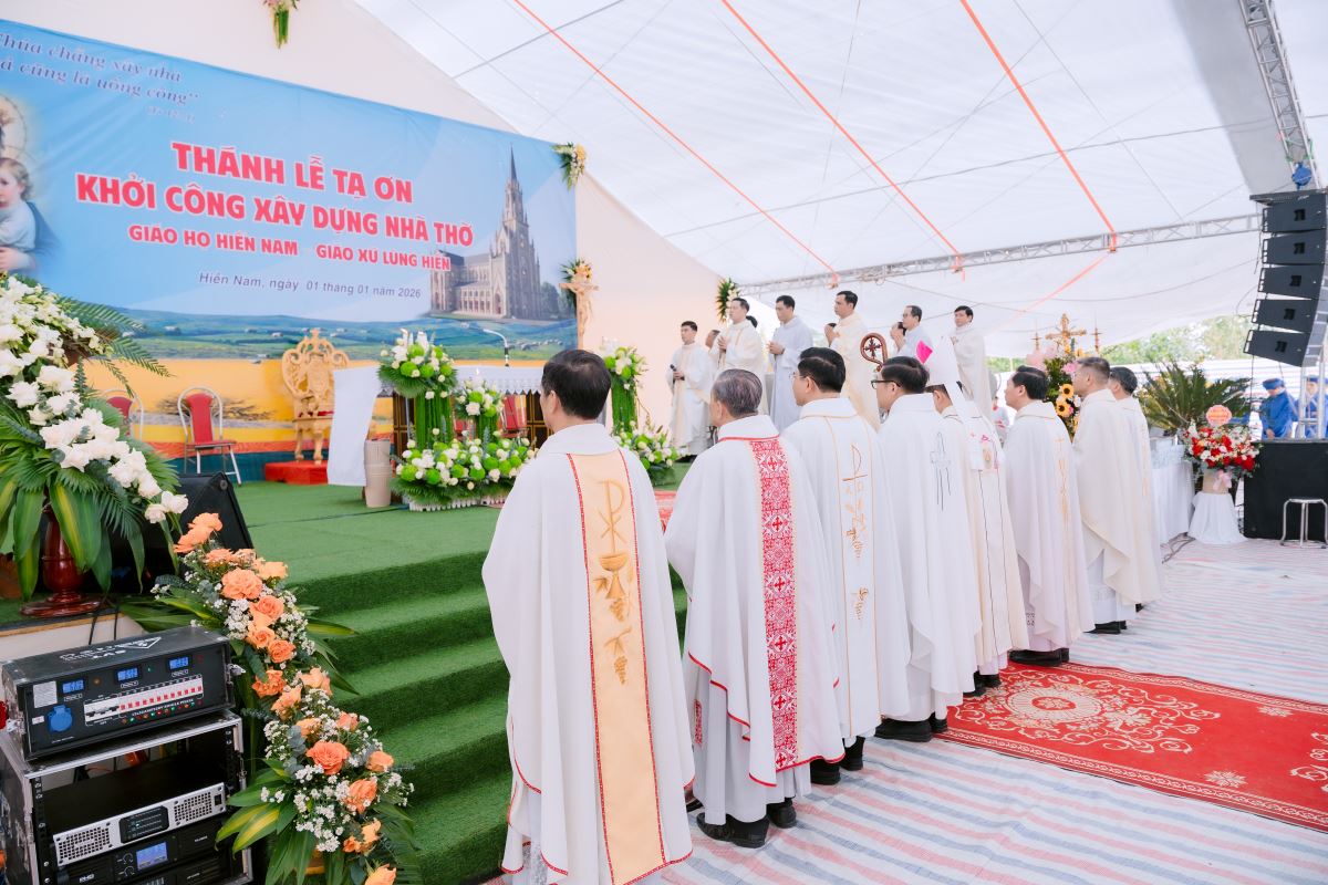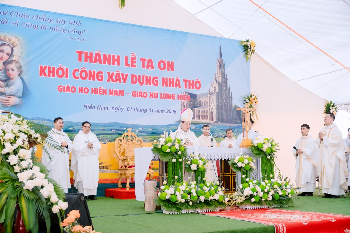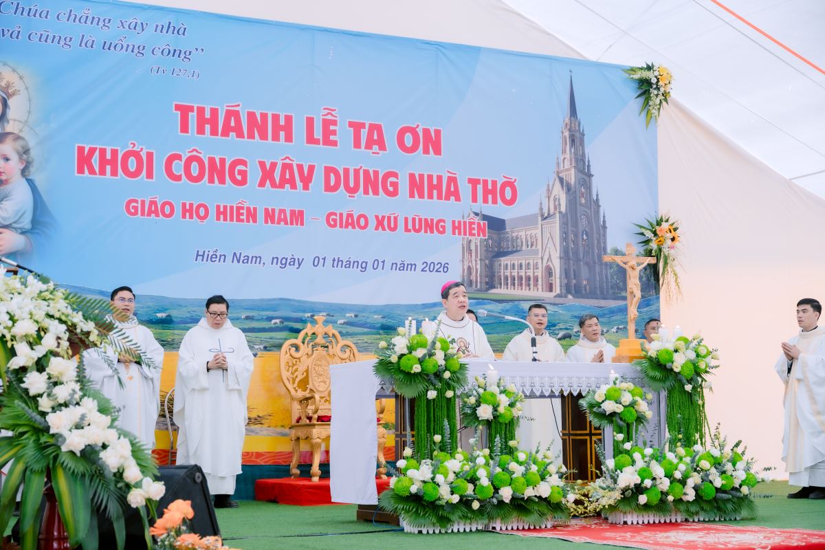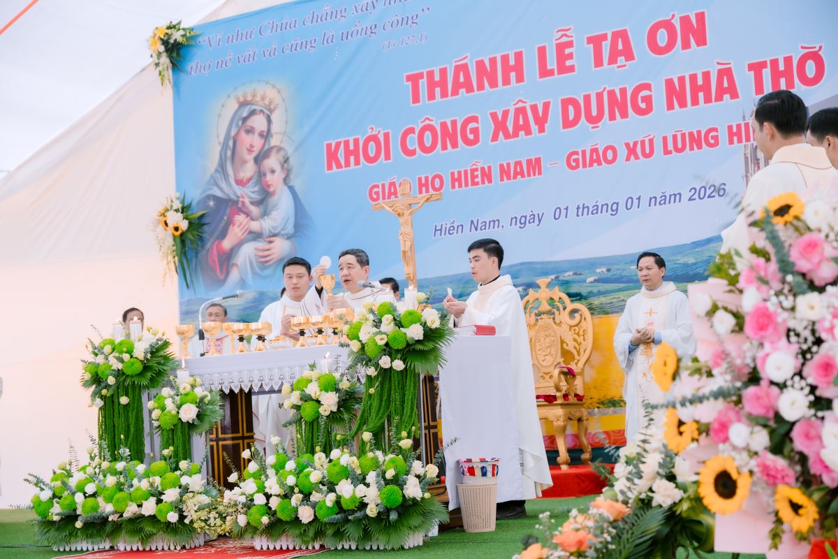 WGPHH - Trong bầu khí hân hoan của ngày đầu năm mới dương lịch 2026 và mừng kính lễ Đức Maria – Mẹ Thiên Chúa, vào lúc 9g00 sáng ngày 01.01.2026, Đức cha Đaminh Hoàng Minh Tiến – Giám mục giáo phận Hưng Hóa, đã chủ sự Thánh lễ tạ ơn – Khởi công xây dựng nhà thờ giáo họ Hiền Nam. Đồng tế với ngài có cha xứ Giuse Phan Văn Luật, cha phó Antôn Cao Linh Sơn, quý cha Quản hạt, quý cha bản hương và quý cha trong giáo phận. Tham dự Thánh lễ còn có quý tu sĩ nam nữ, quý khách tôn giáo bạn, quý đại diện chính quyền cùng đông đảo cộng đoàn dân Chúa.