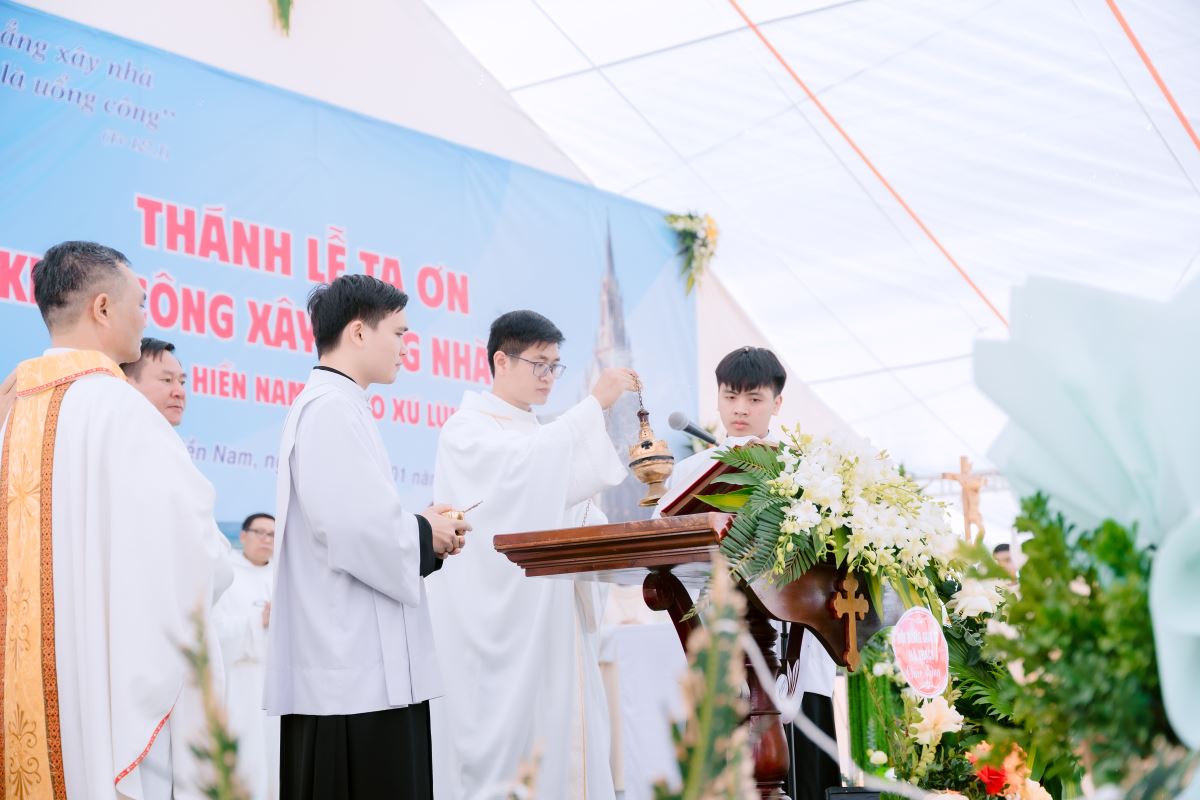 Trước khi kết thúc Thánh lễ, ông Giuse Bùi Thanh Văn, đại diện giáo họ Hiền Nam, đã thay lời cộng đoàn dâng lên Đức cha, quý Cha và quý khách những tâm tình tri ân sâu sắc. Ông cũng phó dâng giáo họ dưới sự che chở của Mẹ Maria – Quan Thầy, xin Mẹ chuyển cầu để Thiên Chúa tiếp tục tuôn đổ muôn hồng ân, gìn giữ cộng đoàn trong đức tin, hiệp nhất, yêu thương, biết phát huy truyền thống tốt đẹp của các bậc tiền nhân và sớm hoàn thành ngôi Thánh đường để thờ phượng Chúa.