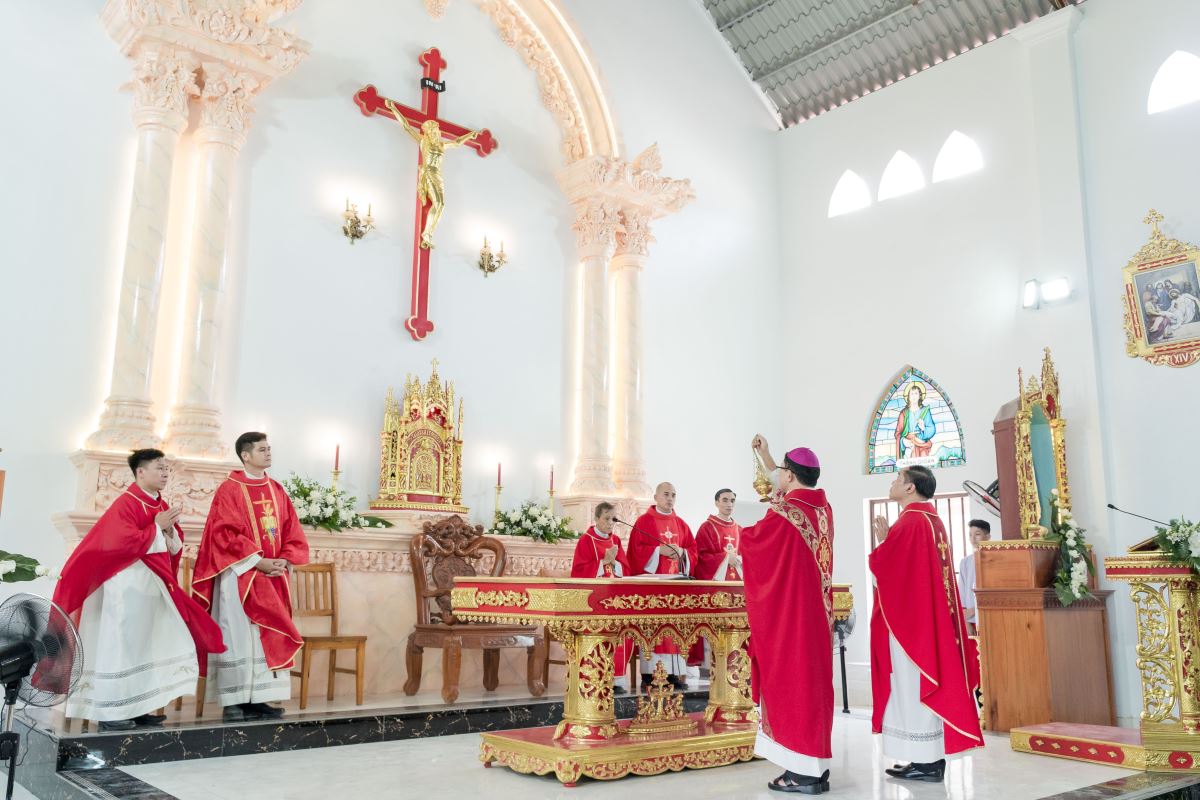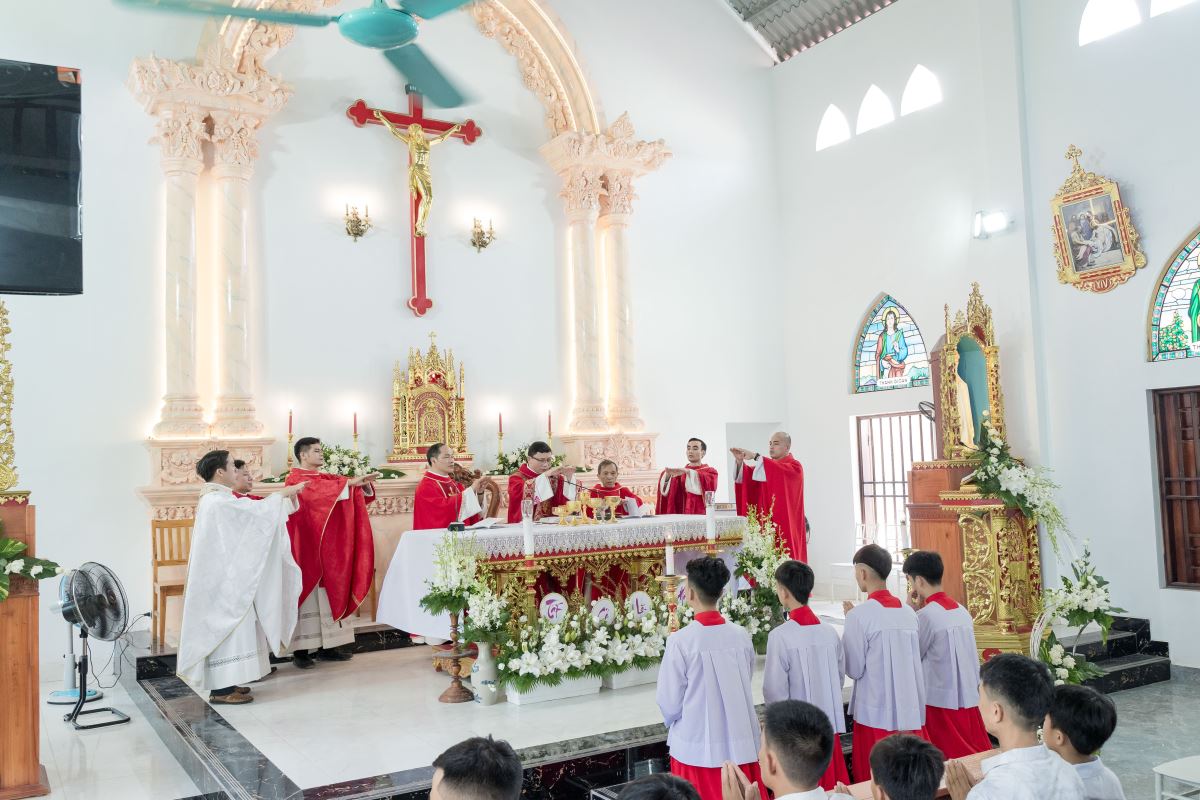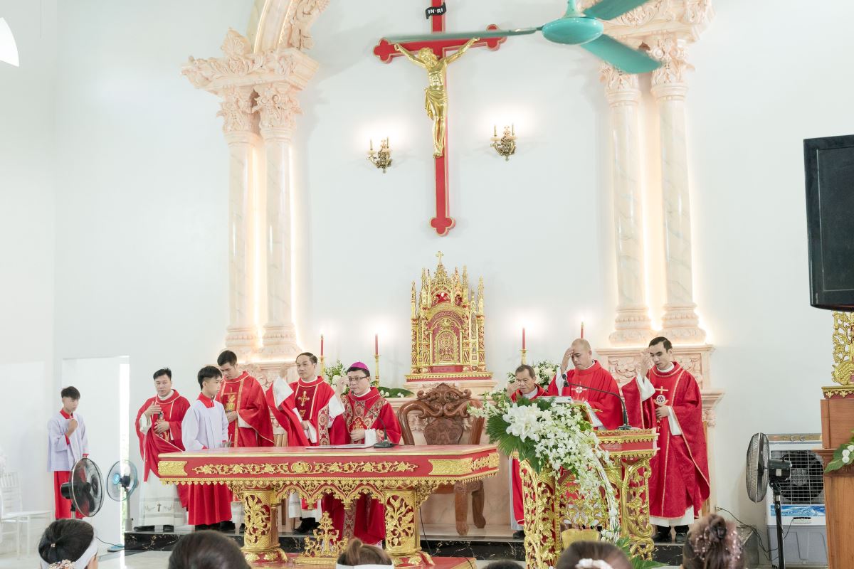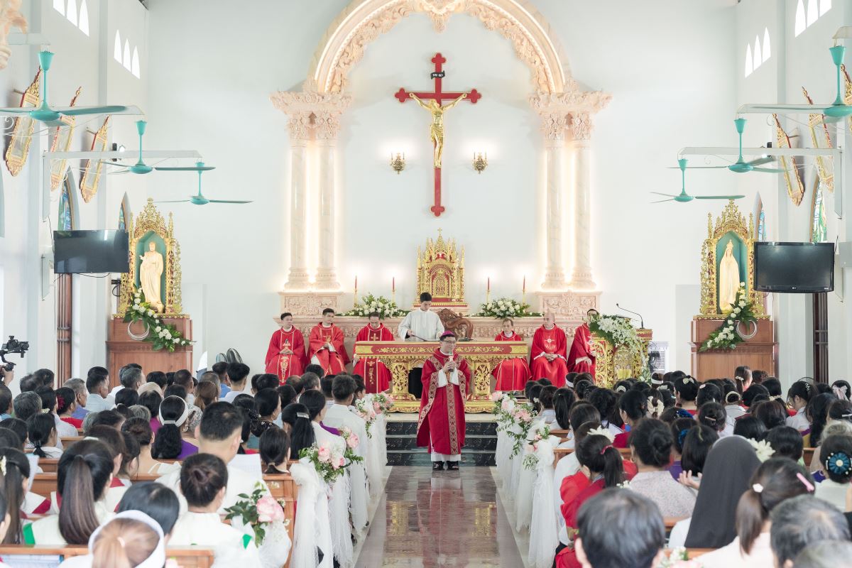 WGPHH - Sáng ngày 11/8/2025, tại giáo họ Phúc Khánh, giáo xứ Đồng Cạn, Đức cha Phụ tá Phaolô Nguyễn Quang Đĩnh đã long trọng chủ sự thánh lễ tạ ơn làm phép nhà thờ Phúc Khánh, tước hiệu thánh Giuse-bạn trăm năm Đức Trinh Nữ Maria. Đồng thời, ngài đã ban bí tích Thêm Sức cho 39 em thiếu nhi giáo xứ Đồng Cạn. Đồng tế với Đức cha Phụ tá, có cha xứ Giuse Nguyễn Gia Huấn, cha phó Giuse Nguyễn Văn Chính, quý cha trong hạt Tây Bắc Phú Thọ với sự hiện diện của quý tu sĩ nam nữ, đại diện các tôn giáo bạn, quý Hội đồng mục trong và ngoài giáo xứ, quý ân nhân, thân nhân và đông đảo cộng đoàn Dân Chúa gần xa.