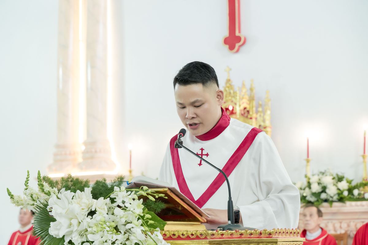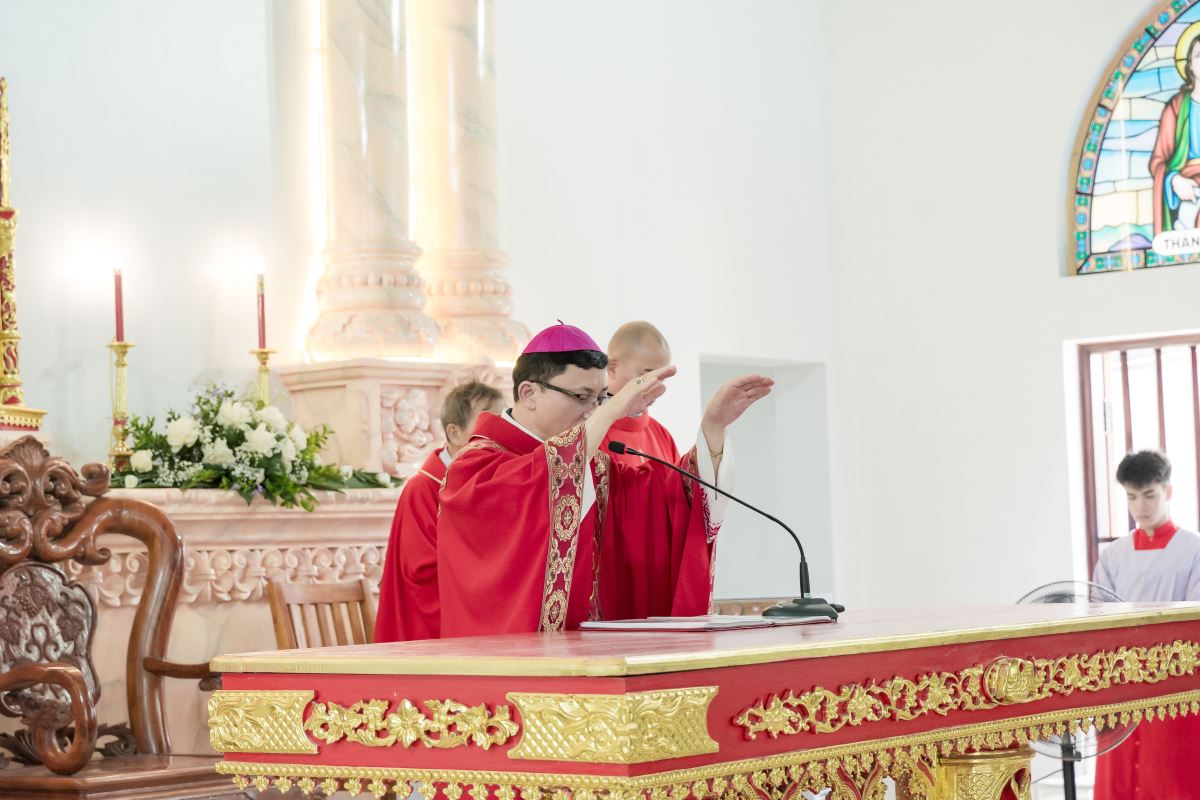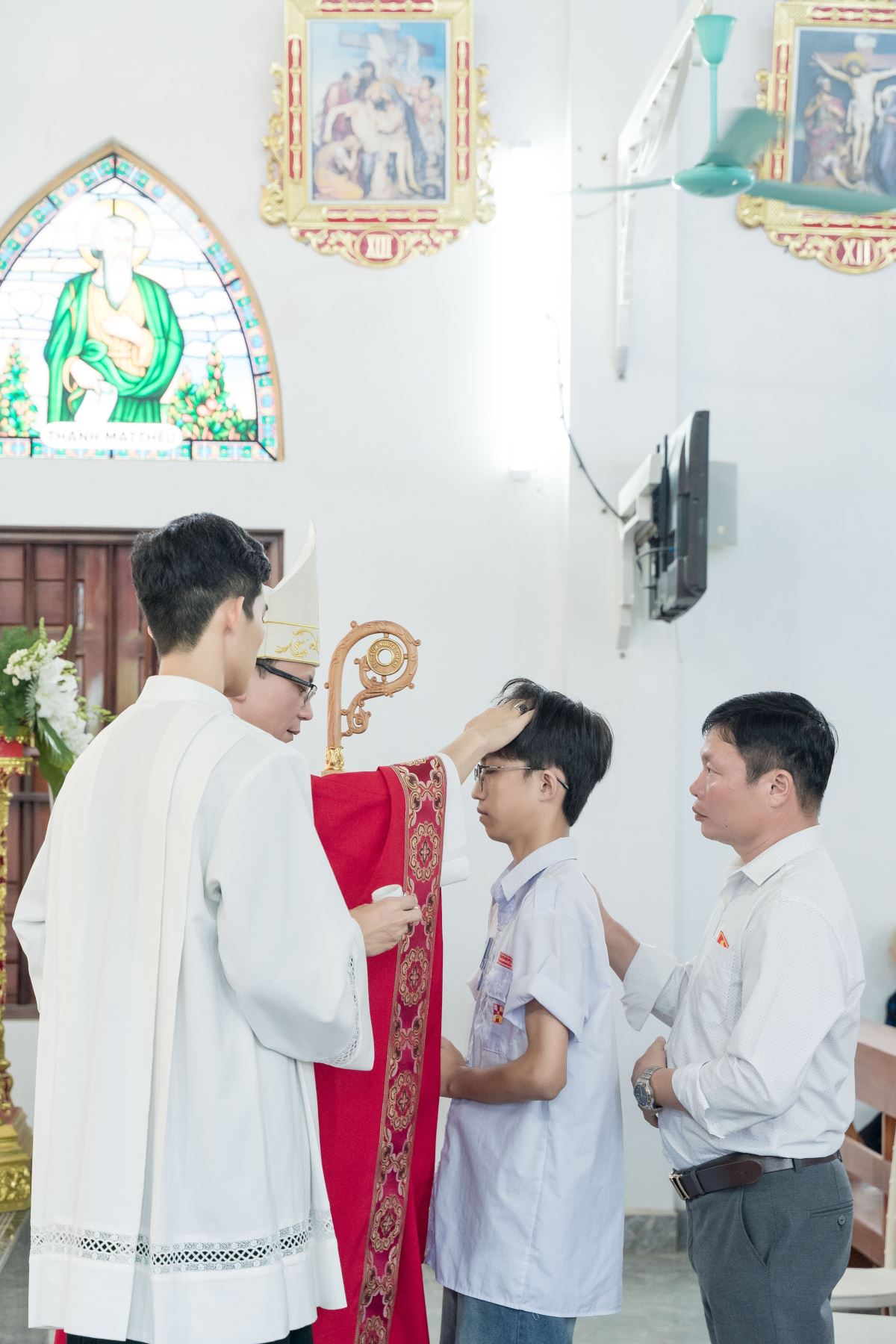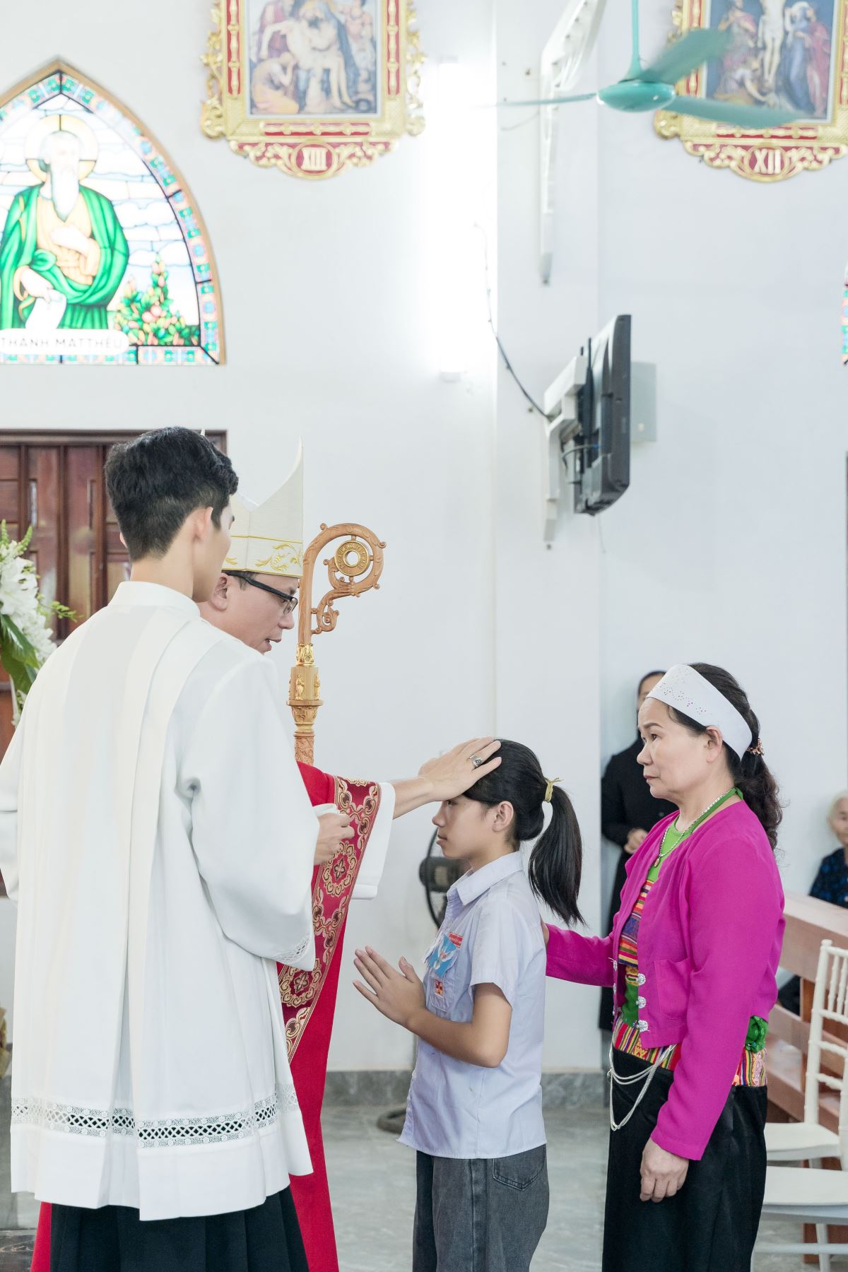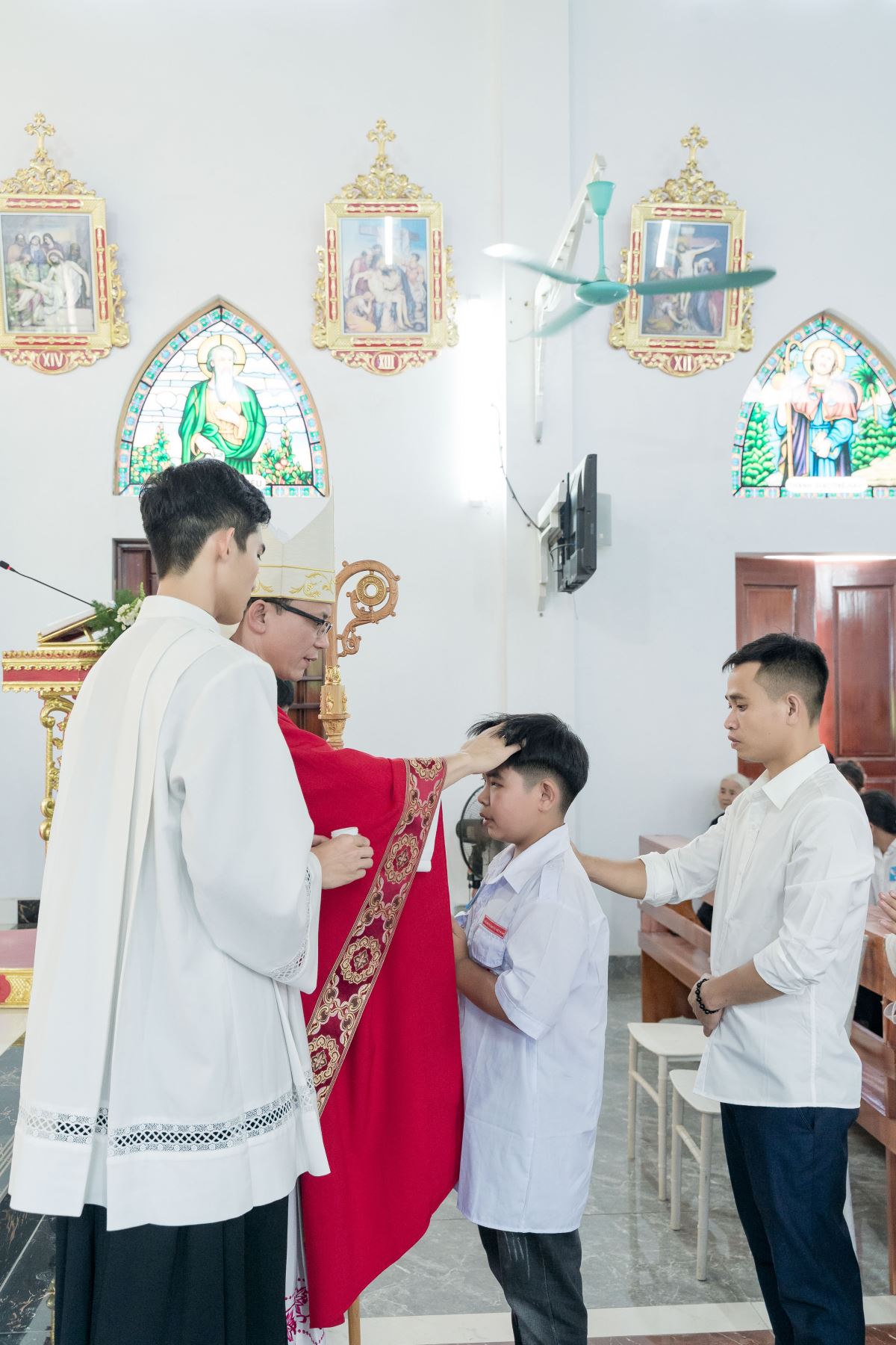 Tiếp đến, ngài khơi gợi cho 39 em thiếu nhi đang chuẩn bị lãnh nhận bí tích Thêm Sức, để các em hiểu được rằng: bí tích Thêm Sức là bí tích đặc biệt để các em lãnh nhận tràn đầy ơn Chúa Thánh Thần, giúp các em can đảm giữ và sống đức tin trong đời sống của mình.