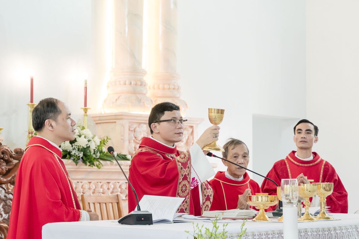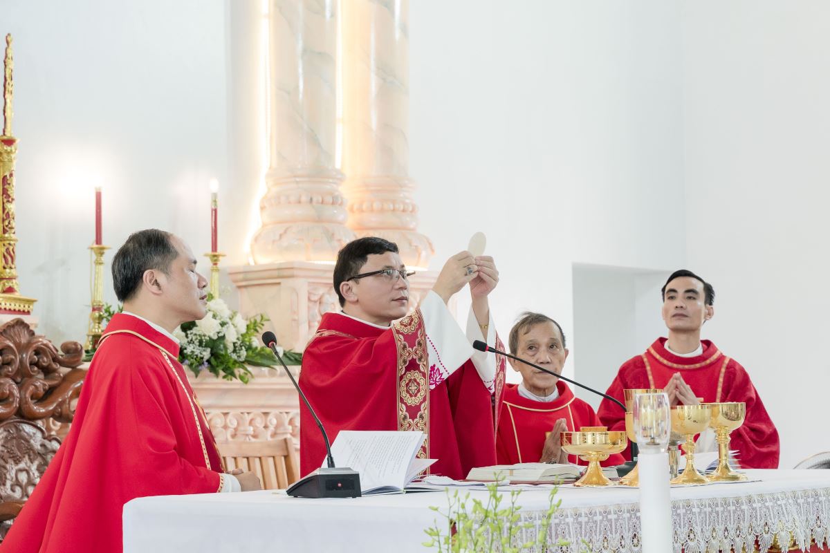 Tiếp theo, trước khi bước vào phần phụng vụ Thánh Thể, Đức cha Phaolô đã cử hành nghi thức làm phép và xông hương bàn thờ. Sau đó, thánh lễ được diễn tiến như thường lệ.