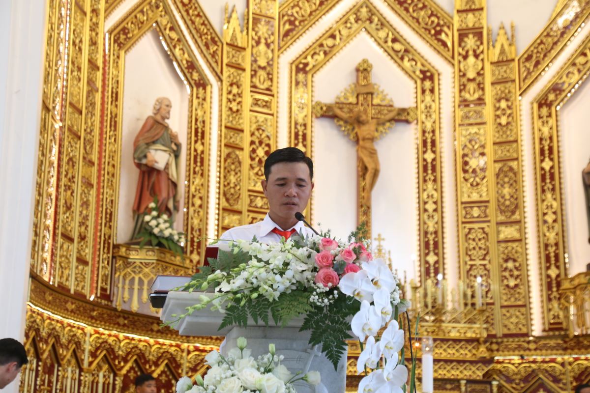 Mở đầu Thánh lễ, cha xứ Giuse bày tỏ niềm vui hân hoan cùng cộng đoàn dân Chúa đã về chung chia niềm vui và hiệp dâng Thánh lễ tạ ơn nhân dịp kỷ niệm 25 năm hồng ân khấn dòng và Hồng Ân Vĩnh Khấn của hai dì.