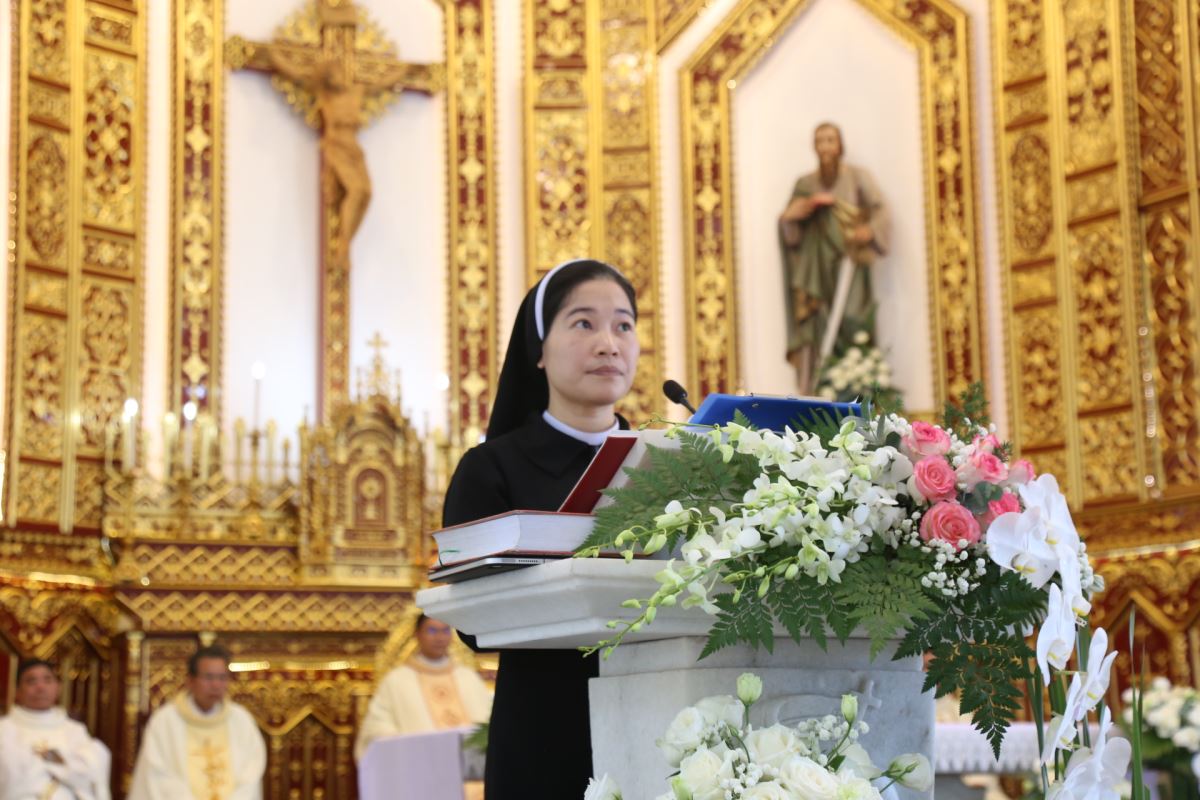 Trước khi lãnh nhận phép lành cuối lễ, hai nữ tu đã dâng lời tạ ơn Thiên Chúa và bày tỏ lòng biết ơn sâu sắc đến quý cha đồng tế, quý tu sĩ, chủng sinh, thân nhân, ân nhân và toàn thể cộng đoàn đã hiện diện hiệp thông trong ngày hồng phúc này.