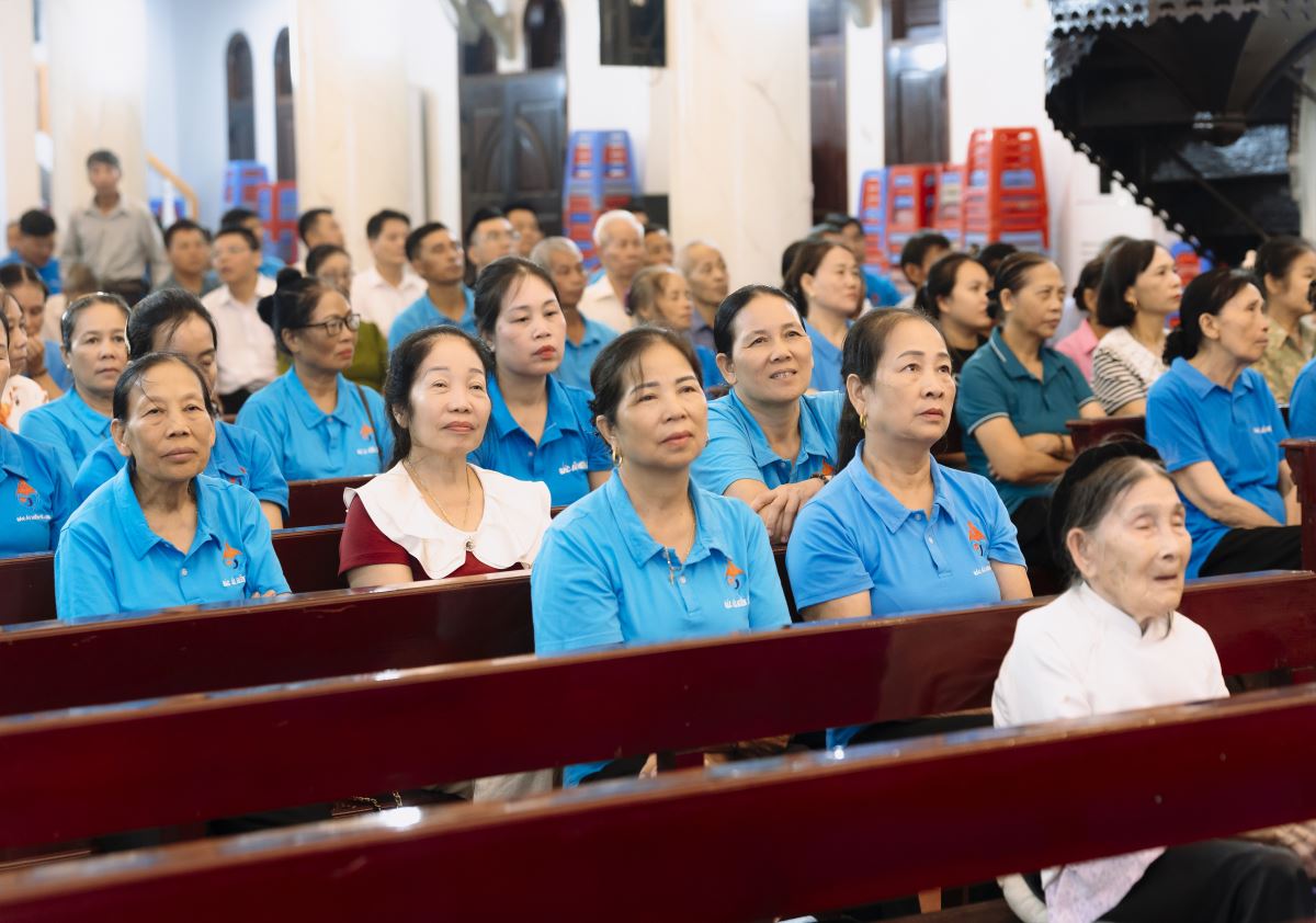 Ngay từ sáng sớm, khi những tia nắng ban mai vừa tỏa rạng, từng đoàn xe của quý cha, quý thầy, quý dì và các thành viên gia đình Bác ái Hiến sĩ, tiếp nối nhau tiến vào khuôn viên nhà thờ giáo xứ Trù Mật. Có những đoàn từ vùng sơn cước xa xôi như Lào Cai, Sơn La, Lai Châu xuôi về, hợp cùng những đoàn thuộc miền trung du Phú Thọ rừng cọ đồi chè. Niềm vui càng nhân lên gấp bội, khi còn có những thành viên từ Chương Mỹ (Hà Nội) và Bắc Giang (Bắc Ninh) cũng về tham dự. Những cái bắt tay chào nhau thân tình, những nụ cười rạng rỡ ngời lên bên màu áo xanh yêu thương tràn đầy hy vọng, làm nên một khung cảnh thật thanh bình, ấm áp và gần gũi như anh em trong đại gia đình ruột thịt.