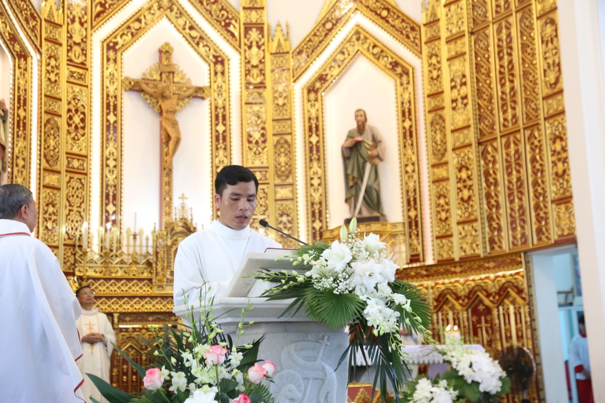 Đức cha Giuse chủ sự Thánh lễ, mở đầu với tâm tình vui mừng và lời mời gọi cộng đoàn cùng cầu nguyện xin Chúa ban cho dì Maria luôn bền đỗ và hăng say làm sáng danh Chúa trên mảnh đất truyền giáo Lạng Sơn Cao Bằng thân thương.