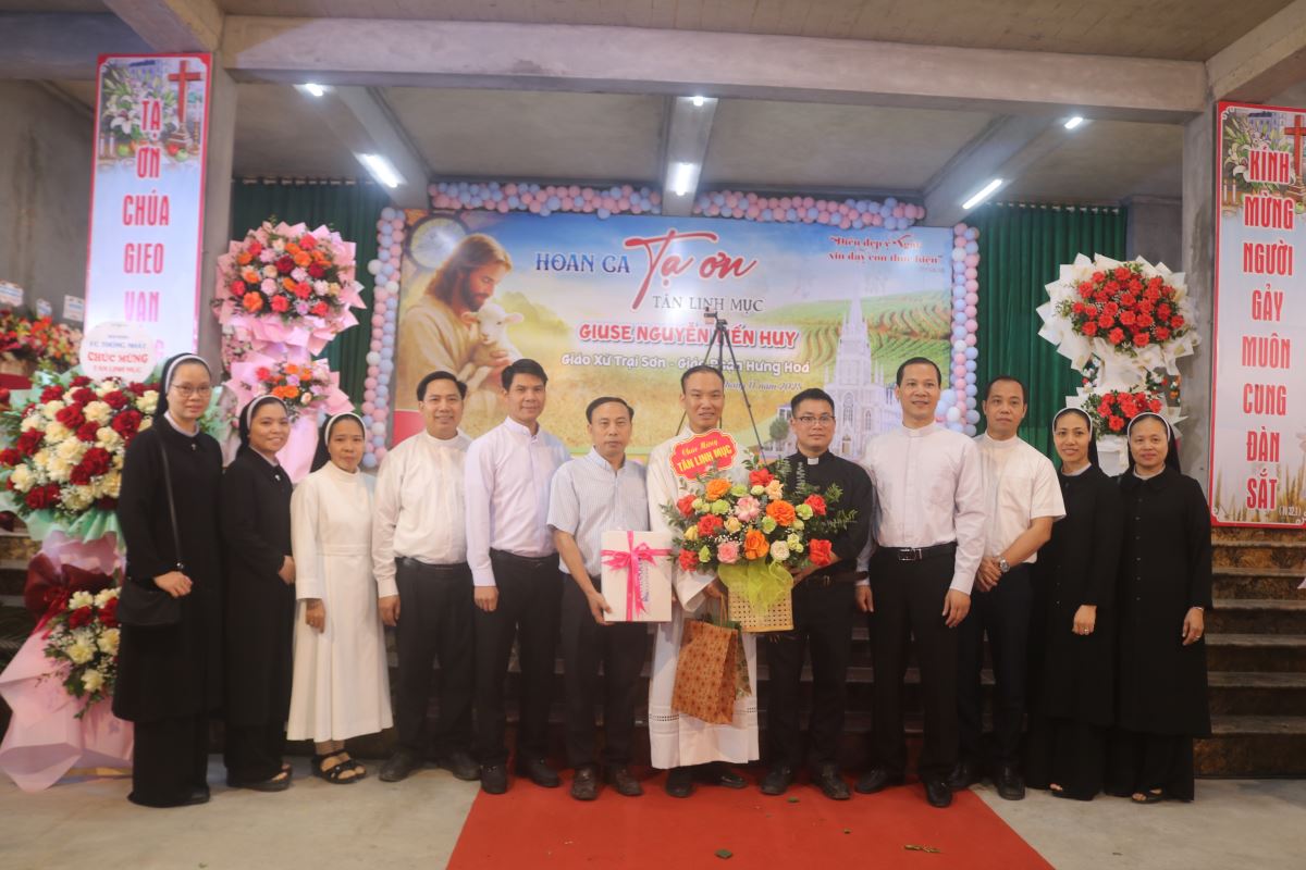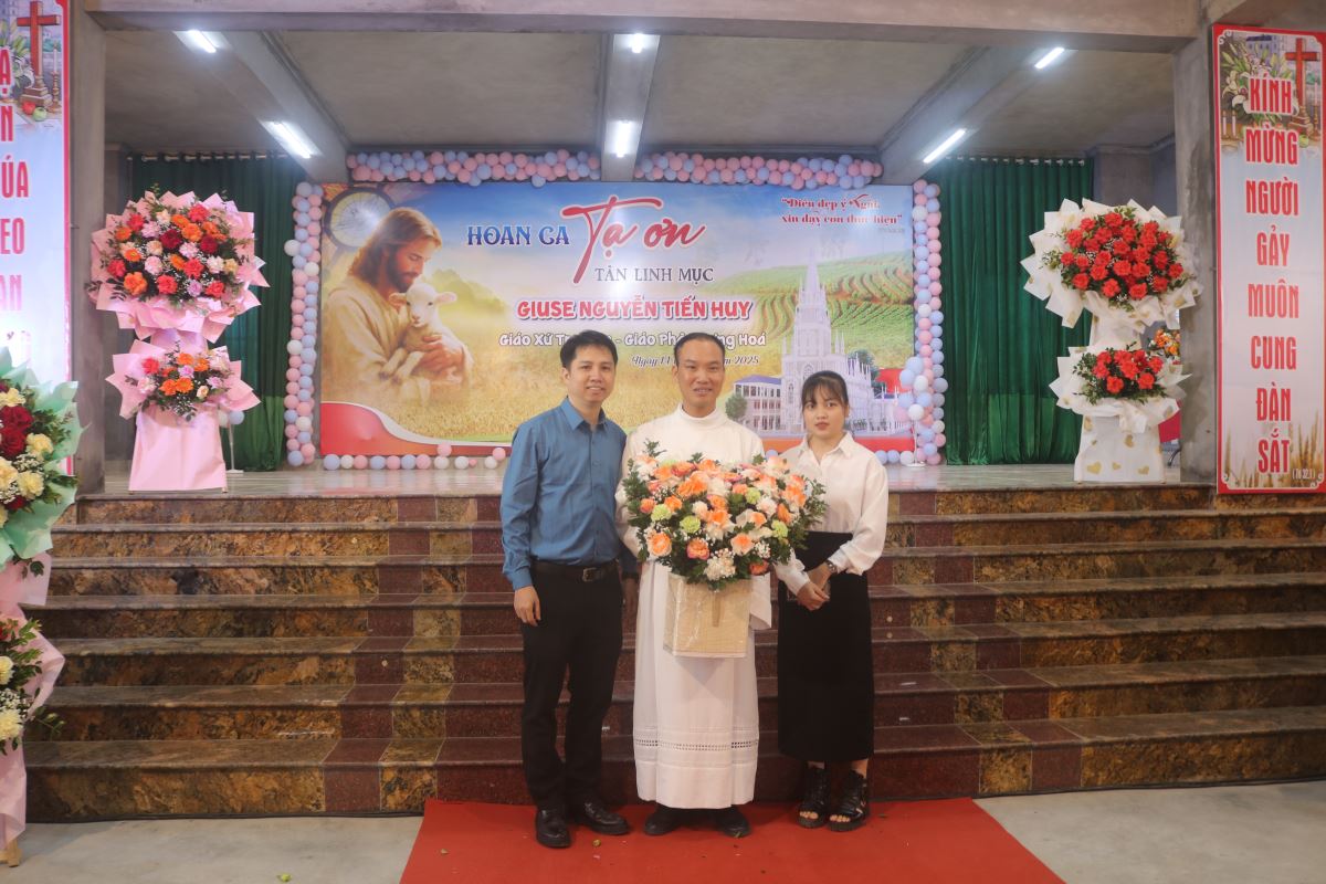 WGPHH – Sáng ngày 14.11.2025, tại nhà thờ Giáo xứ Trại Sơn, tân linh mục Giuse Nguyễn Tiến Huy đã long trọng cử hành Thánh lễ tạ ơn tại quê nhà, thuộc xã Hoàng Xá, huyện Thanh Thủy (nay là xã Tu Vũ), tỉnh Phú Thọ. Hiện diện trong Thánh lễ có cha Antôn Vũ Thái San – Quản hạt Tây Nam Phú Thọ, quản xứ Hoàng Xá và Trại Sơn; cha đặc trách Vinh Sơn Vũ Văn Nguyện; cha nghĩa phụ Giuse Lê Ngọc Nghi; quý cha đồng tế, cùng đông đảo cộng đoàn dân Chúa.