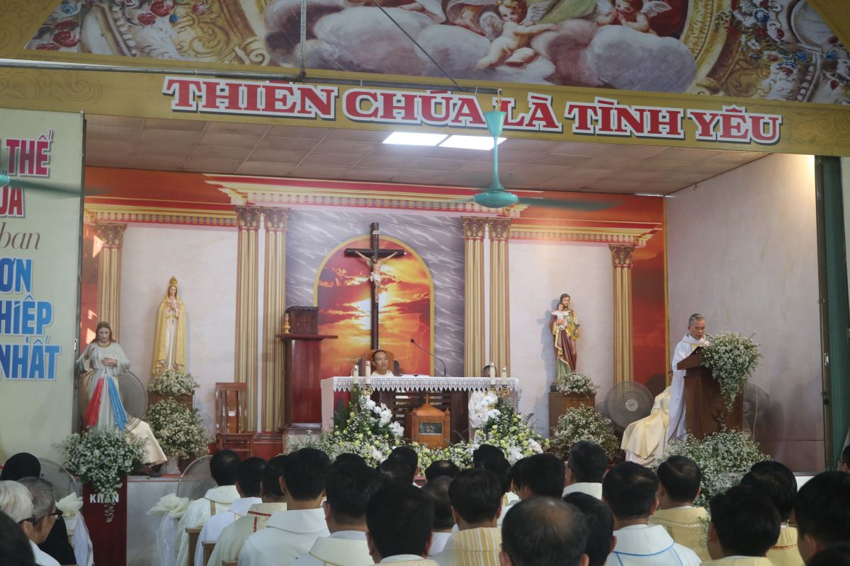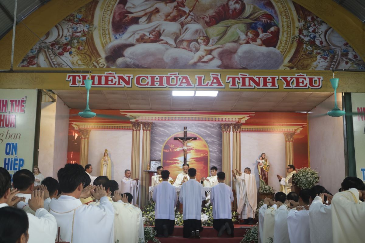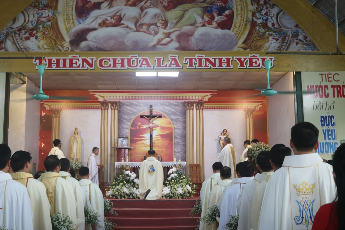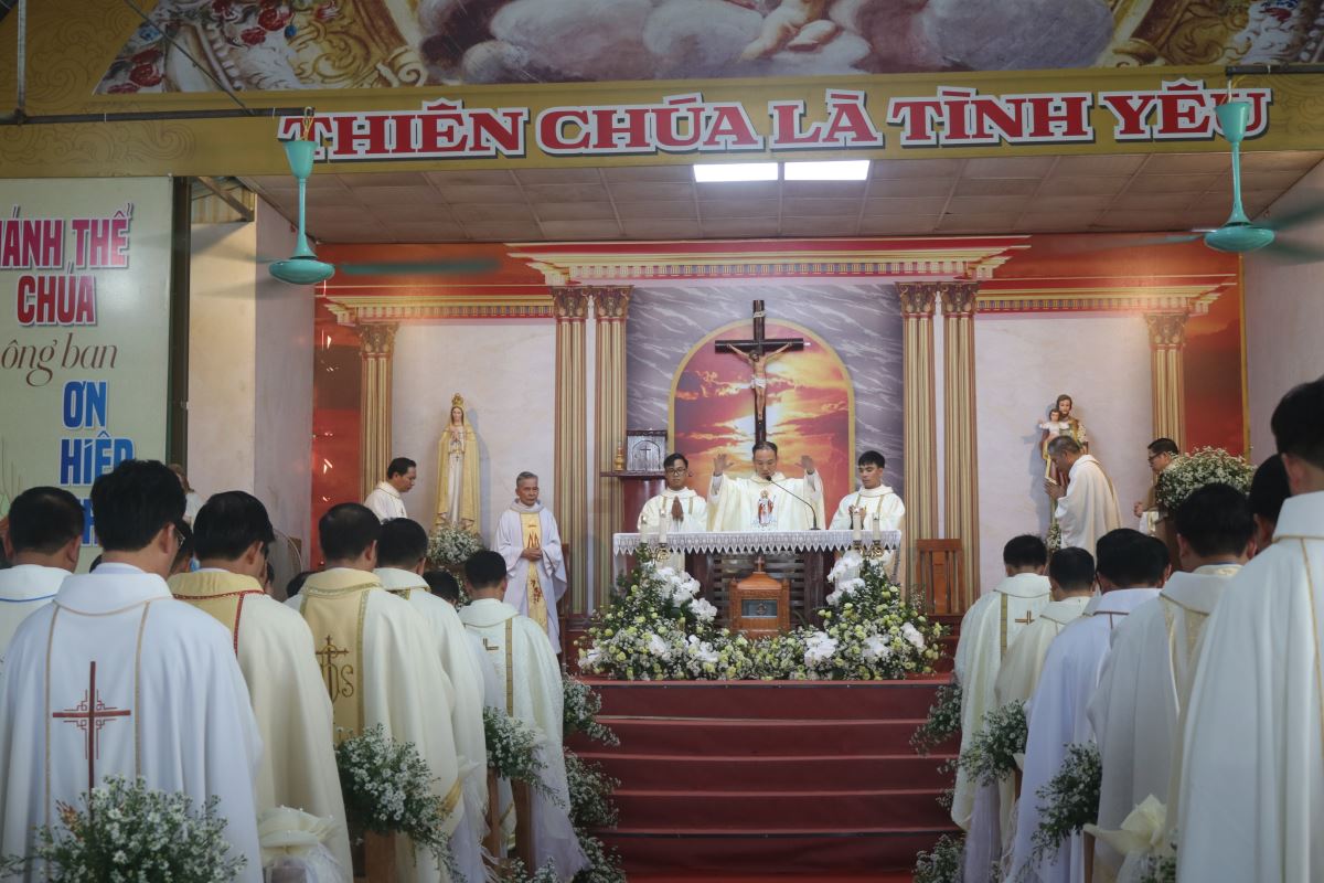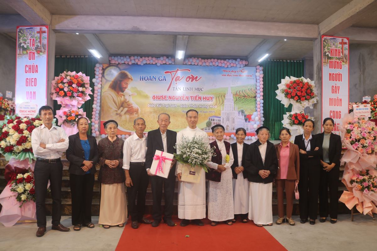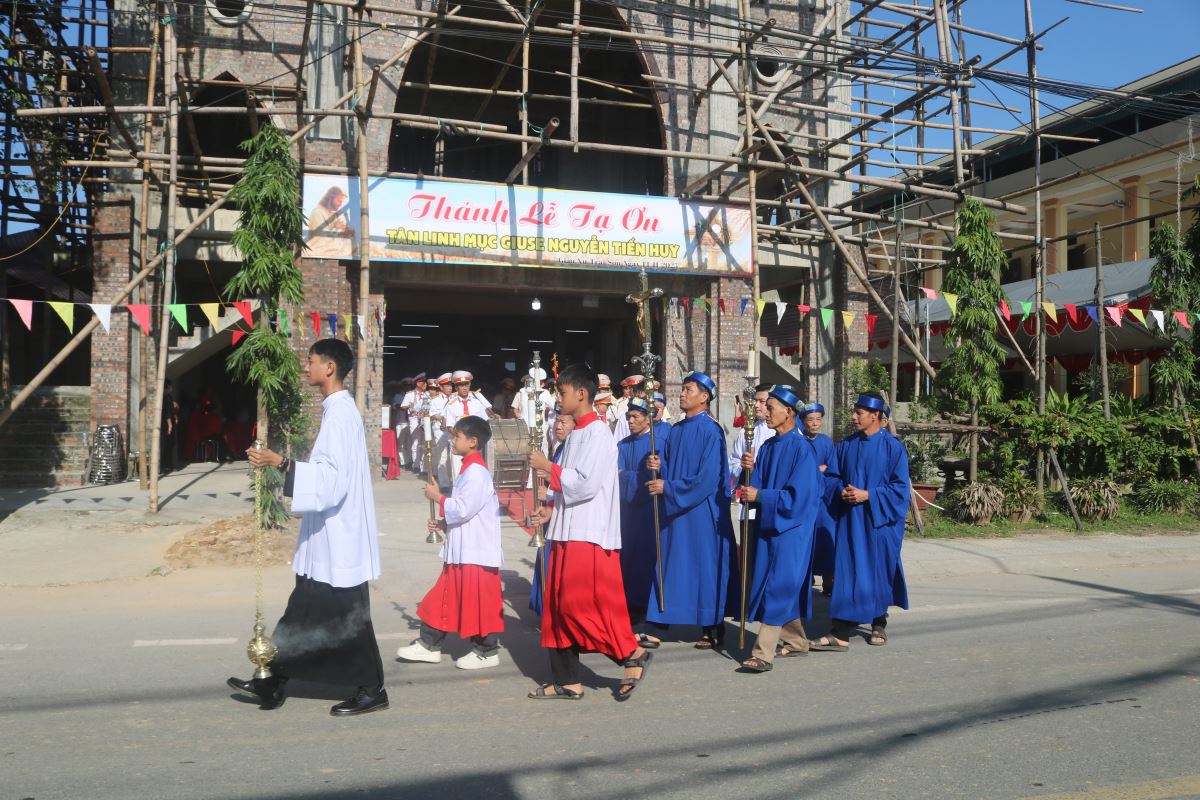 Trong Thánh lễ sáng nay, tân linh mục Giuse hiệp dâng tâm tình tạ ơn Thiên Chúa, tri ân tổ tiên, biết ơn cha mẹ đã sinh thành dưỡng dục, và cảm ơn các anh chị em, bà con quê hương đã nâng đỡ ngài trong suốt hành trình ơn gọi. Đây cũng là Thánh lễ đầu tiên ngài cử hành tại chính quê hương mình sau ngày thụ phong.