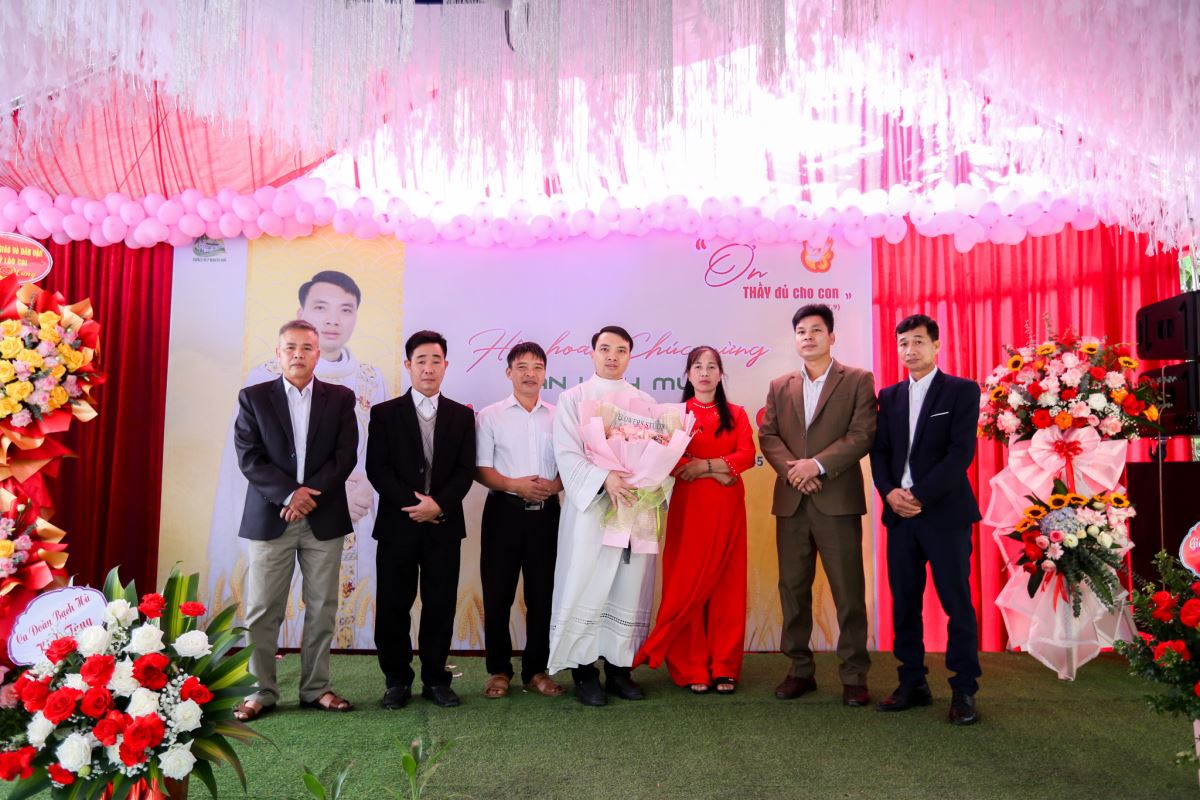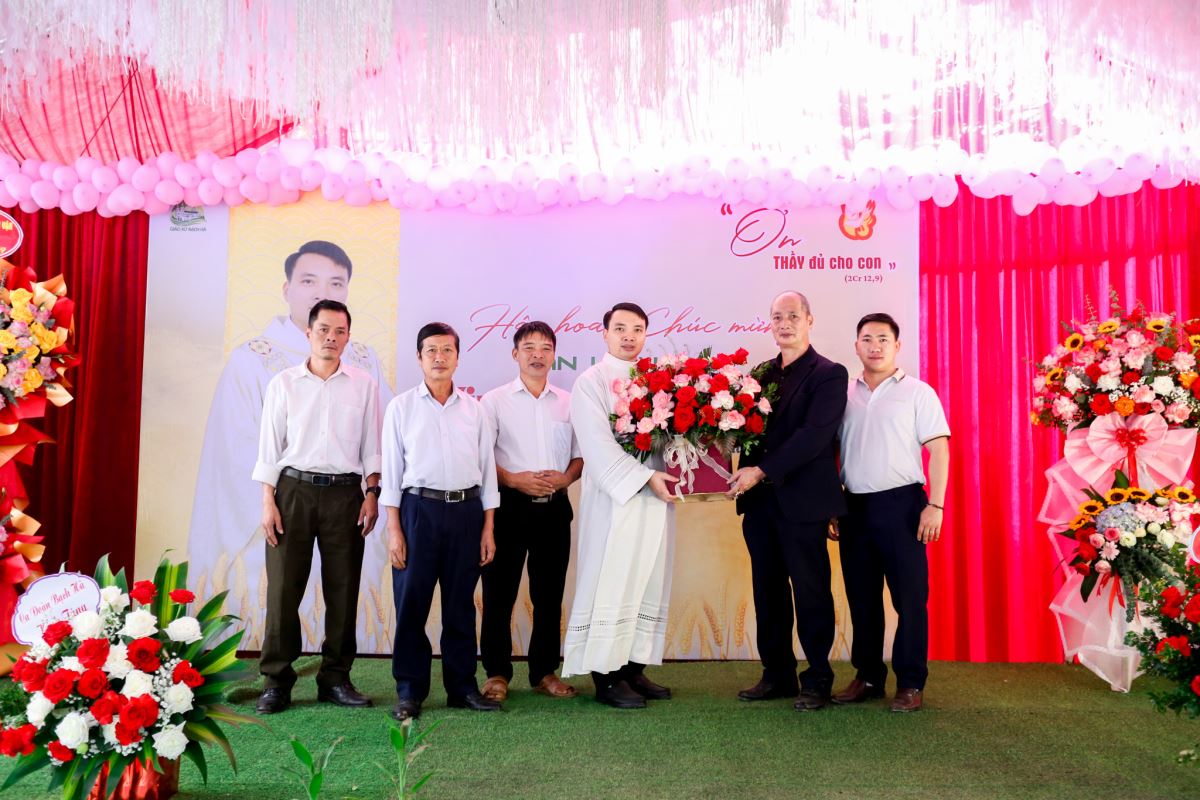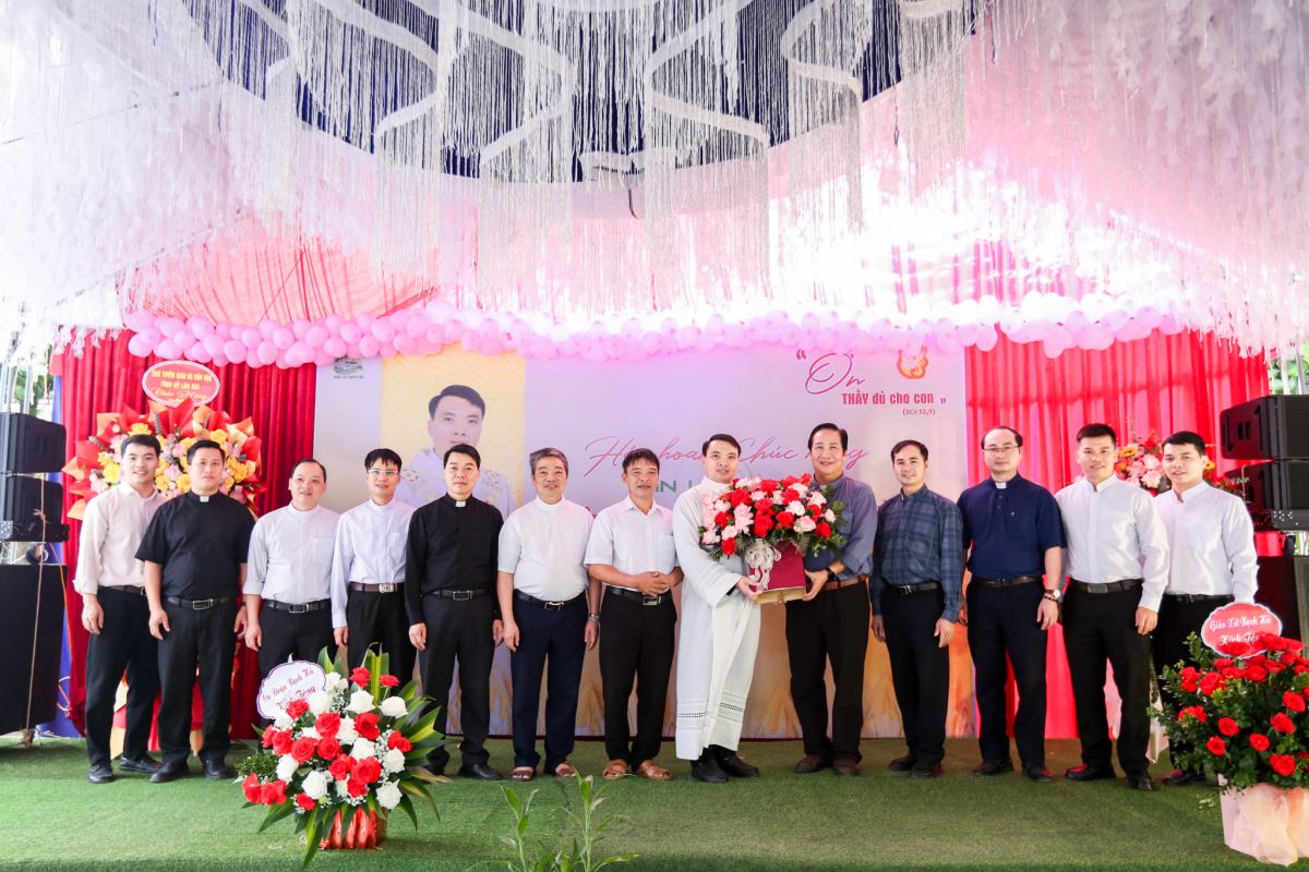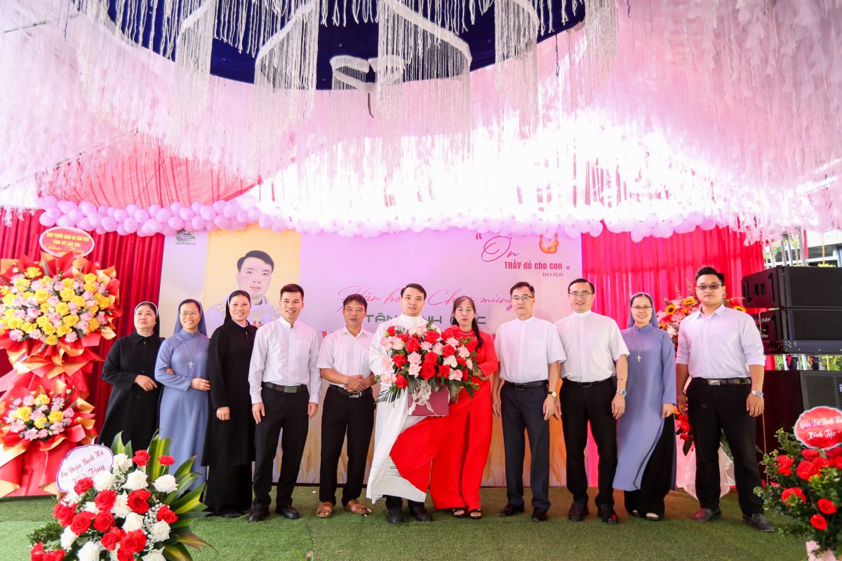 Trước Thánh lễ, vào lúc 7 giờ 30 phút, tại khuôn viên giáo xứ, quý thân nhân, bạn hữu và cộng đoàn đã chúc mừng Tân Linh mục bằng những lẵng hoa và lời cầu chúc thân tình.
