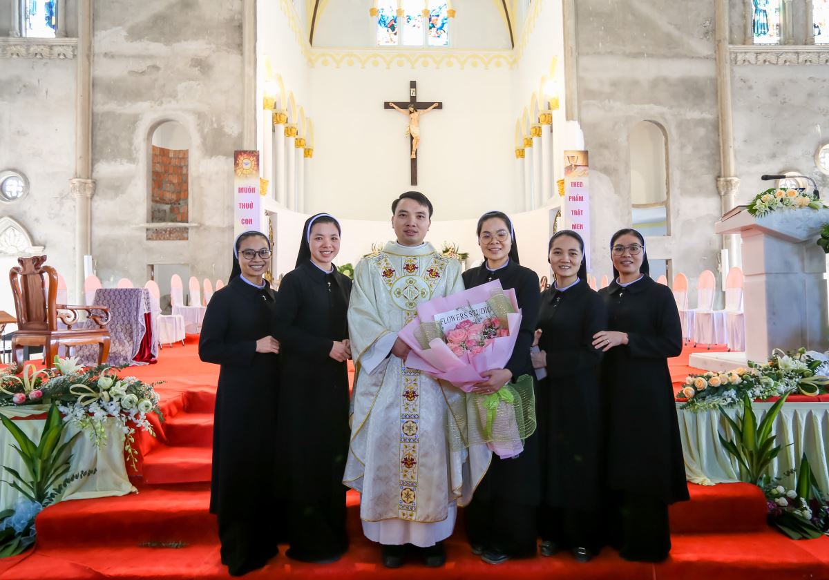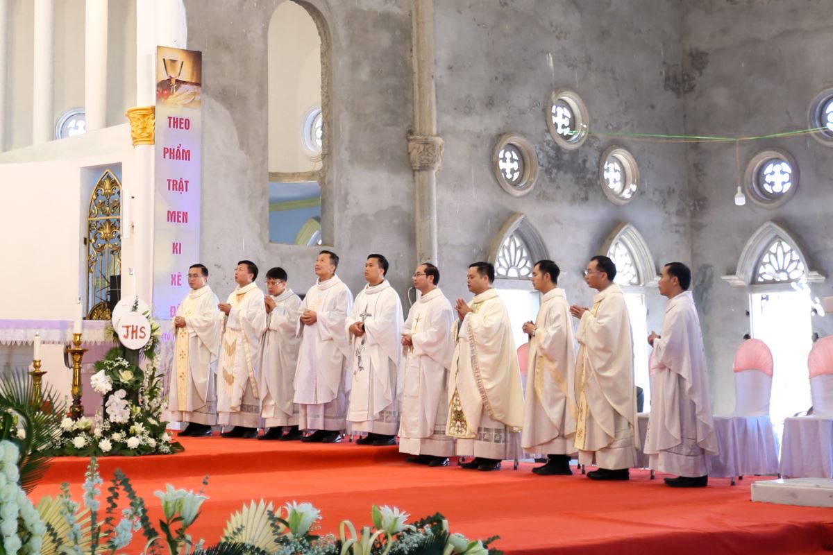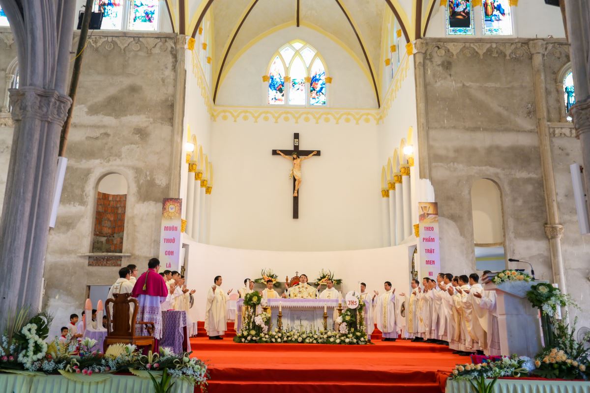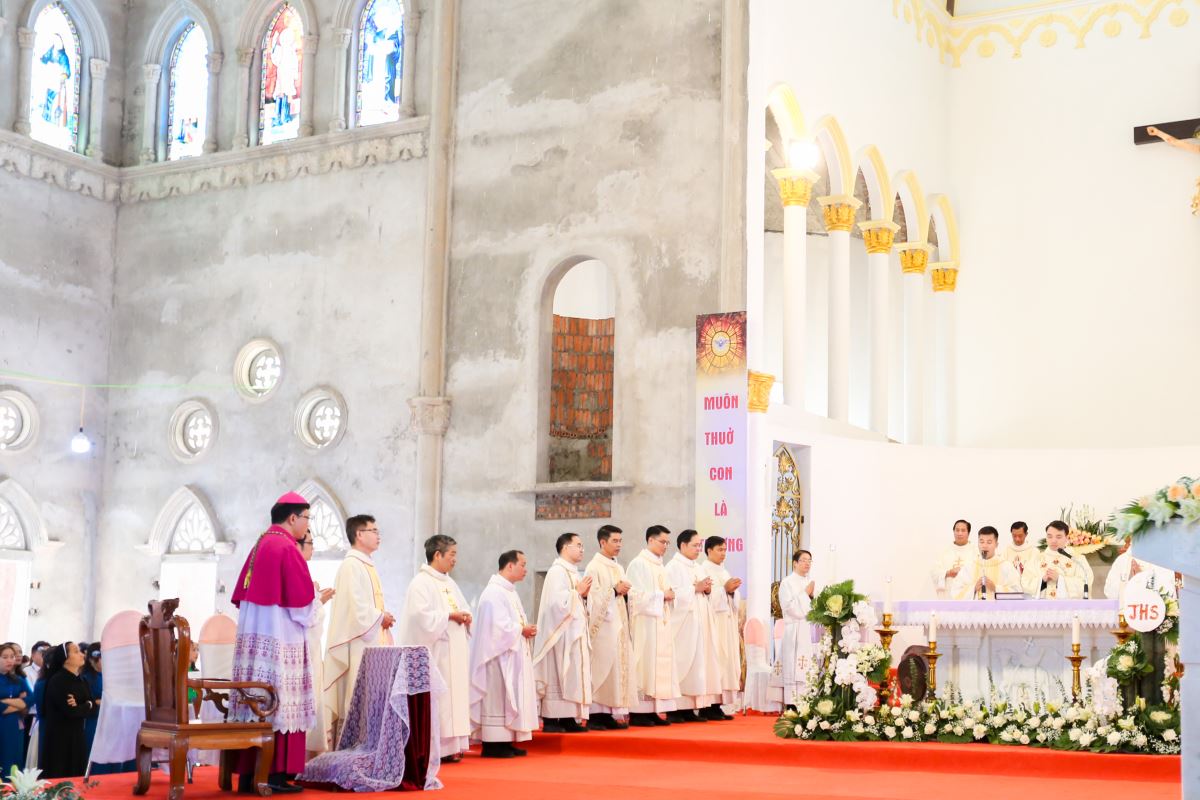 Thánh lễ tạ ơn được cử hành lúc 9 giờ với cha Vinhsơn chủ tế, cùng sự hiện diện trân quý của Đức cha phụ tá Phaolô, cha quản hạt, quý cha trong và ngoài giáo phận, thầy phó tế, quý thầy, quý dì, quý ân nhân và đông đảo cộng đoàn dân Chúa trong và ngoài giáo xứ.