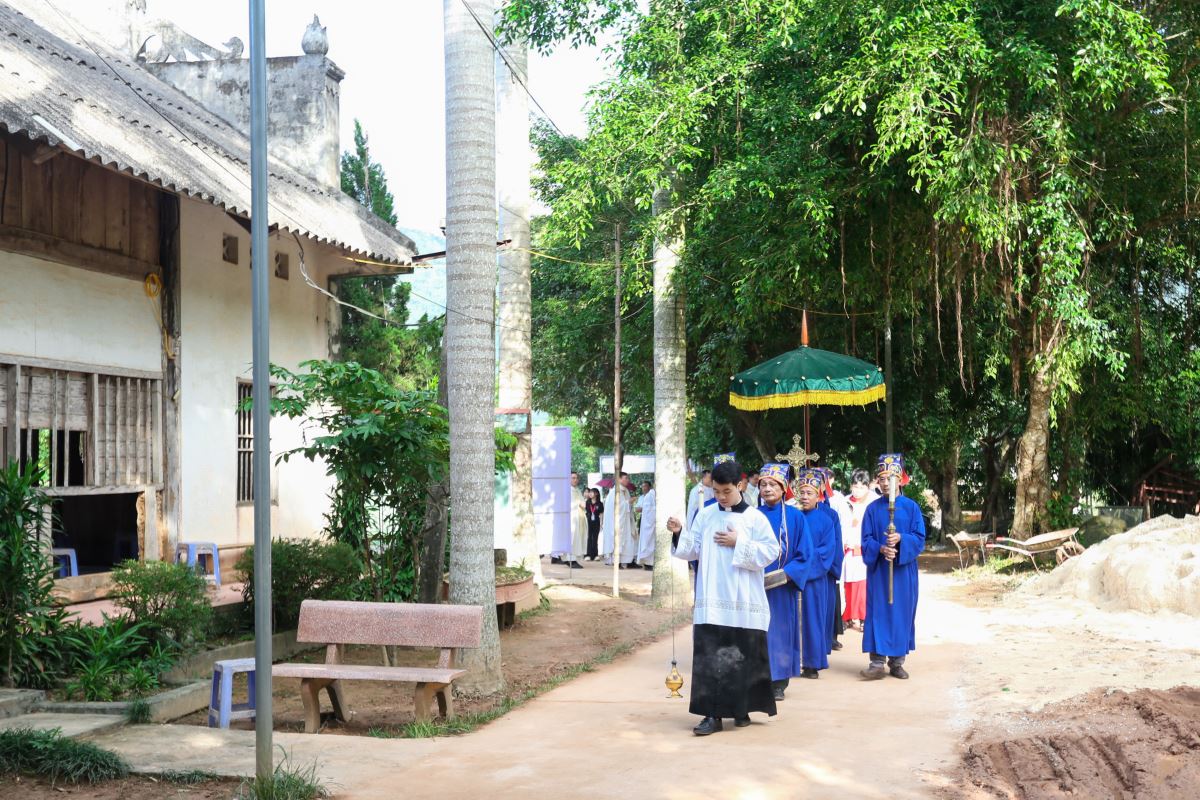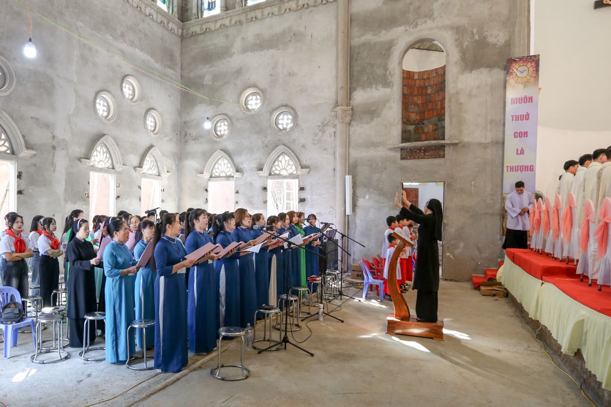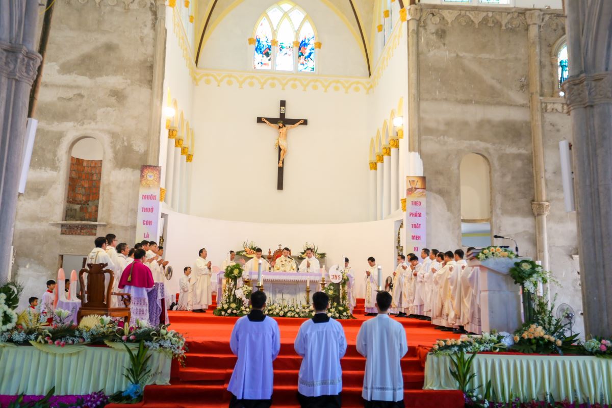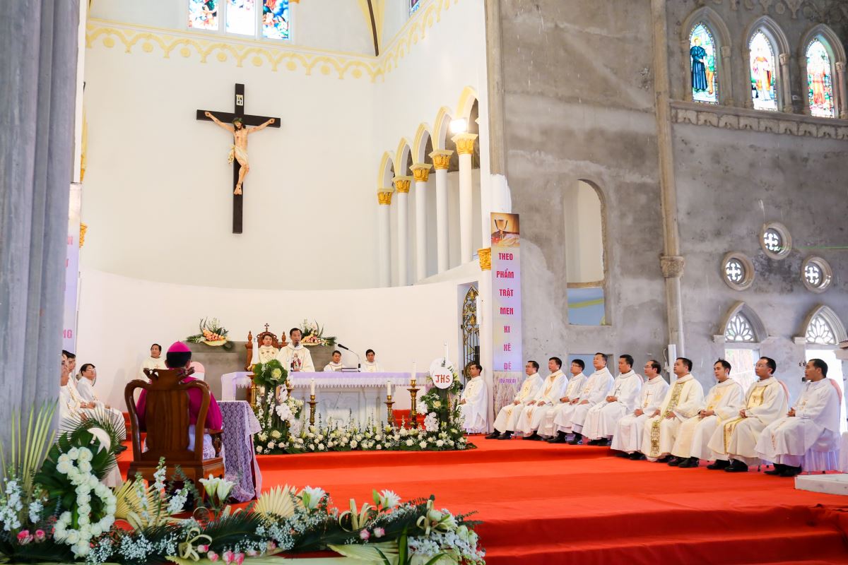 Thánh lễ tạ ơn được cử hành lúc 9 giờ với cha Vinhsơn chủ tế, cùng sự hiện diện trân quý của Đức cha phụ tá Phaolô, cha quản hạt, quý cha trong và ngoài giáo phận, thầy phó tế, quý thầy, quý dì, quý ân nhân và đông đảo cộng đoàn dân Chúa trong và ngoài giáo xứ.