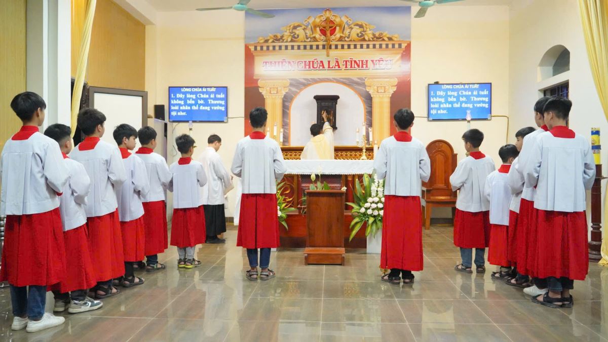 Ngay từ bài ca nhập lễ, đoàn rước tiến vào lễ đài giữa không gian trầm hùng, gợi mở một hành trình đi vào mầu nhiệm tình yêu.