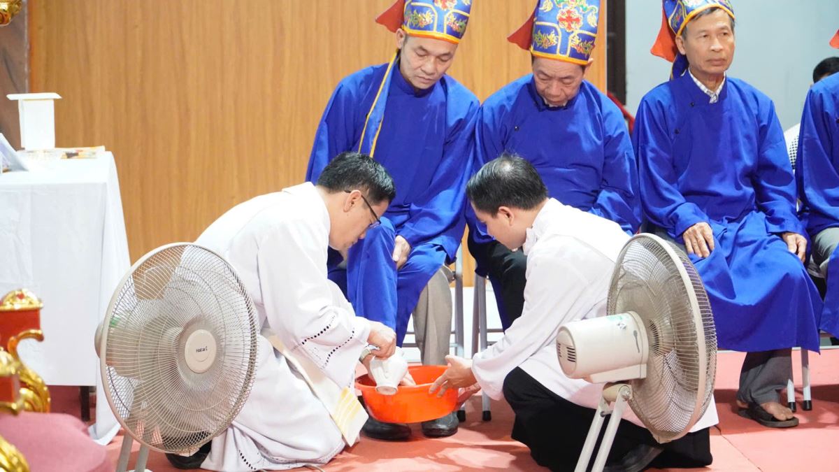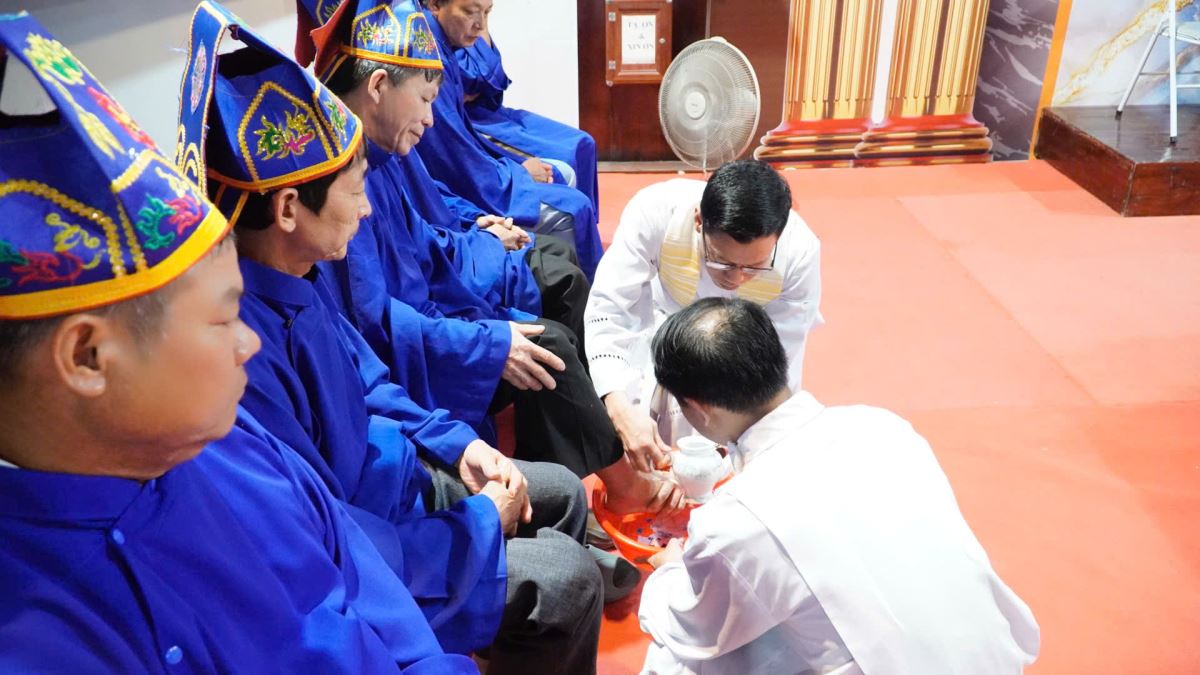 Lắng đọng và để lại nhiều cảm xúc sâu sắc nhất cho cộng đoàn chính là nghi thức rửa chân, khi Cha xứ Giuse cúi mình rửa chân cho các tông đồ, tái hiện hình ảnh một Hội thánh biết phục vụ và yêu thương nhau như chính Thầy Chí Thánh đã làm.