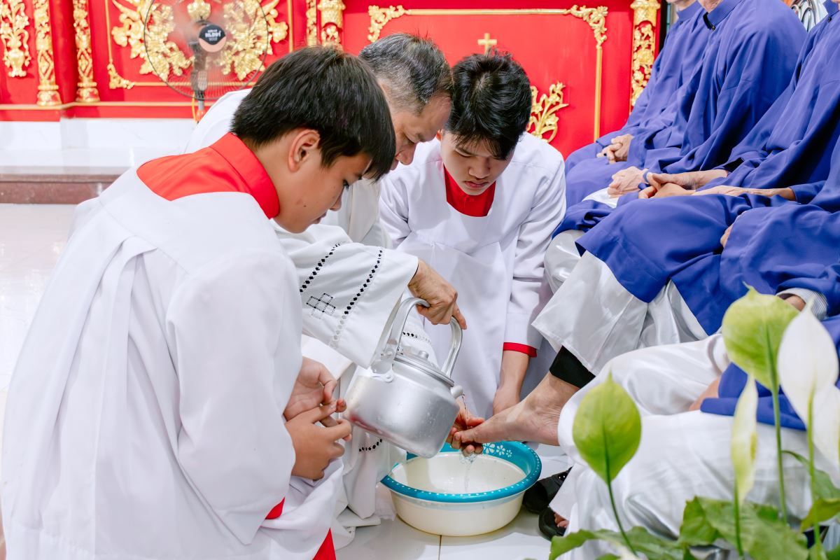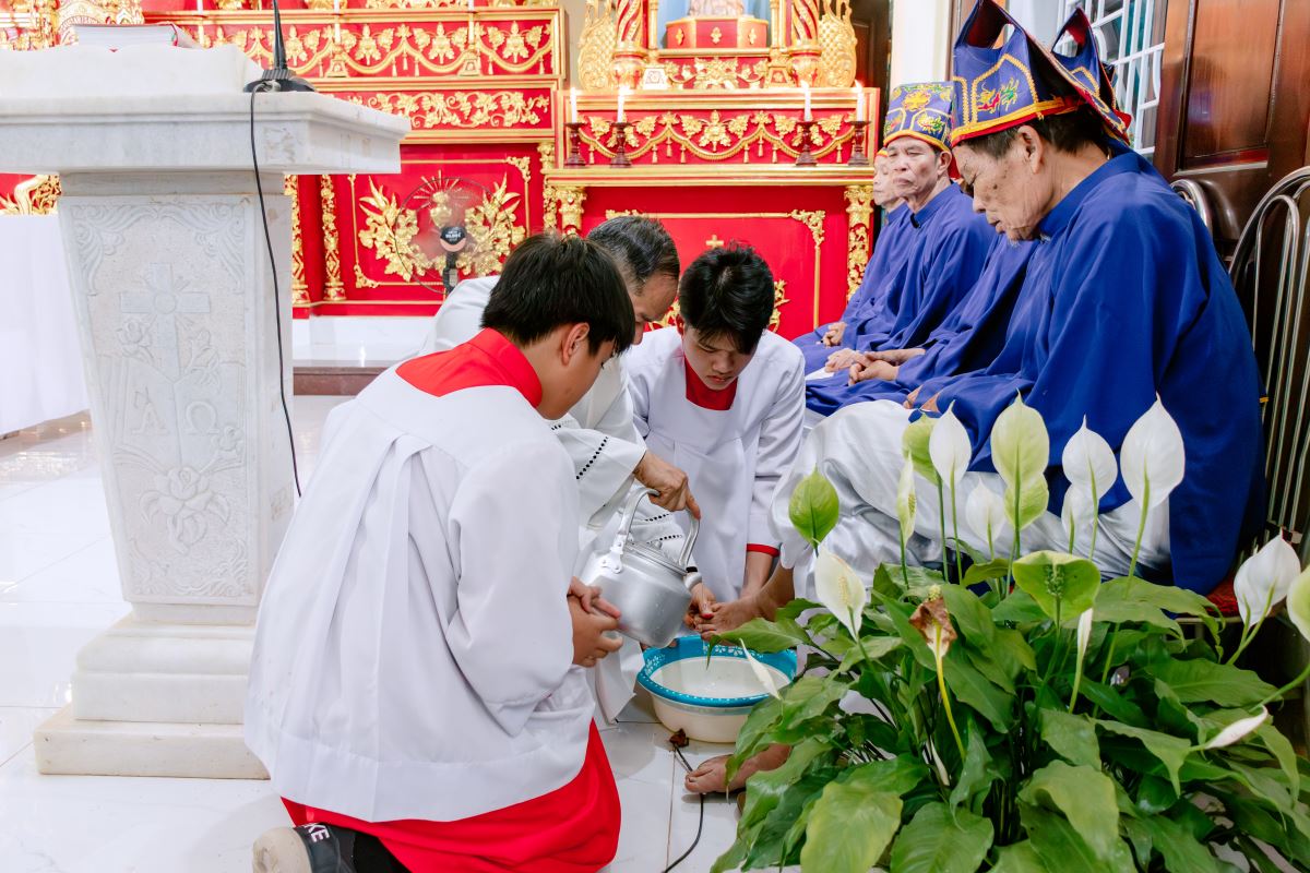 Cha chủ tế thực hiện nghi thức rửa chân, tái hiện cử chỉ yêu thương và phục vụ của Chúa Giêsu dành cho các môn đệ |