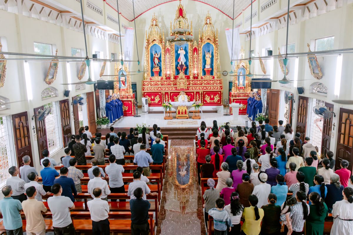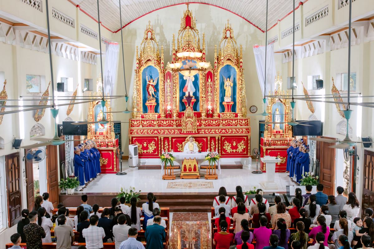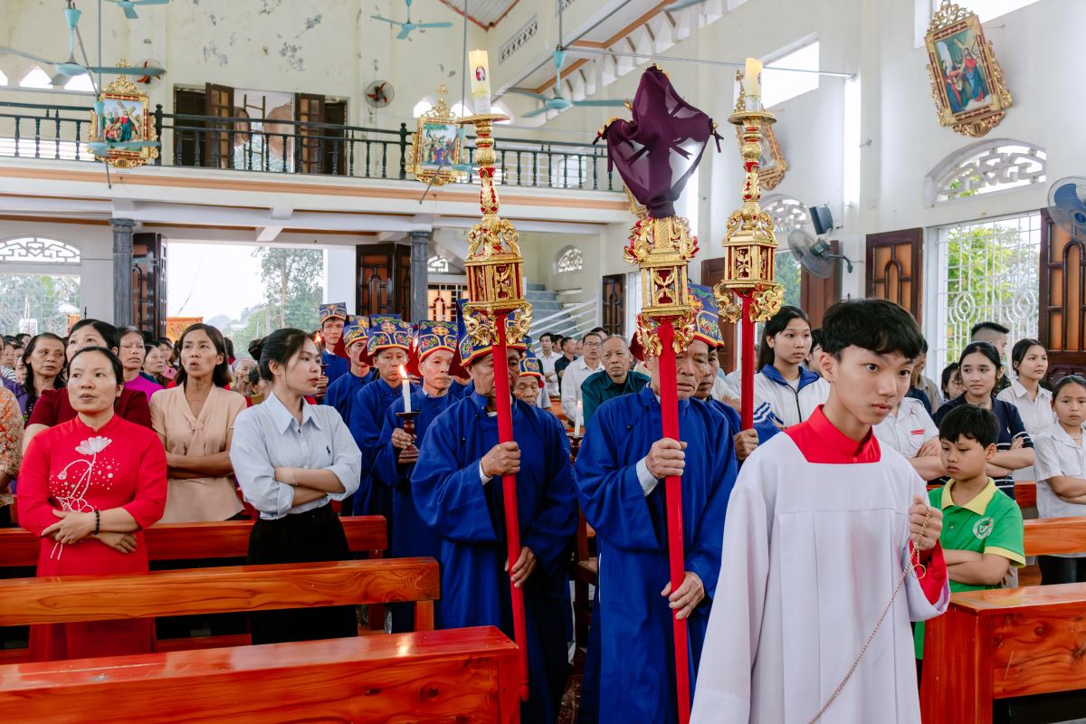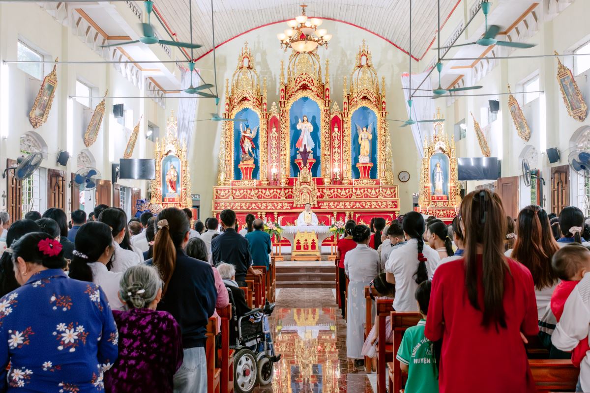 Thánh lễ do cha xứ Giuse Nguyễn Gia Huấn chủ tế, cùng với sự hiện diện hiệp thông của quý dì Hội dòng Mến Thánh Giá Hưng Hóa đang hỗ trợ mục vụ trong những ngày Tuần Thánh, và cộng đoàn dân Chúa đến từ các giáo họ trong giáo xứ.
