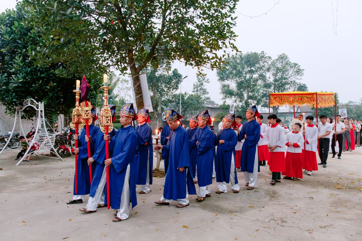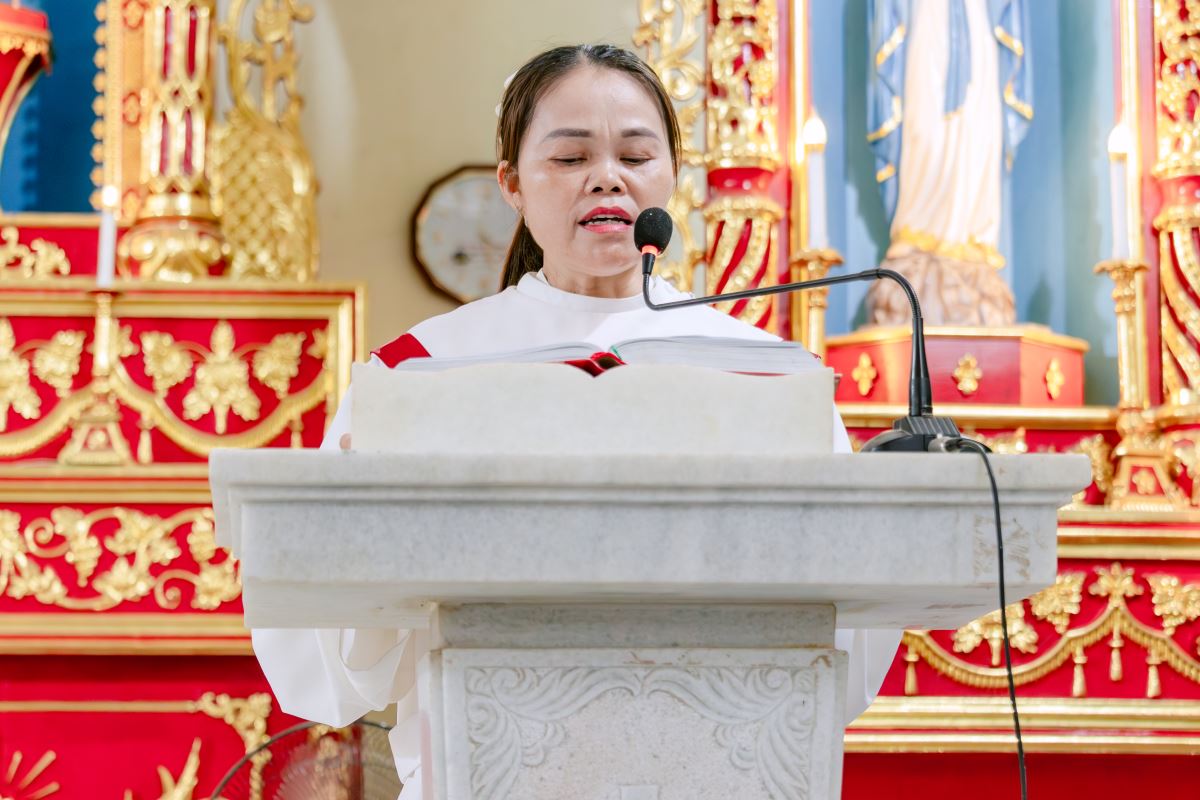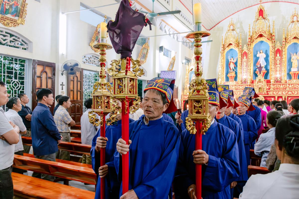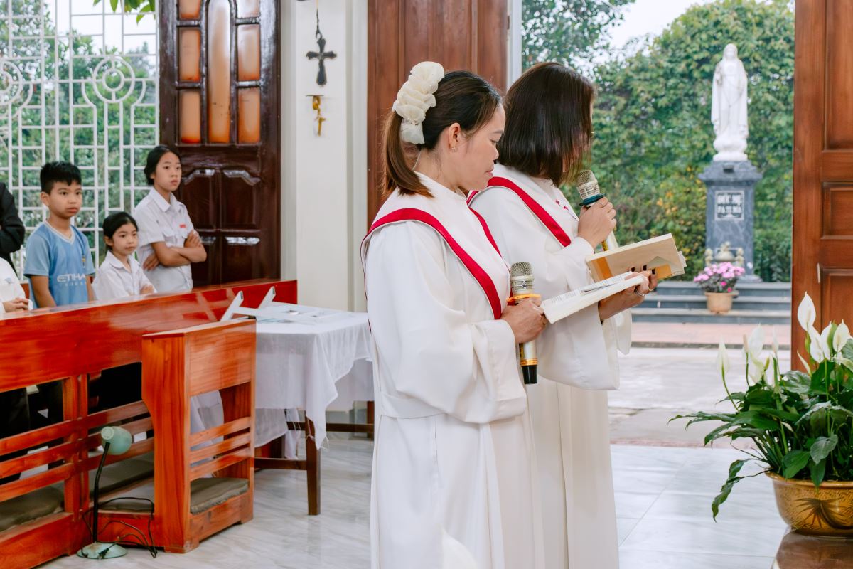 Thánh lễ do cha xứ Giuse Nguyễn Gia Huấn chủ tế, cùng với sự hiện diện hiệp thông của quý dì Hội dòng Mến Thánh Giá Hưng Hóa đang hỗ trợ mục vụ trong những ngày Tuần Thánh, và cộng đoàn dân Chúa đến từ các giáo họ trong giáo xứ.