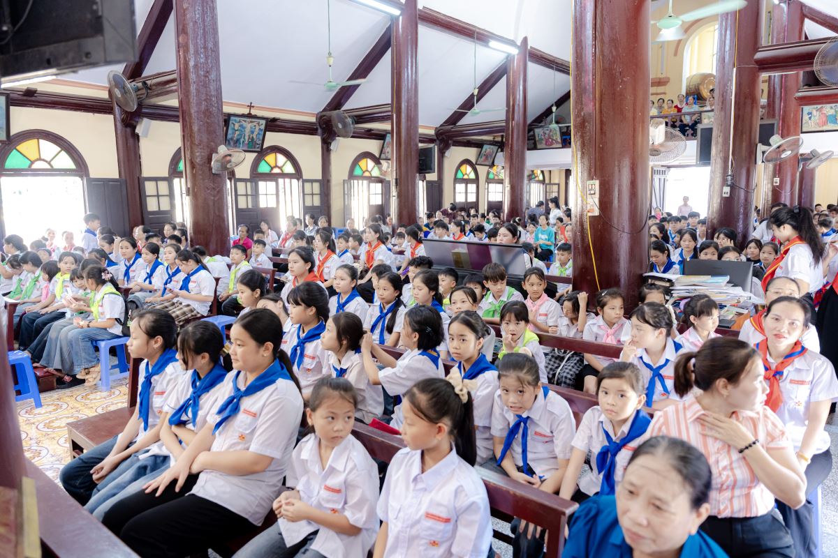 Trong niềm vui thánh thiện của Năm Thánh 2025, chiều Chúa nhật ngày 27/7/2025, đông đảo các em Thiếu nhi Thánh Thể đến từ hai giáo xứ Bãi Dòng và Hà Thạch đã quy tụ về Nhà thờ Giáo xứ Hà Thạch để hành hương, lãnh nhận ơn toàn xá và sống tinh thần hiệp hành trong đức tin. Ngay từ đầu giờ chiều, các đoàn xe chở thiếu nhi giáo xứ Bãi Dòng lần lượt tiến vào khuôn viên nhà thờ Hà Thạch. Dù thời tiết mùa hè nắng nóng gay gắt, nhưng các em thiếu nhi Thánh Thể giáo xứ Bãi Dòng và Hà Thạch vẫn háo hức lên đường, mừng rỡ hân hoan như trẩy hội về đền thánh.