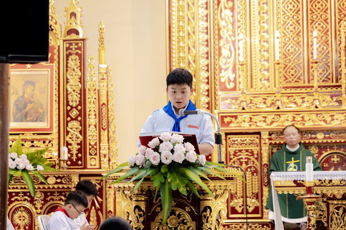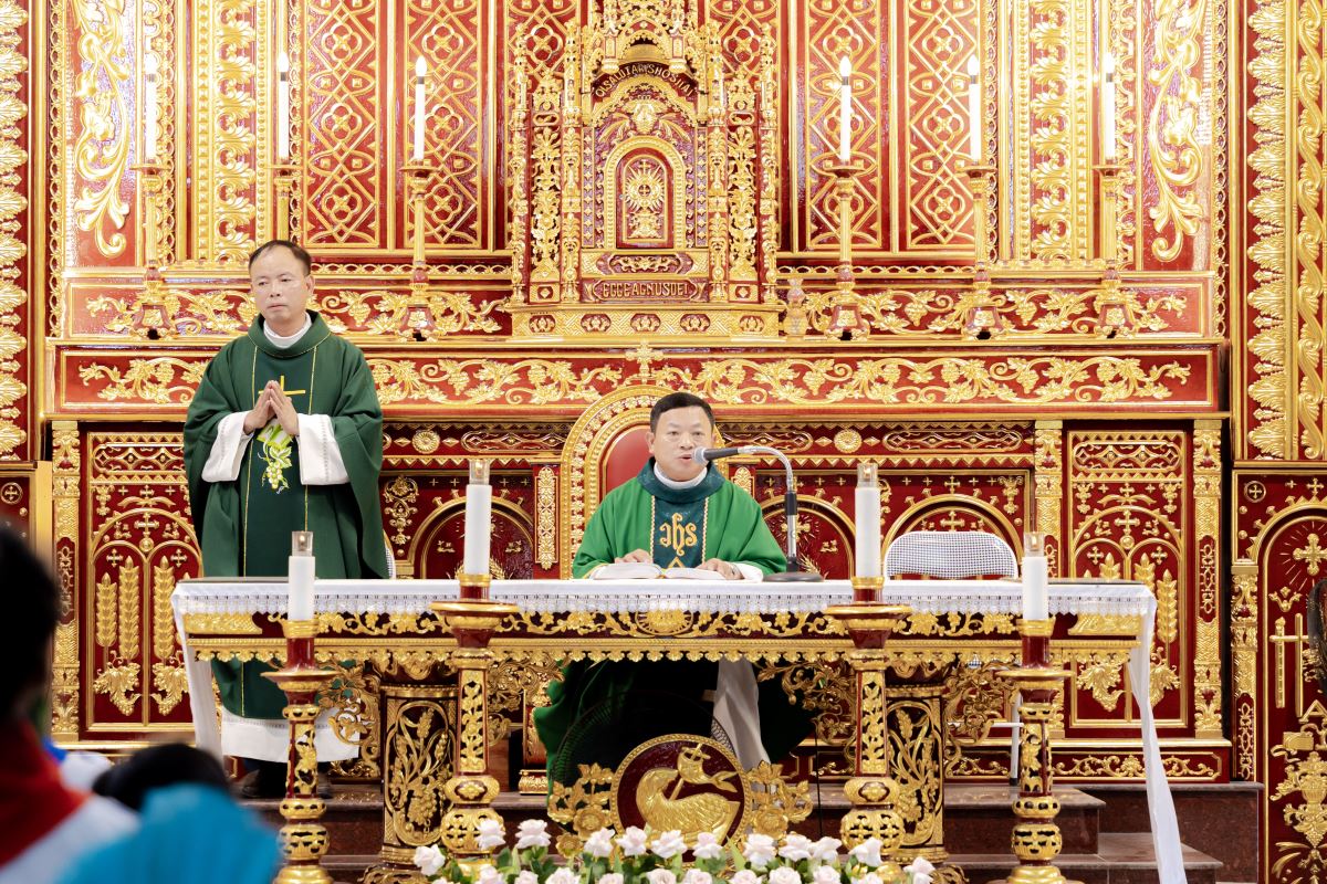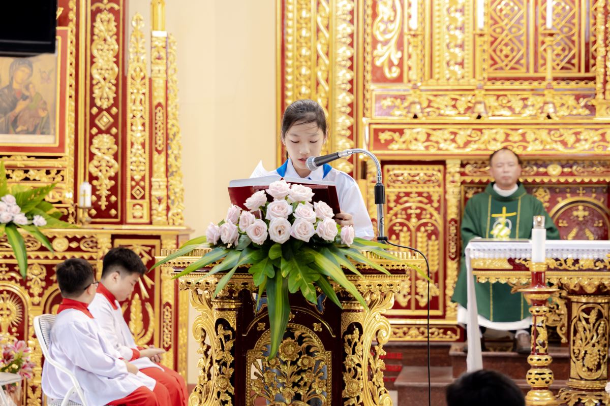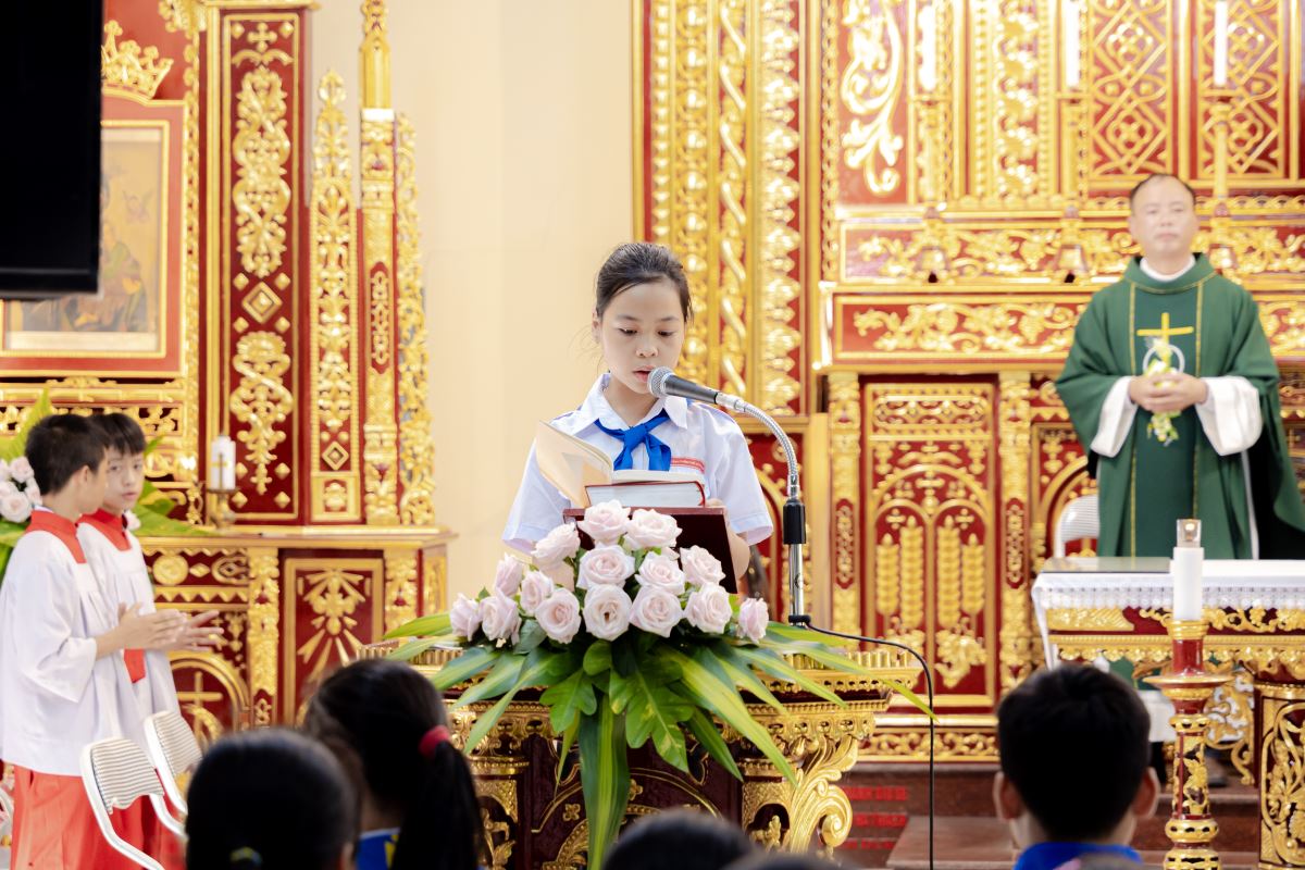 Mở đầu Thánh lễ, Cha chủ tế mời gọi các em và cộng đoàn hướng lòng về đền thánh Chúa, nơi chúng ta đến để gặp gỡ Ngài thân tình, để được đón nhận ơn tha thứ và bình an trong Chúa.