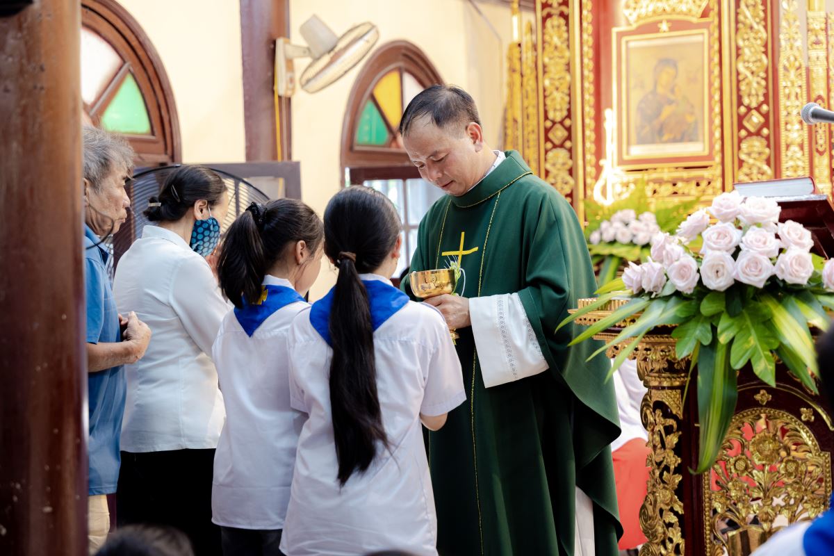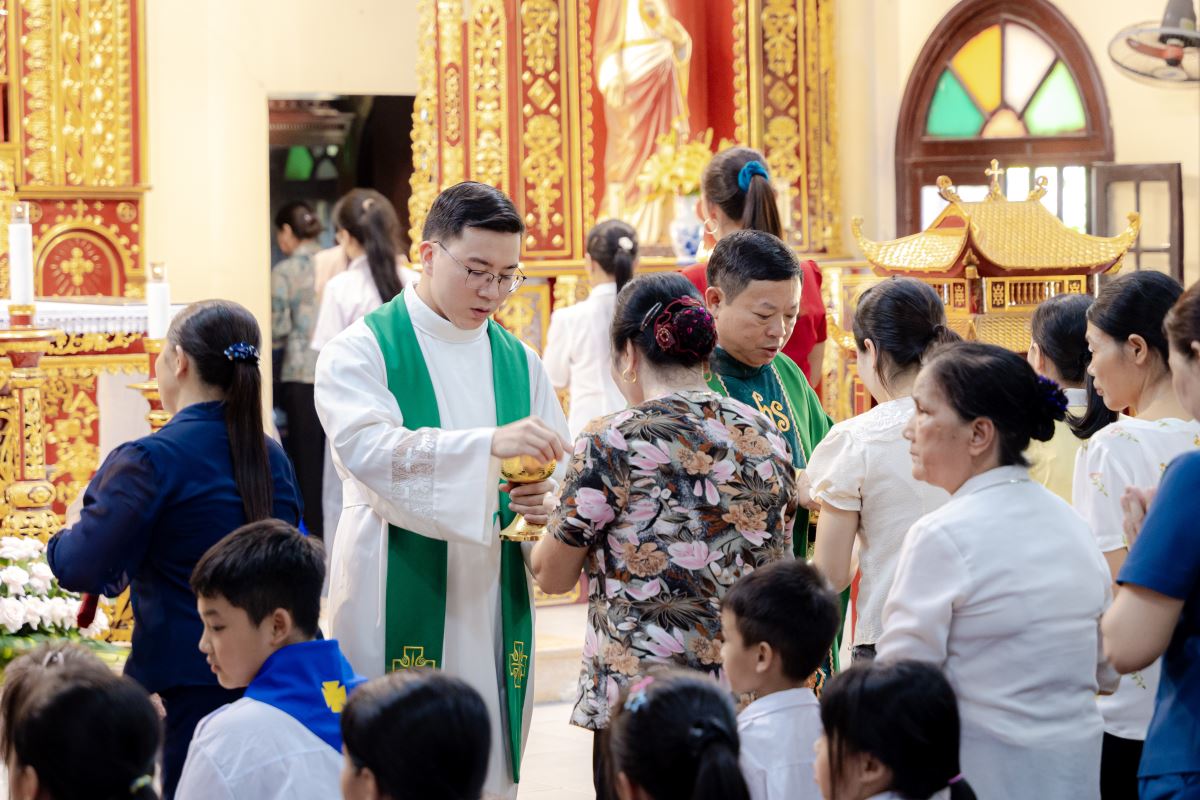 WGPHH – “Xin Ngài thương lắng nghe, nhận lời con Chúa nhé! Lễ con dâng tuy đơn sơ nhỏ bé, nhưng lòng con rất chân thành Chúa ơi!” Đây là những lời ca tiến lễ đơn sơ, trong trẻo của các em thiếu nhi, vang lên trong ngôi thánh đường cổ kính Hà Thạch chiều Chúa nhật 27/7/2025.