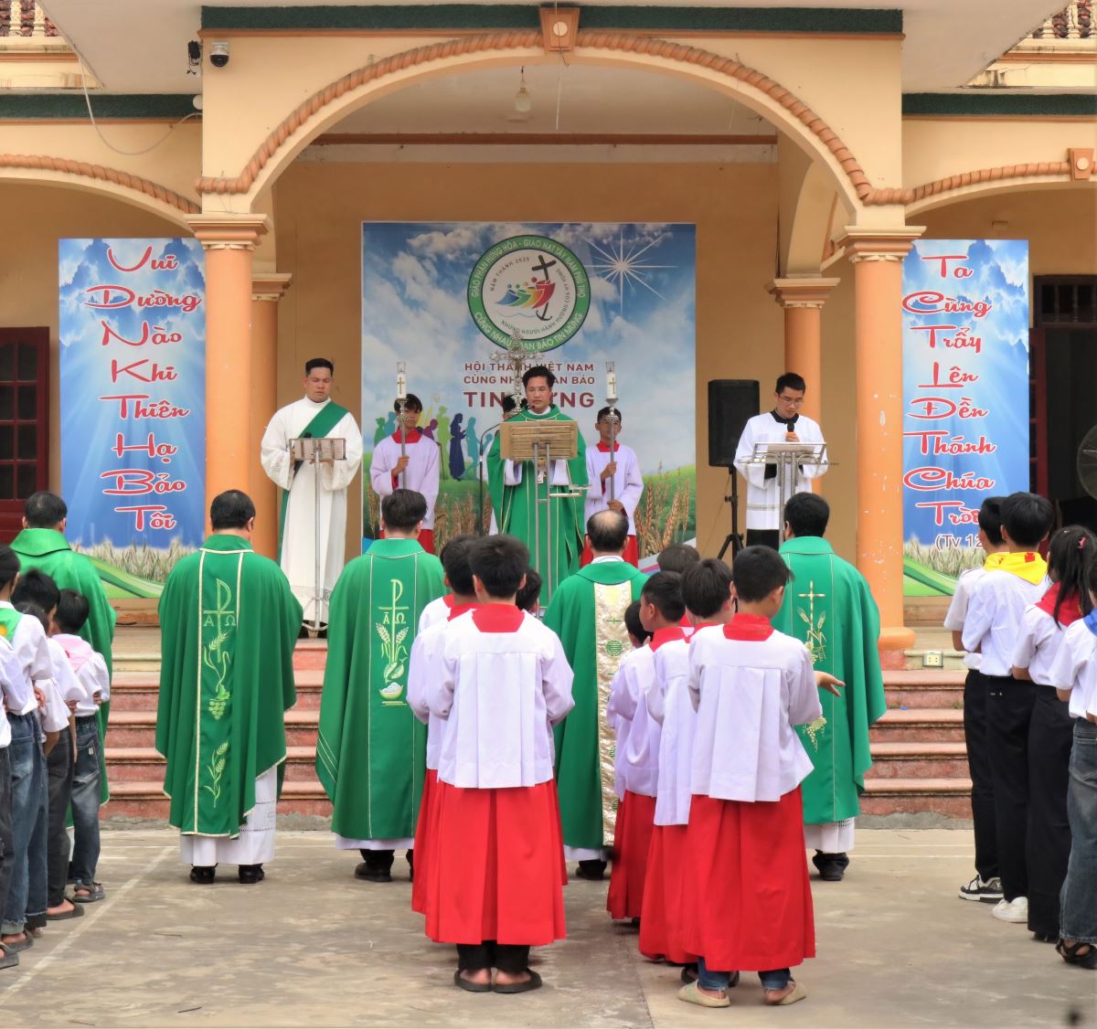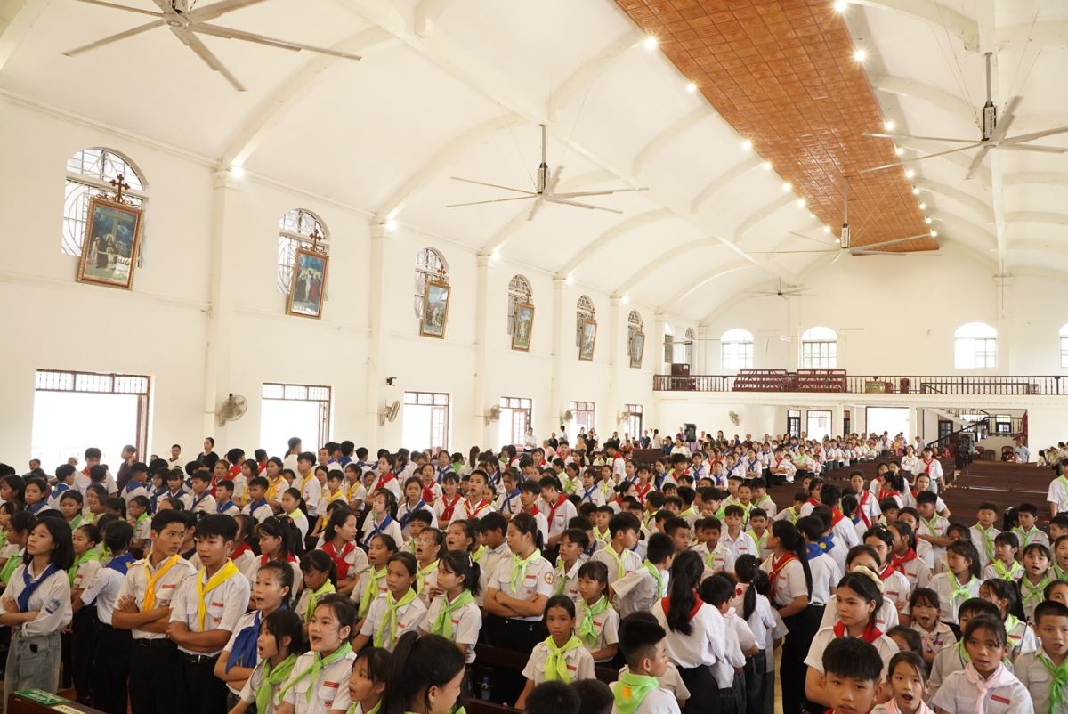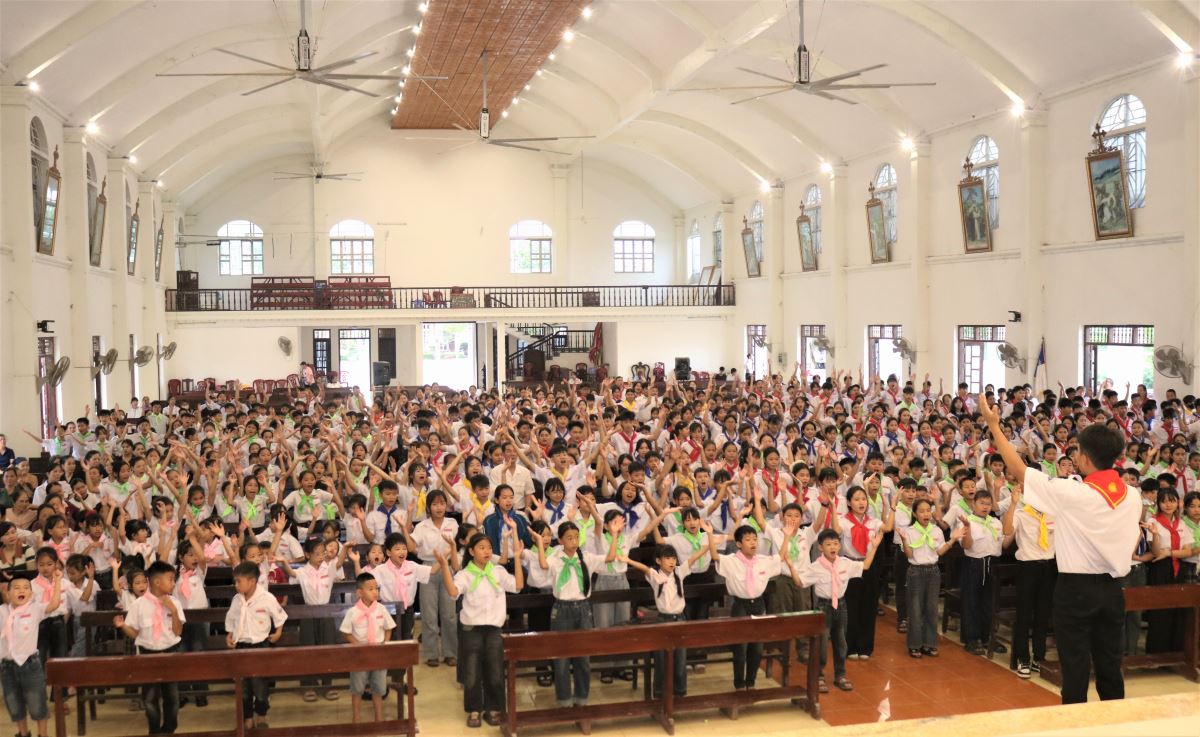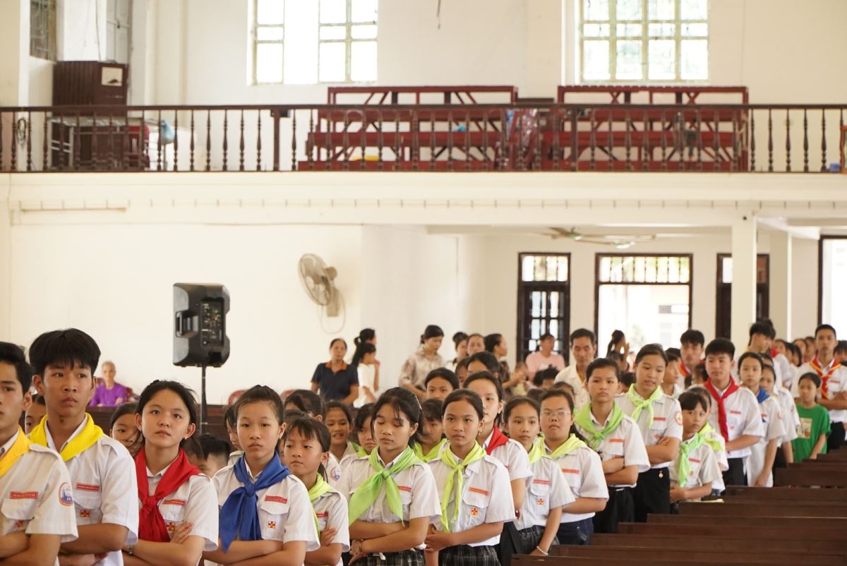 WGPHH – Trong tâm tình sống Năm Thánh 2025 và theo chương trình mục vụ hè dành cho Thiếu nhi Thánh Thể, sáng thứ Năm ngày 19/6/2025, các em thiếu nhi Thánh Thể thuộc các giáo xứ: Thủy Trạm, Trại Sơn, Lương Sơn và các chuẩn xứ: Thủy Sơn, Sơn Thủy, Phú Sơn đã quy tụ tại nhà thờ Giáo xứ Hoàng Xá để tham dự ngày hành hương lãnh nhận ơn toàn xá.