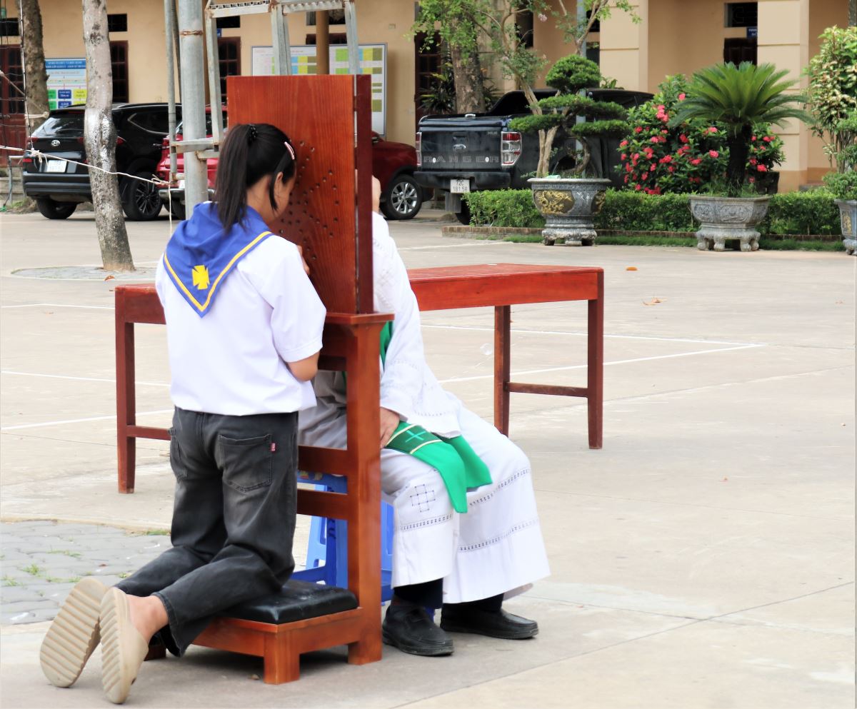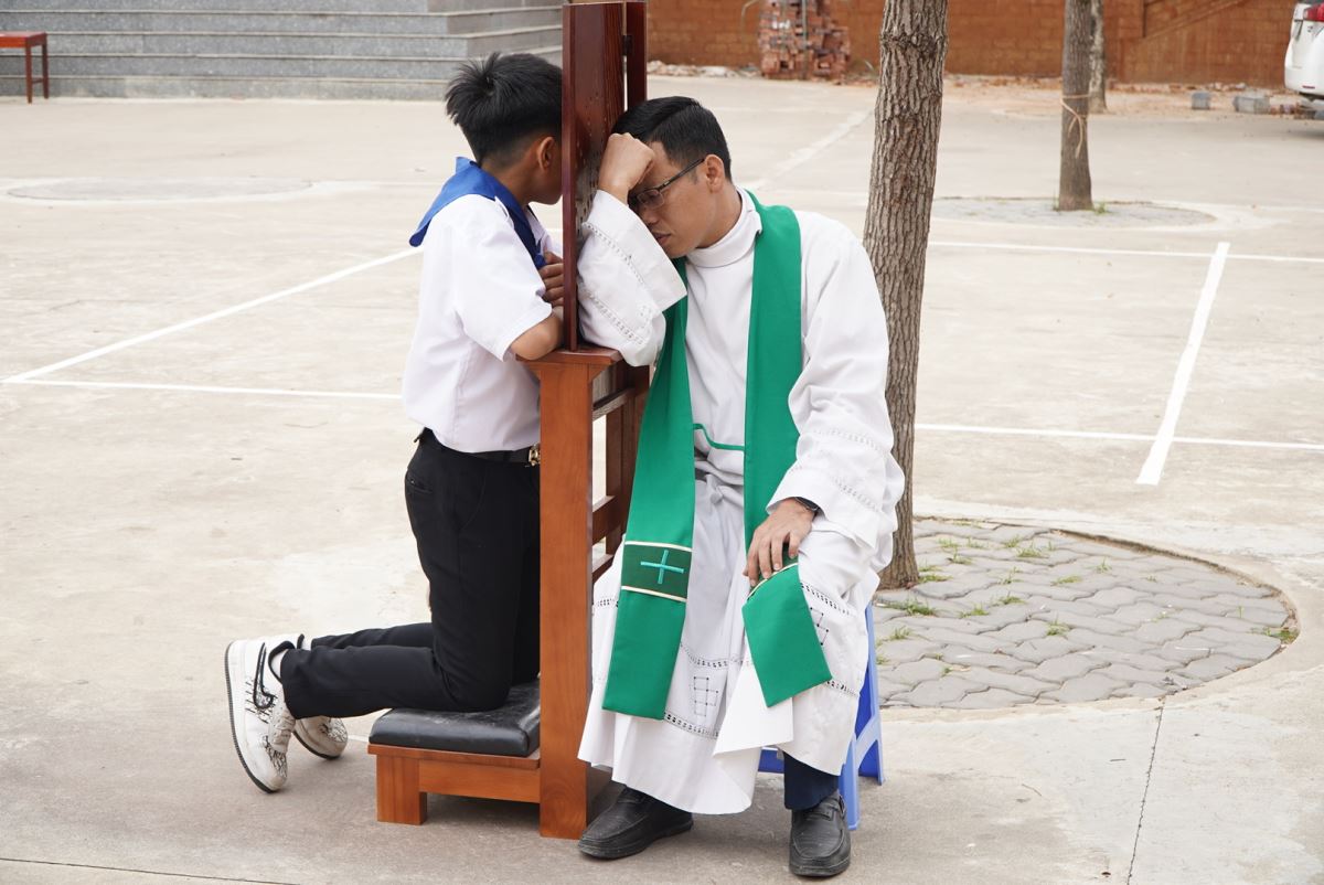 Sau giờ học hỏi, các em bước vào giờ hồi tâm, xét mình và lãnh nhận Bí tích Hoà Giải, chuẩn bị tâm hồn cách sốt sắng để gặp gỡ Chúa Giêsu Thánh Thể trong giờ chầu linh thiêng lúc 08g45.