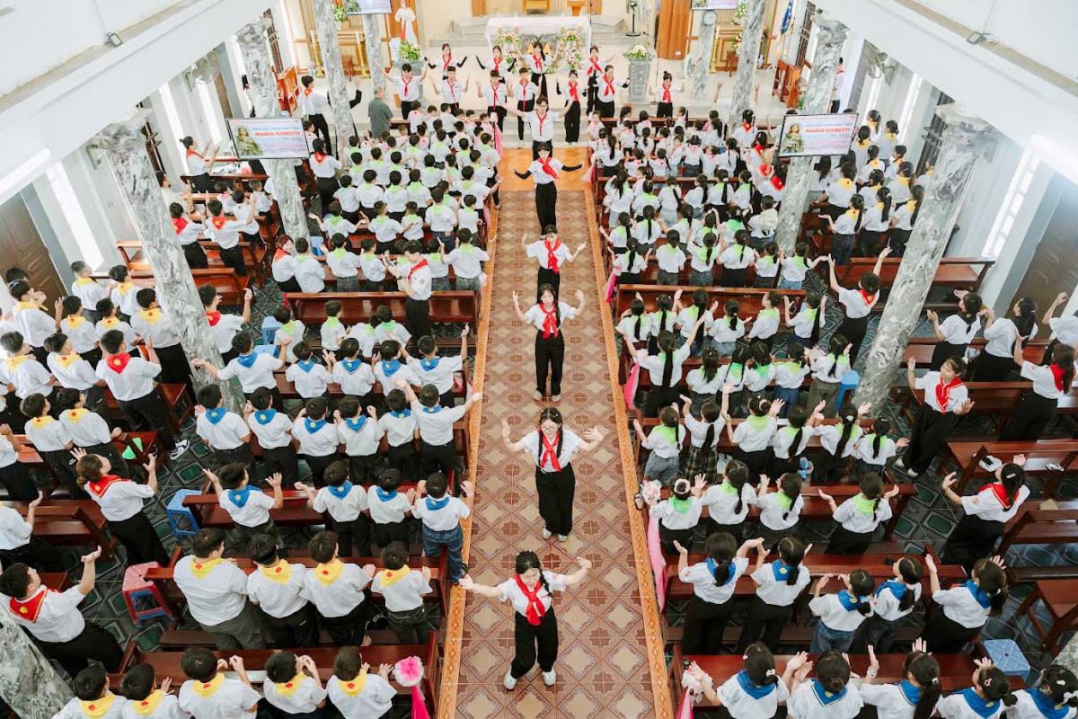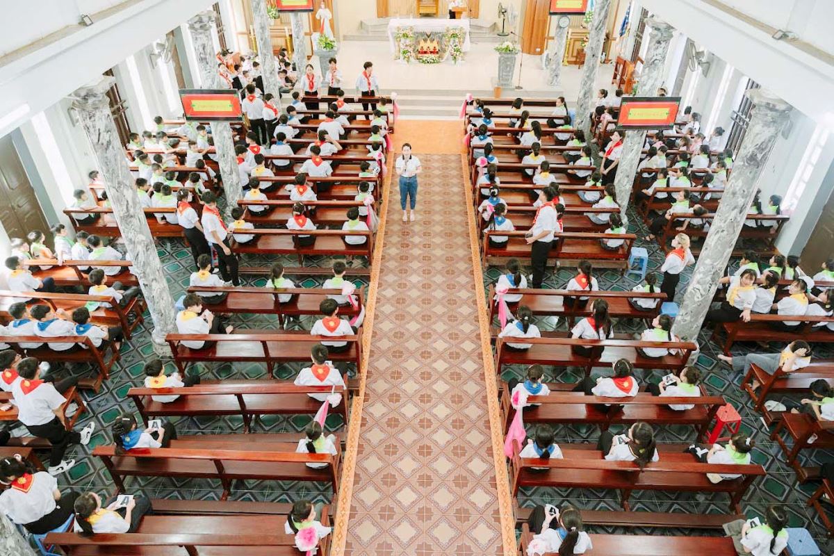 Vào lúc 14g00, các em Thiếu Nhi Thánh Thể đã có mặt đông đủ và nhanh chóng ổn định sinh hoạt tại nhà thờ.