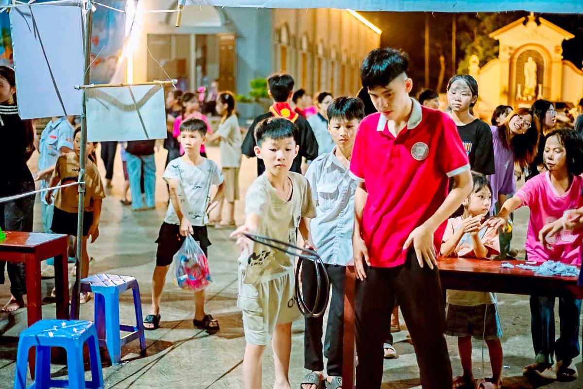 Tiếp nối chương trình là phần hội chợ được tổ chức tại khuôn viên giáo xứ với nhiều trò chơi và phần quà hấp dẫn. Các gian hàng được chuẩn bị công phu bởi quý anh chị Huynh – Dự trưởng và thầy cô Giáo lý viên, tạo nên một không gian sôi động và đầy sắc màu tuổi thơ.